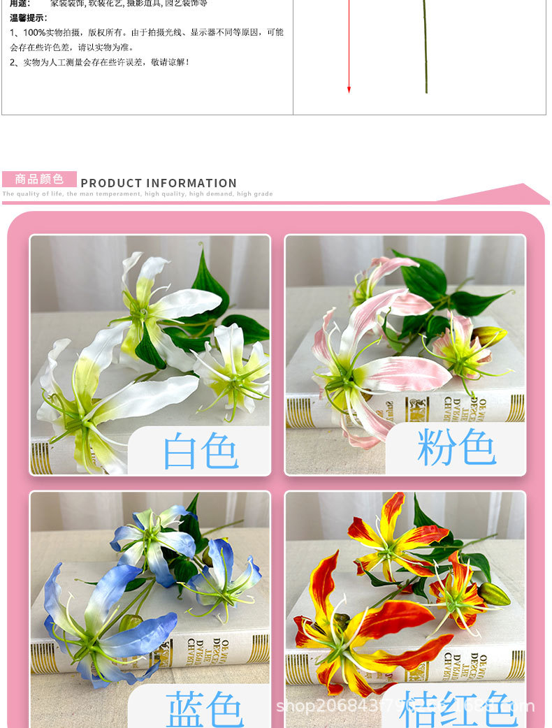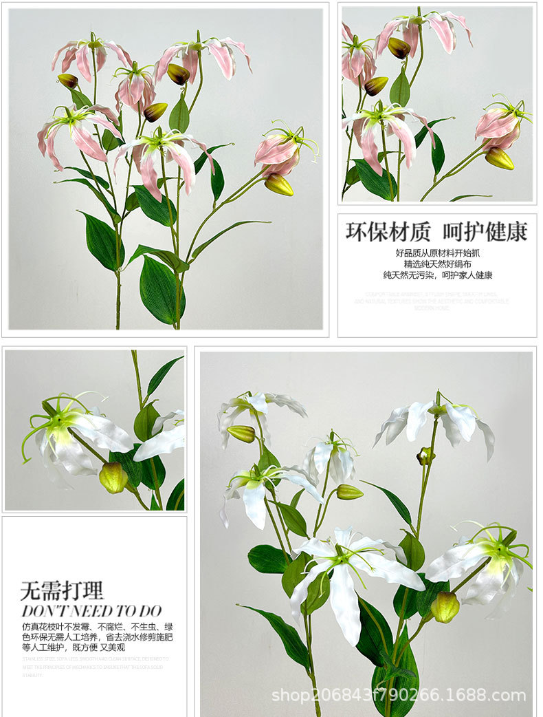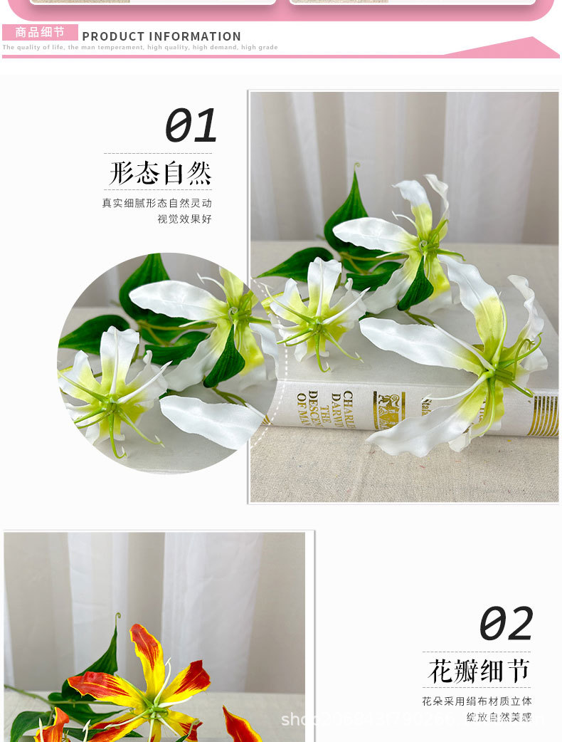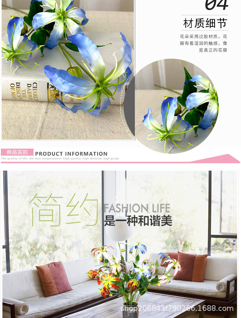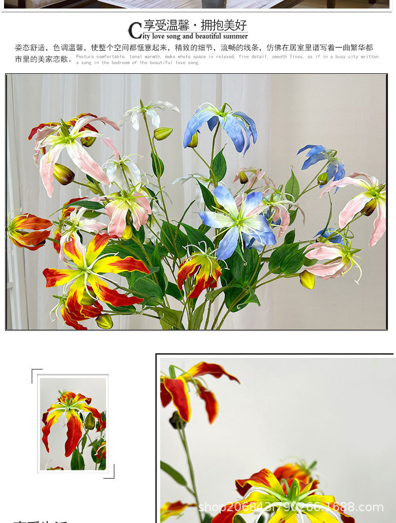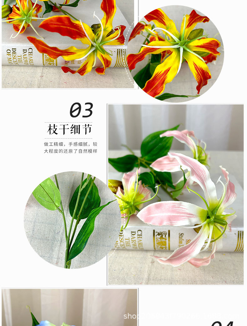 仿真花3头火焰百合 假花绢花婚礼堂地排路引花海瀑布嘉兰百合拍摄