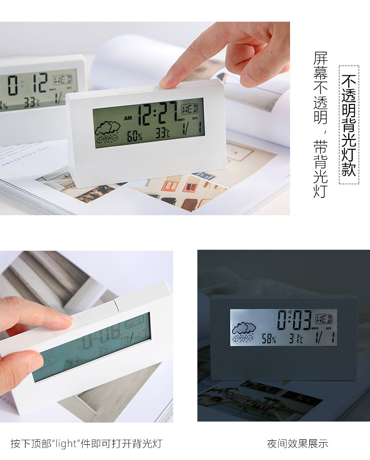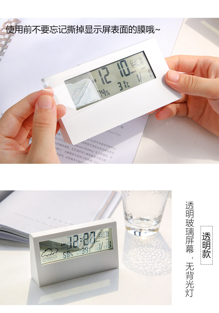 跨境LCD时钟温湿度计电子闹钟 ins透明款天气显示儿童学生小闹钟