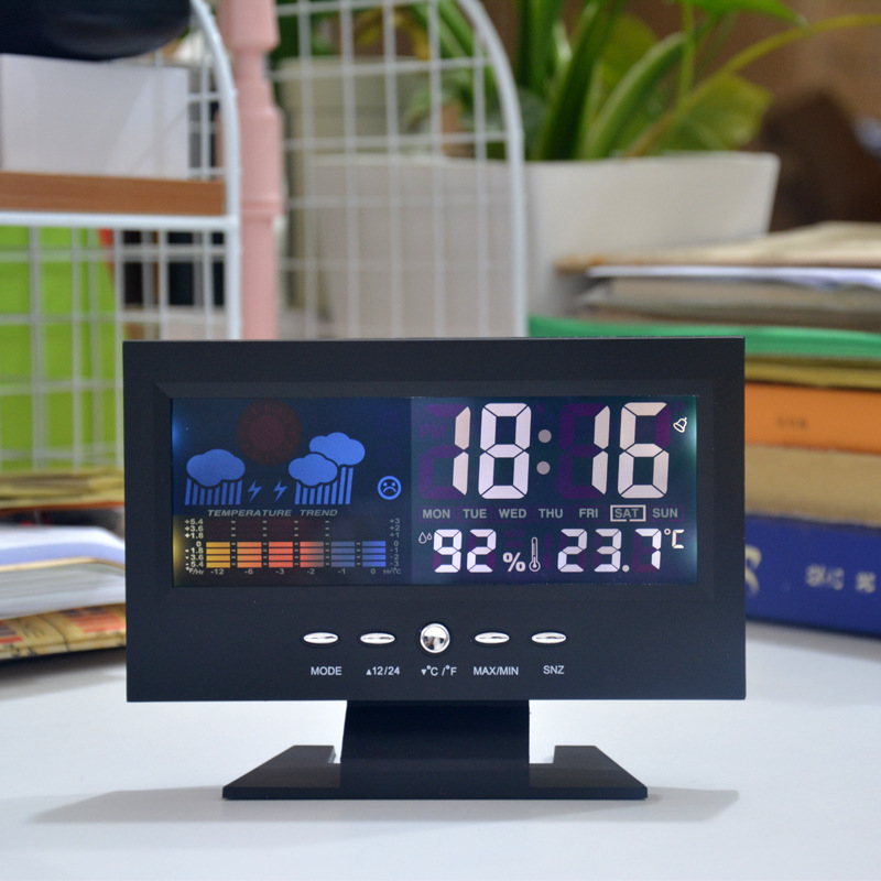 8082T气象电子闹钟 创意LED彩屏天气预报钟 温湿度万年历背光闹钟