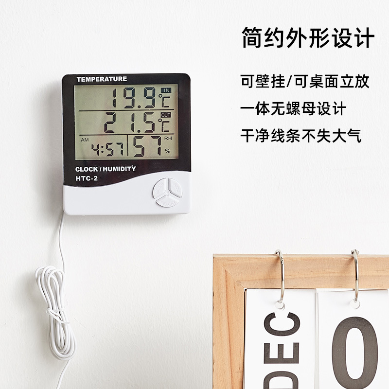 跨境外贸大屏幕家用温湿度计 室内外电子温度计闹钟 HTC-2温度计