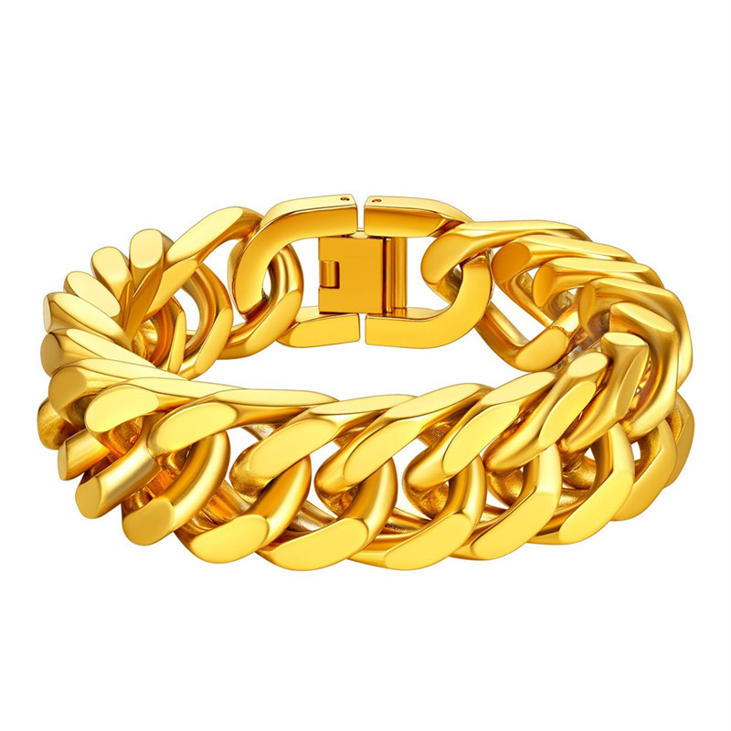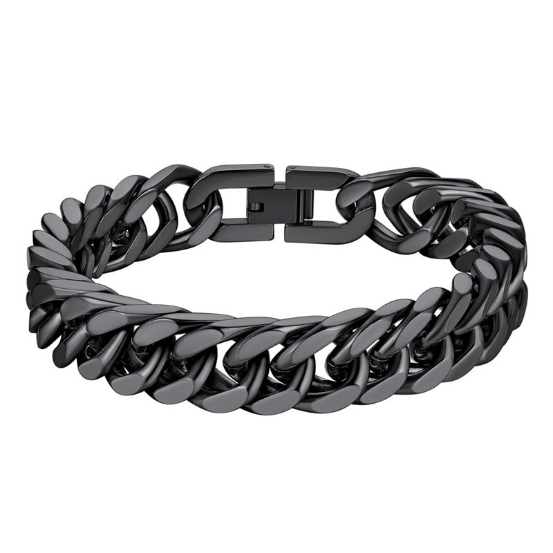 跨境热销不锈钢加密四面磨双织手链欧美嘻哈潮流百搭简约古巴手链