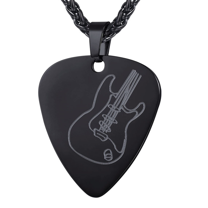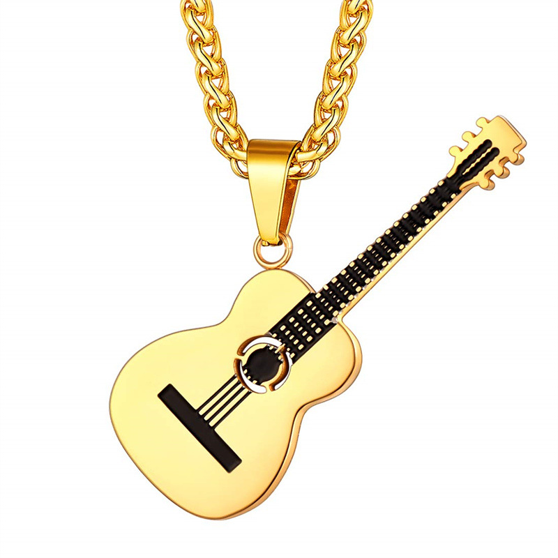 跨境热销欧美新款音乐吉他吊坠情人礼物时尚情侣饰品不锈钢项链