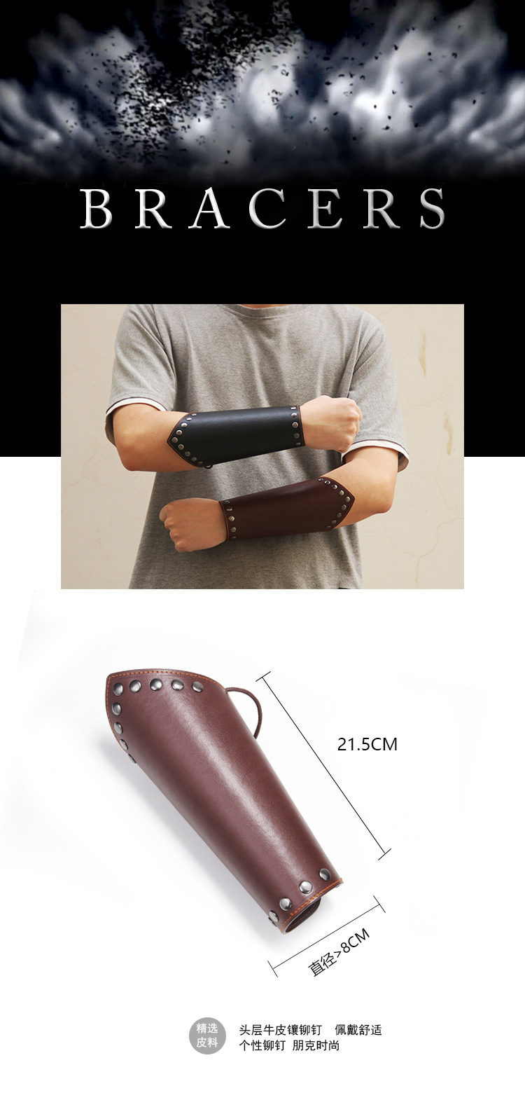 款朋克手链 男 腊绳编织护腕简约宽皮手链个性骑行护腕