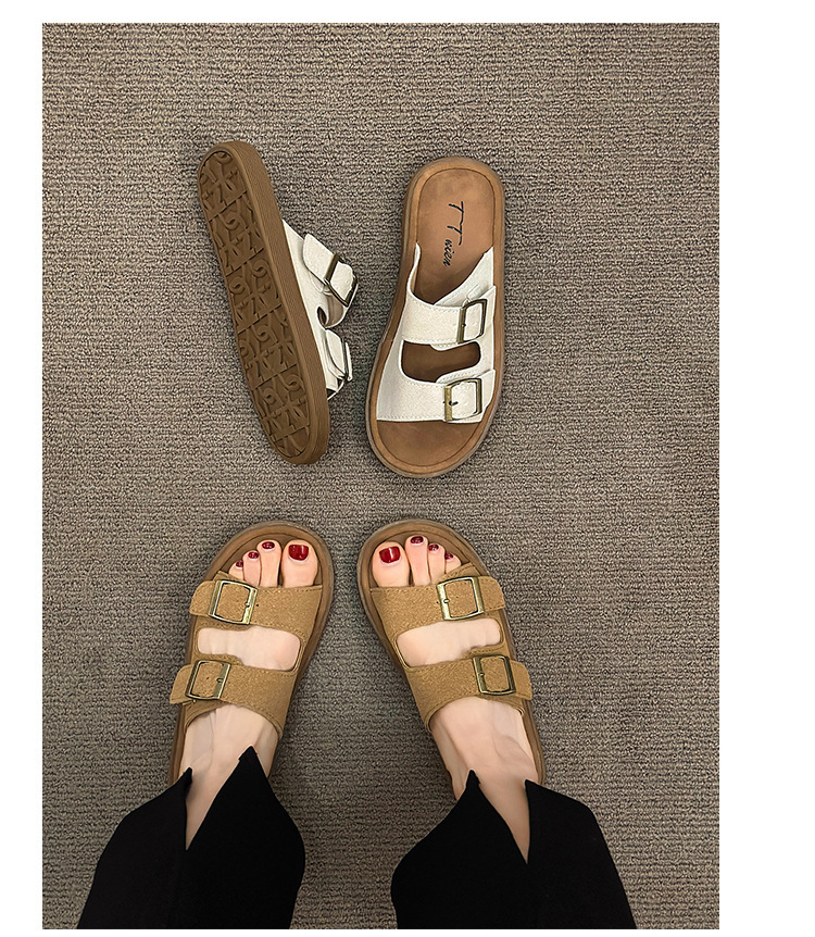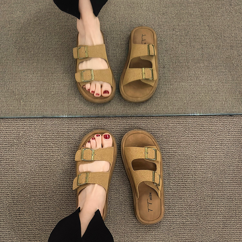 厚底休闲凉拖鞋女2024夏季新款百搭外穿一字带露趾海边度假沙滩鞋