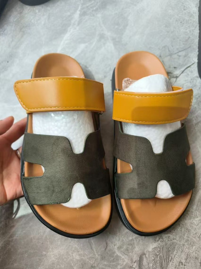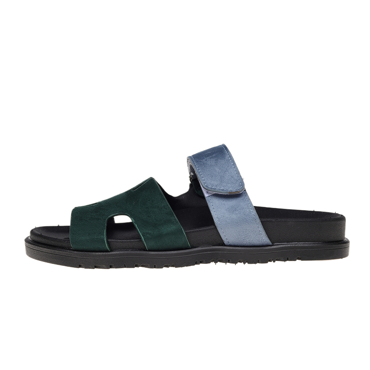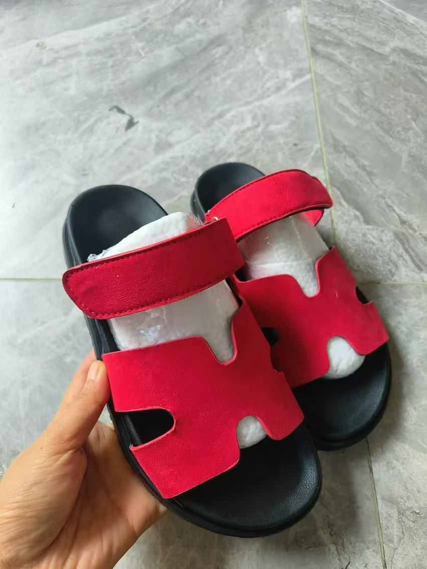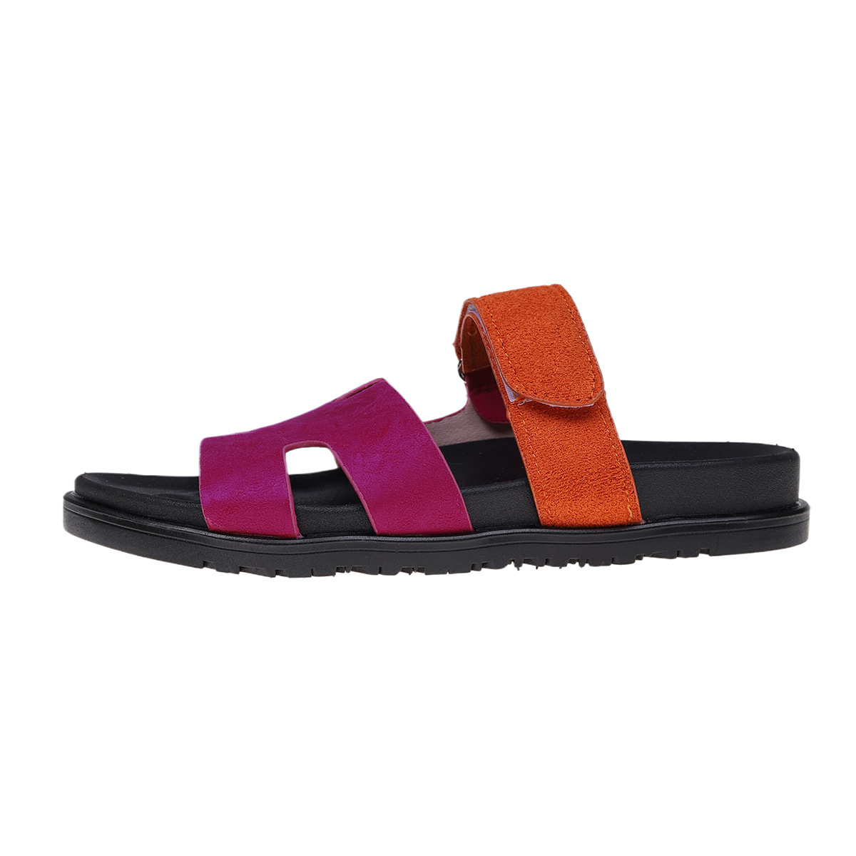 大码拖鞋女2025新款一字拼色休闲百搭厚底魔术贴时尚沙滩凉拖鞋潮