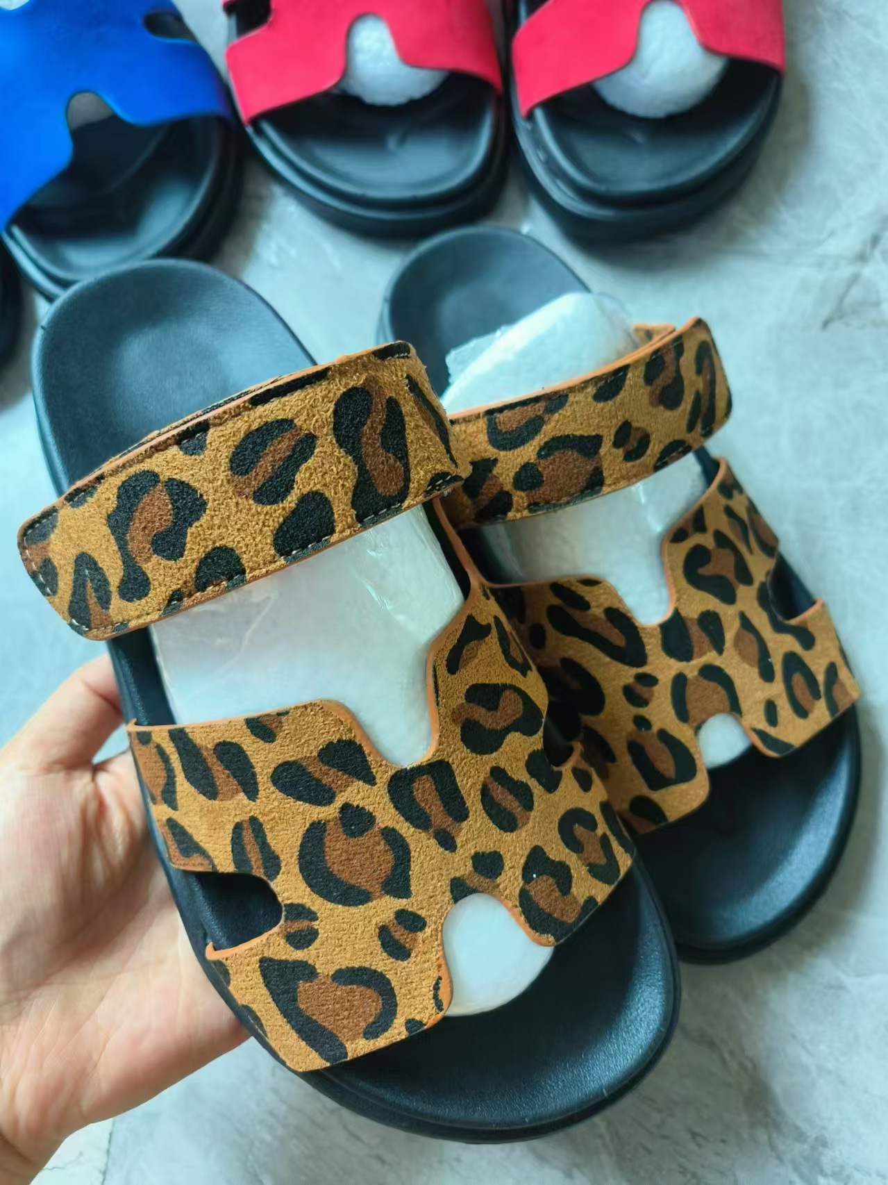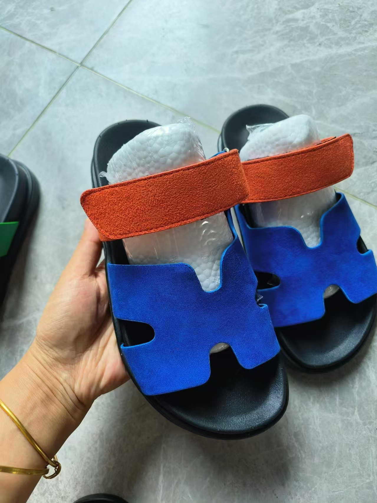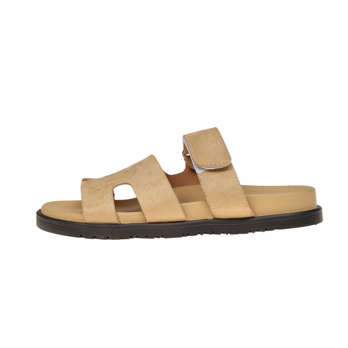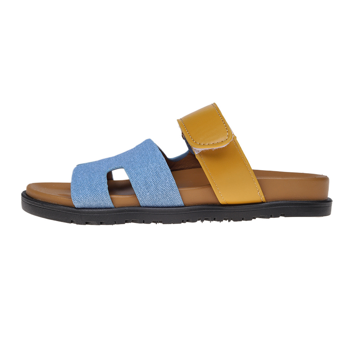 大码拖鞋女2025新款一字拼色休闲百搭厚底魔术贴时尚沙滩凉拖鞋潮