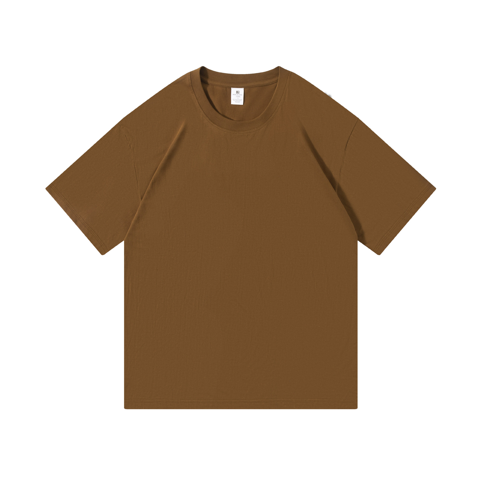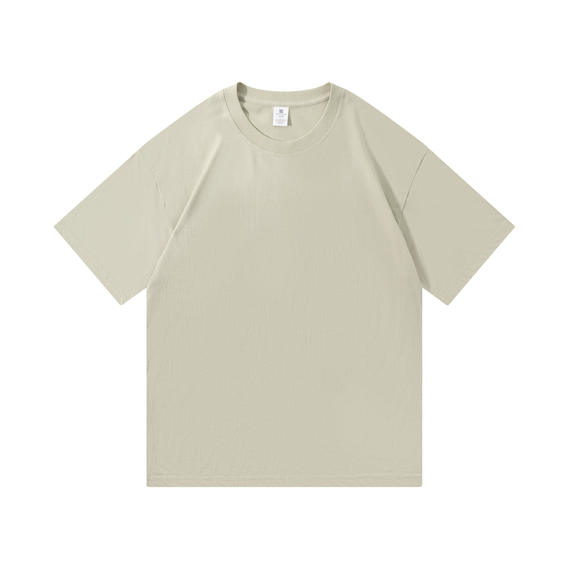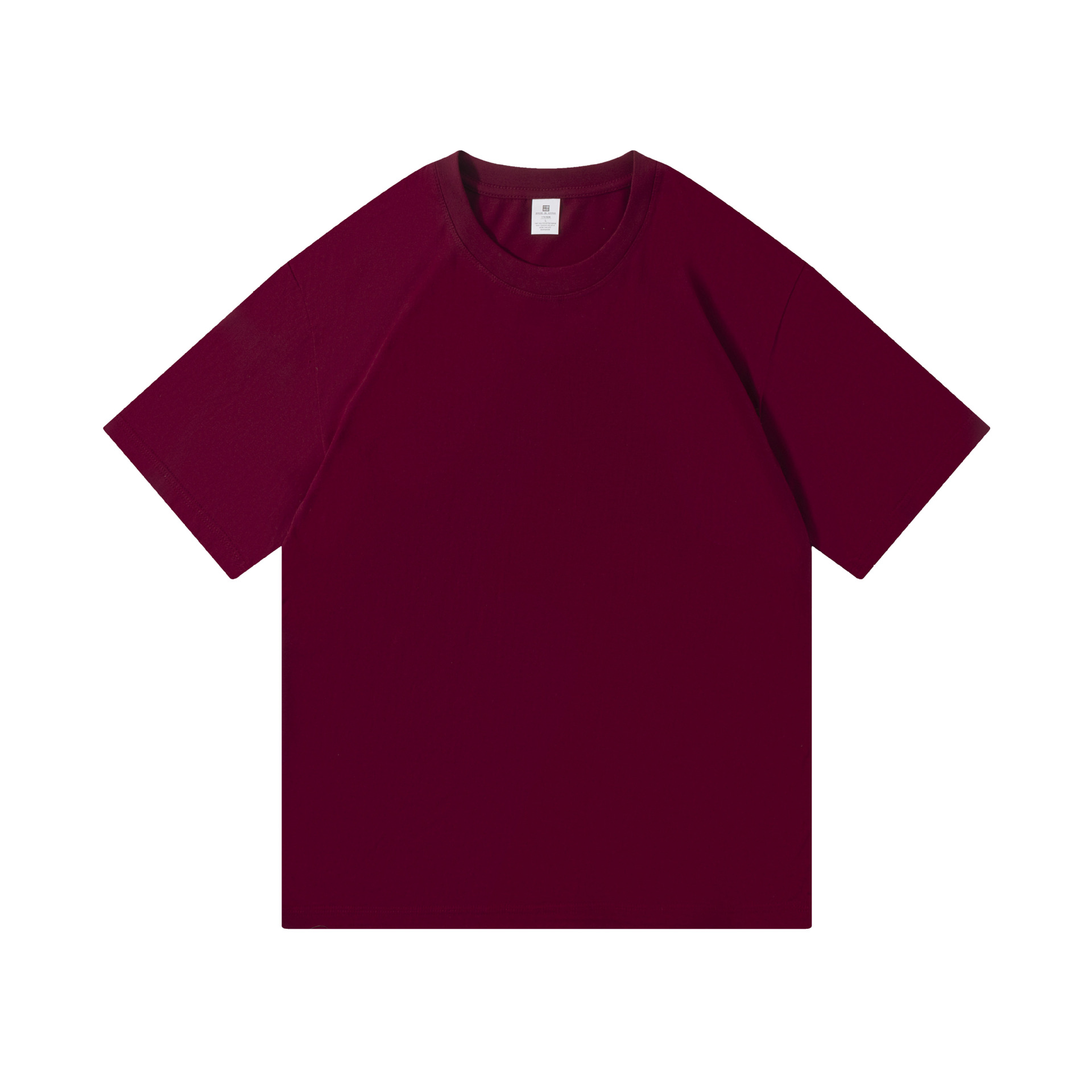 220克精梳棉短袖批发夏季重磅纯棉T恤男宽松圆领落肩纯色打底衫女