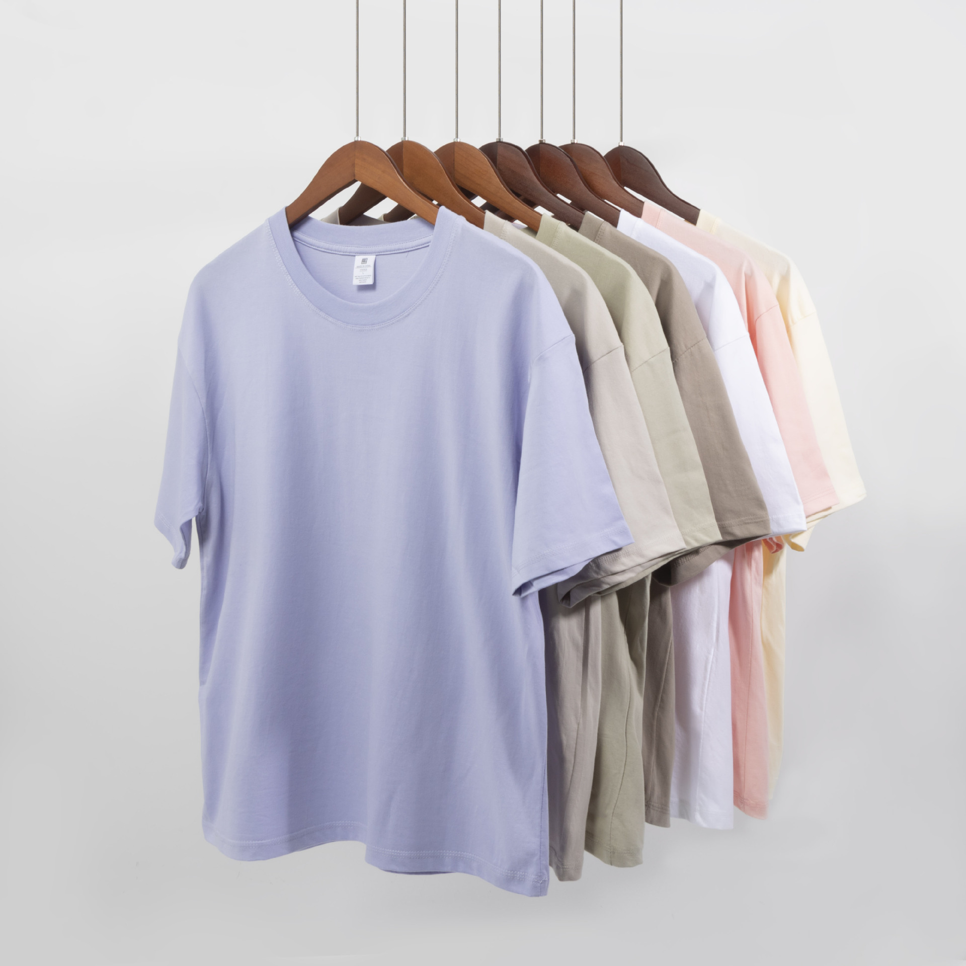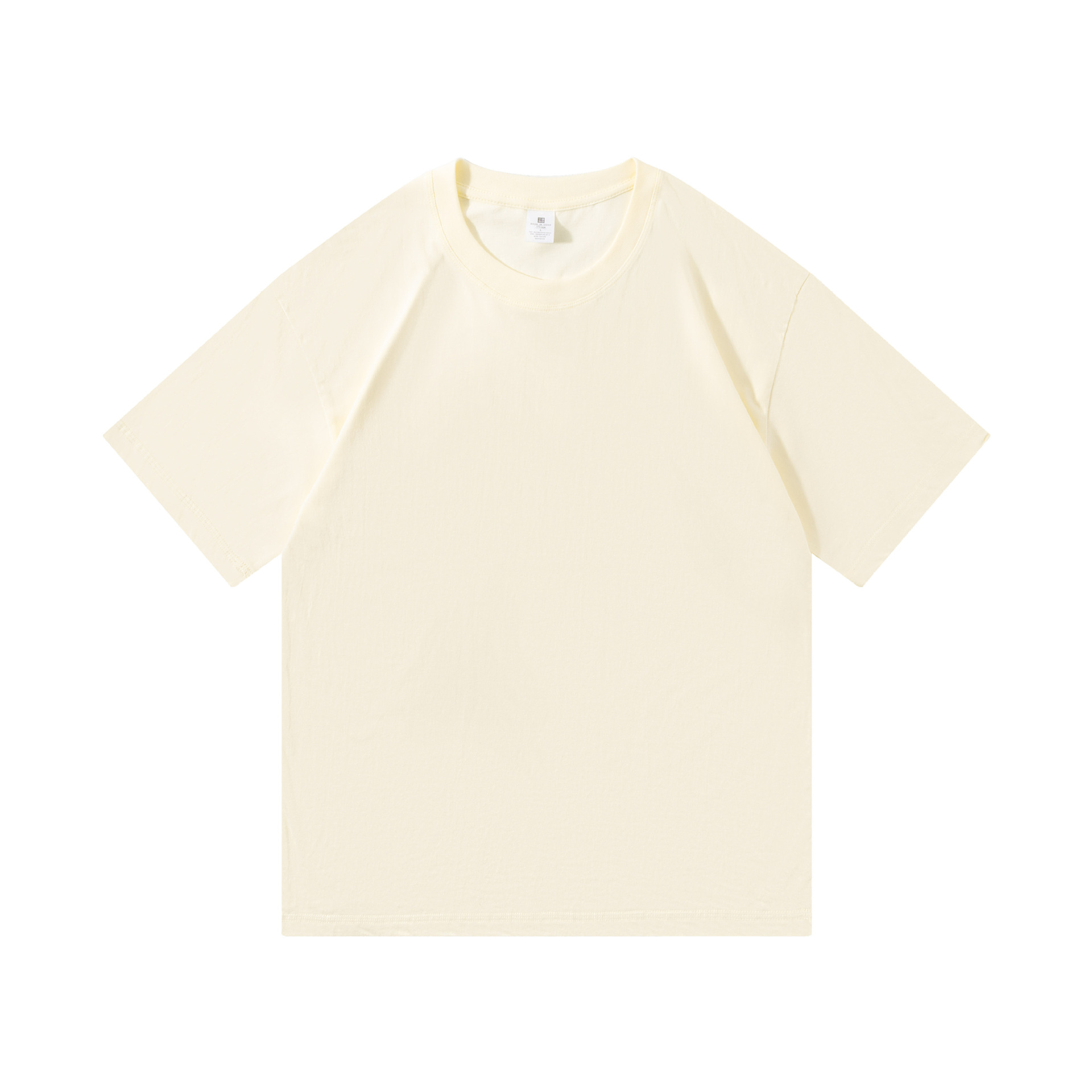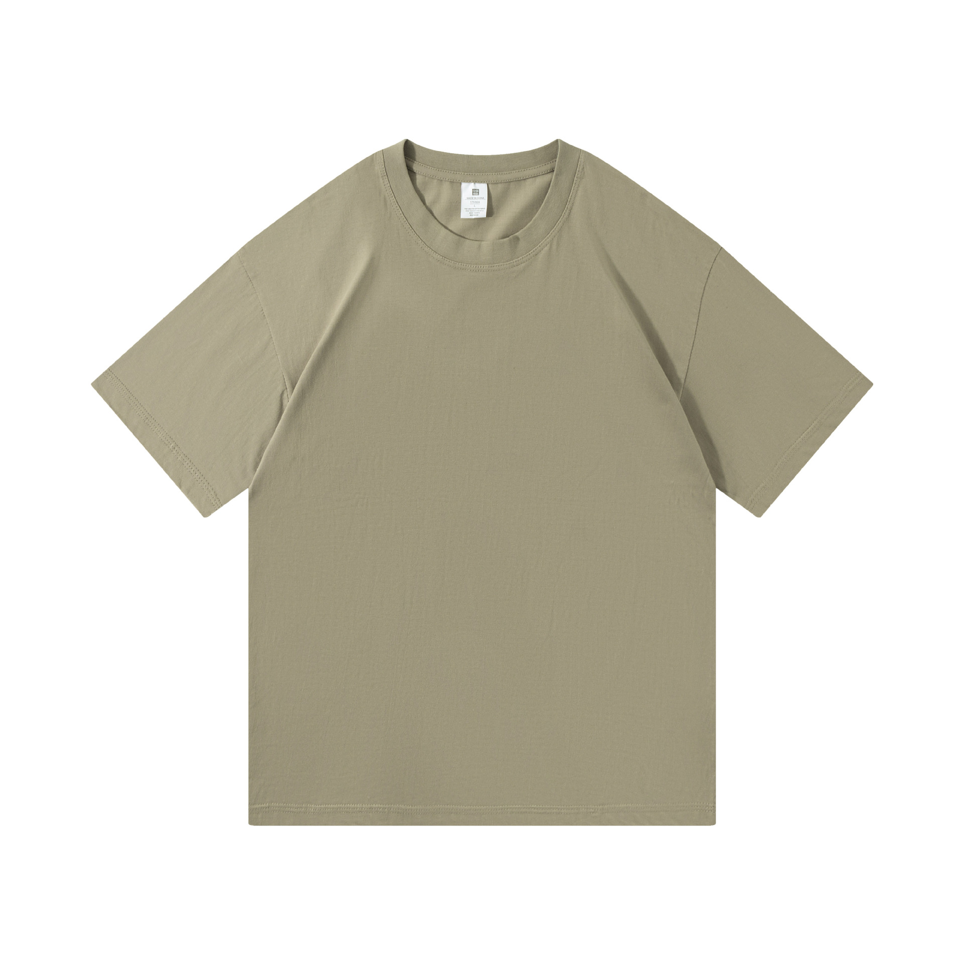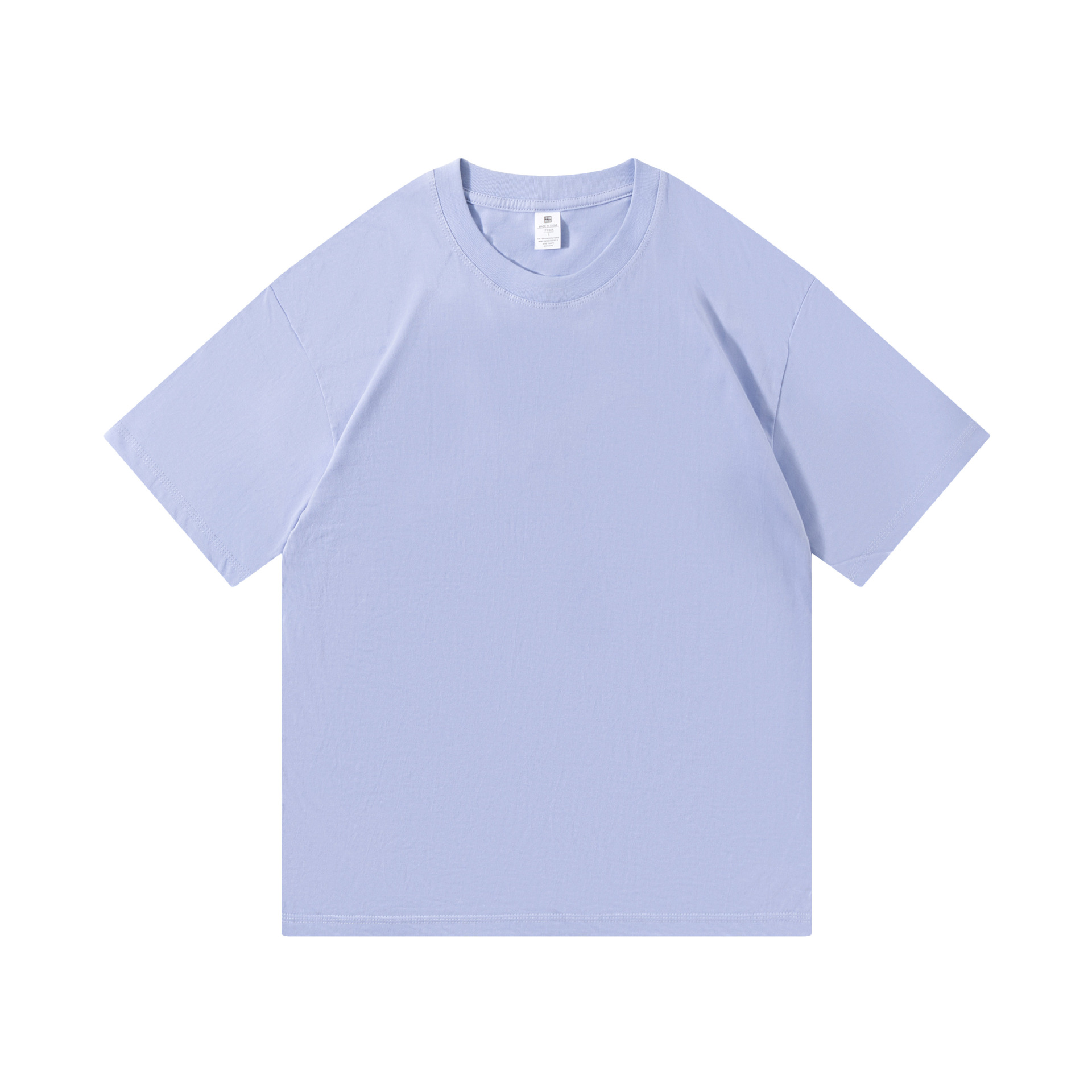 220克精梳棉短袖批发夏季重磅纯棉T恤男宽松圆领落肩纯色打底衫女