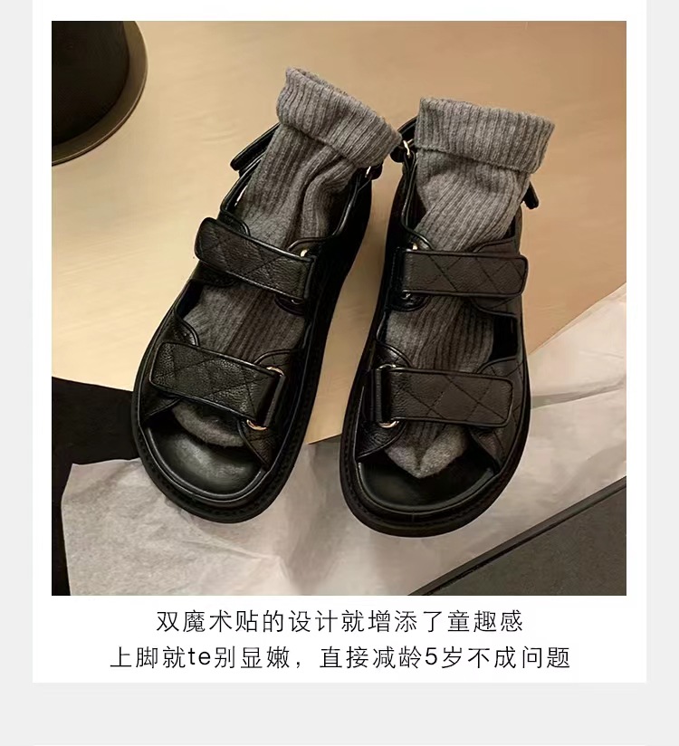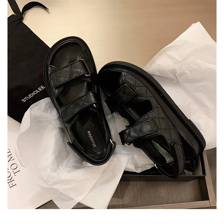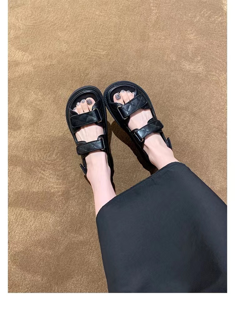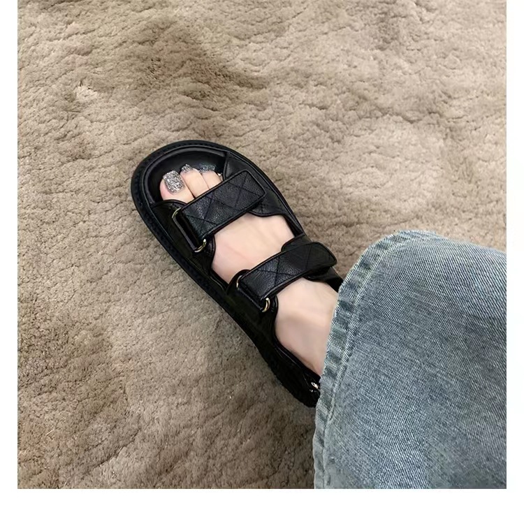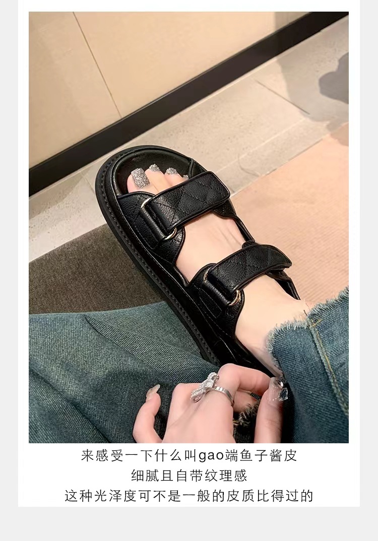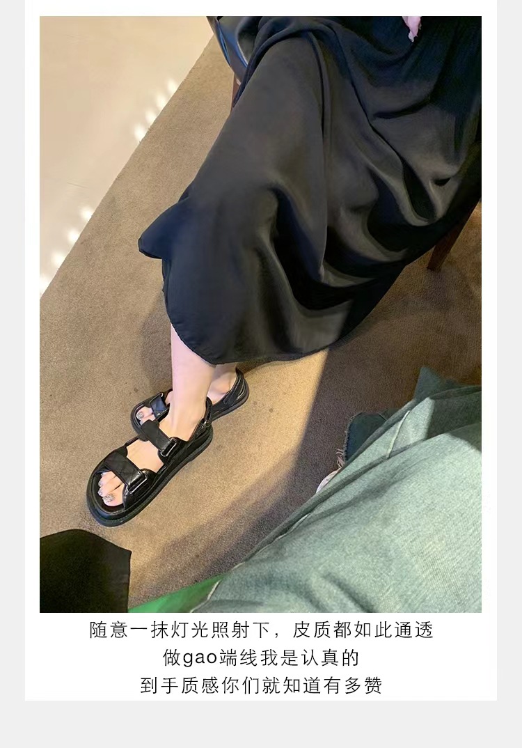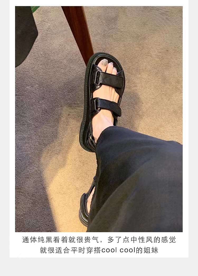 葡萄妈studiolee 百搭一字带魔术贴厚平底露趾沙滩运动凉鞋女夏季