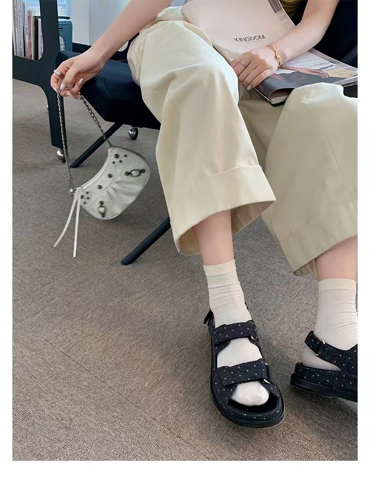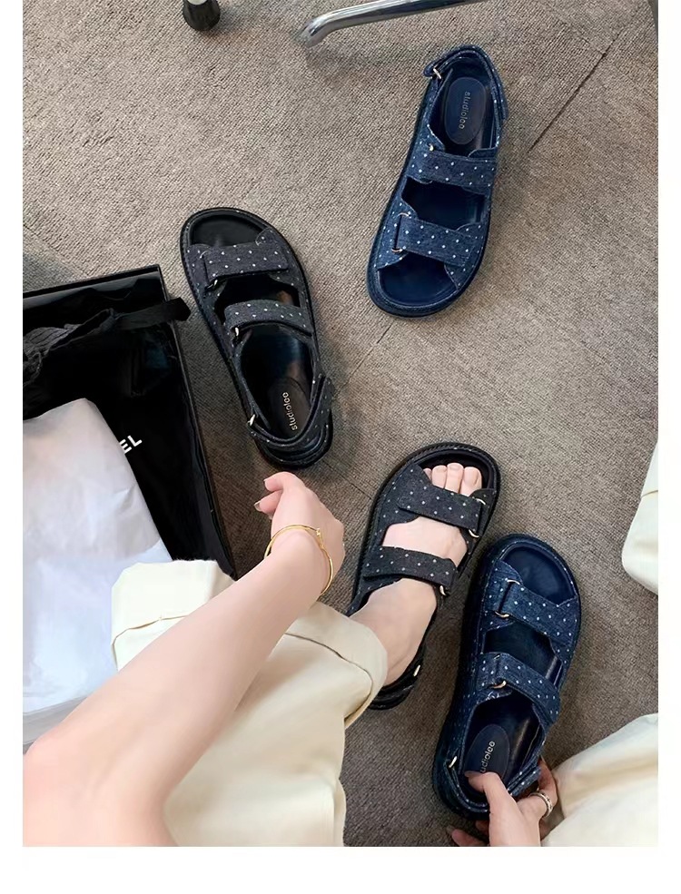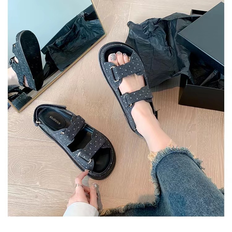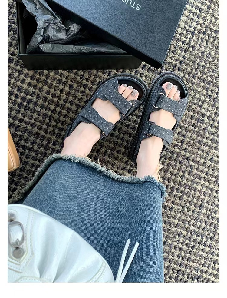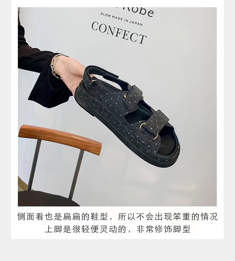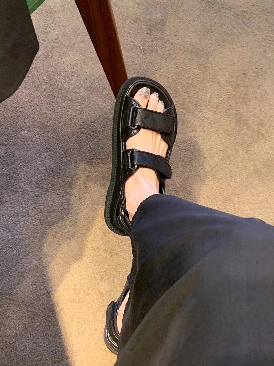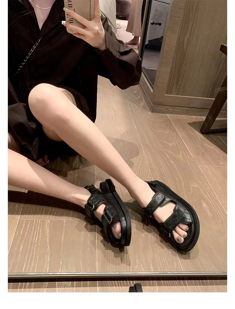 葡萄妈studiolee 百搭一字带魔术贴厚平底露趾沙滩运动凉鞋女夏季