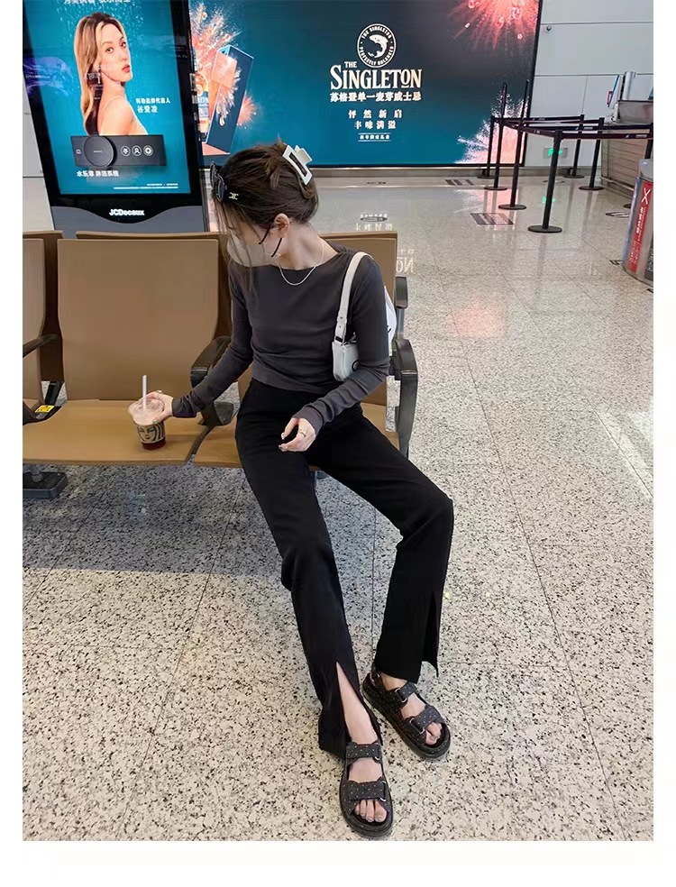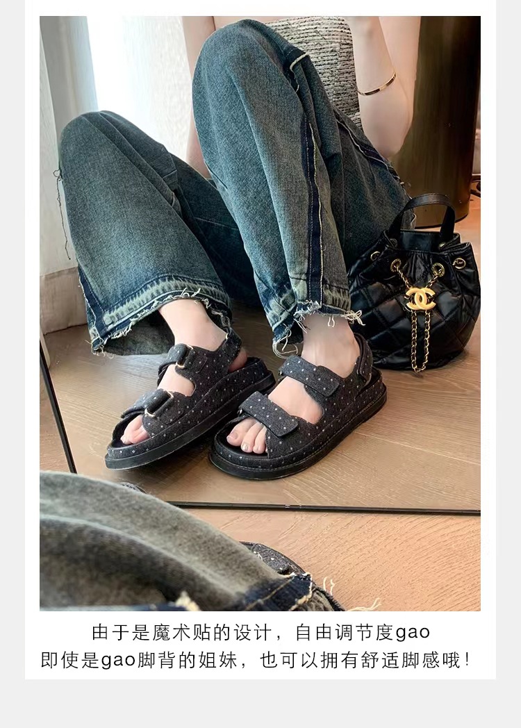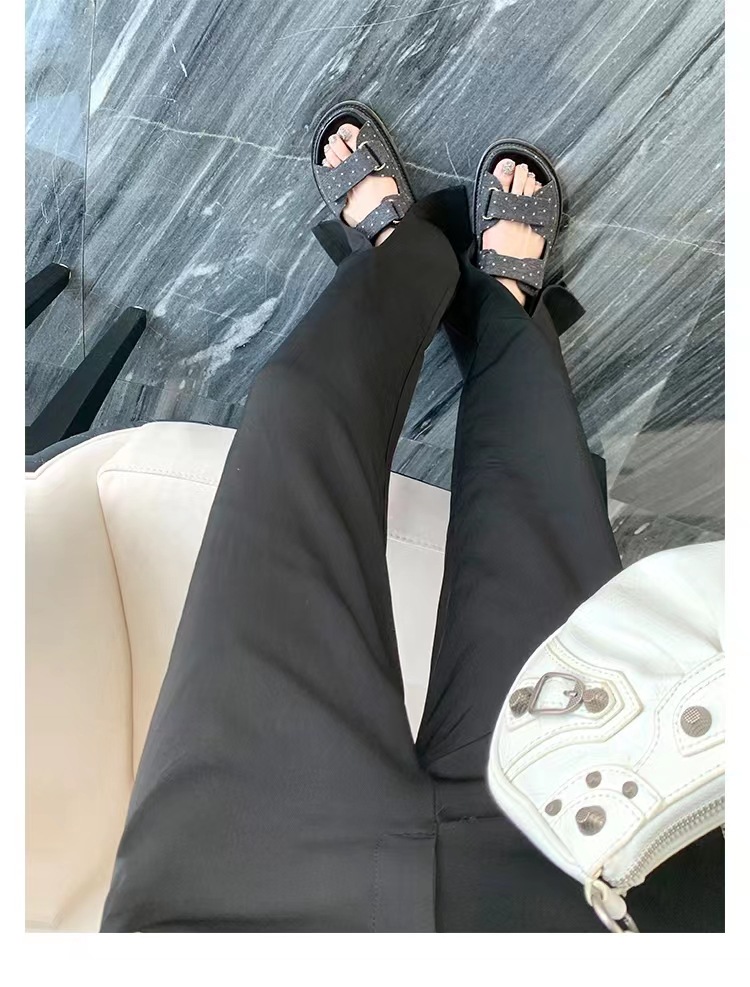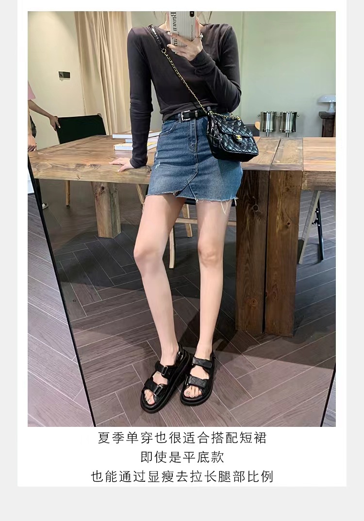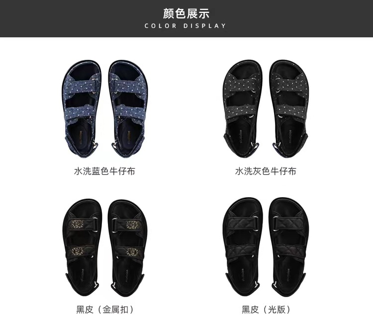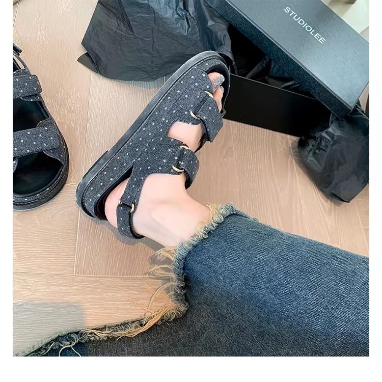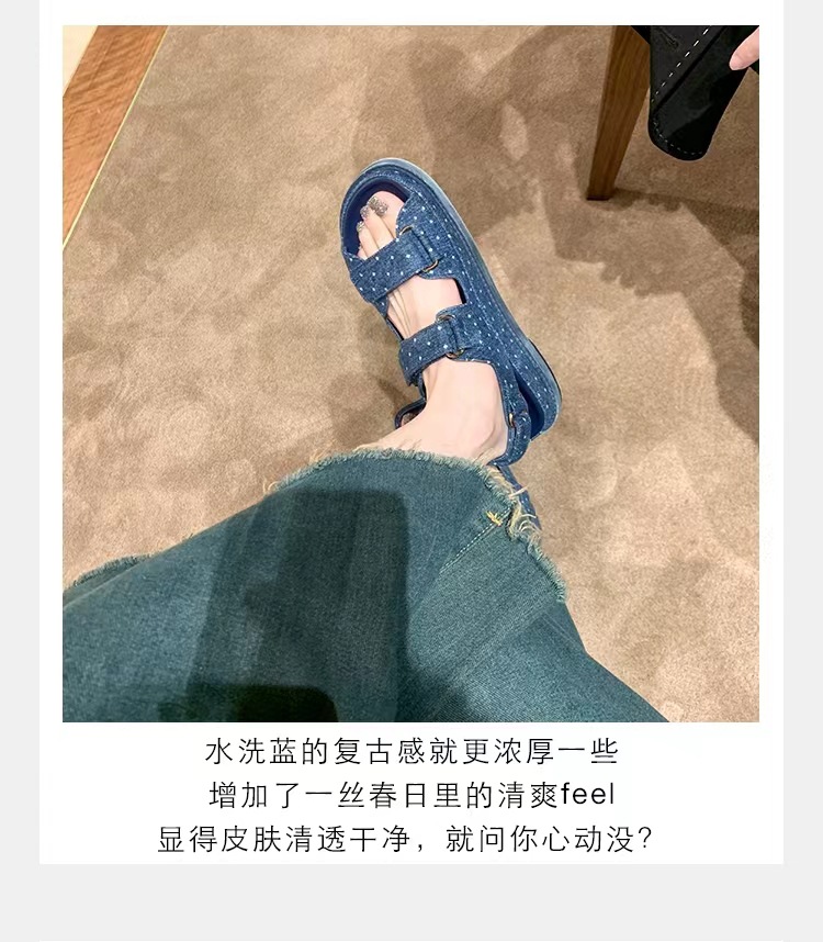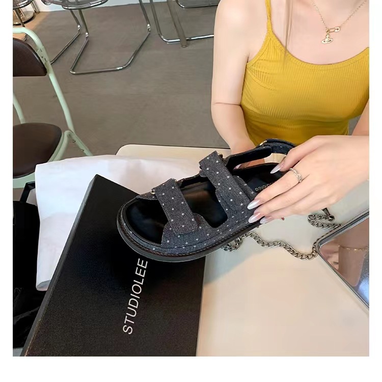 葡萄妈studiolee 百搭一字带魔术贴厚平底露趾沙滩运动凉鞋女夏季