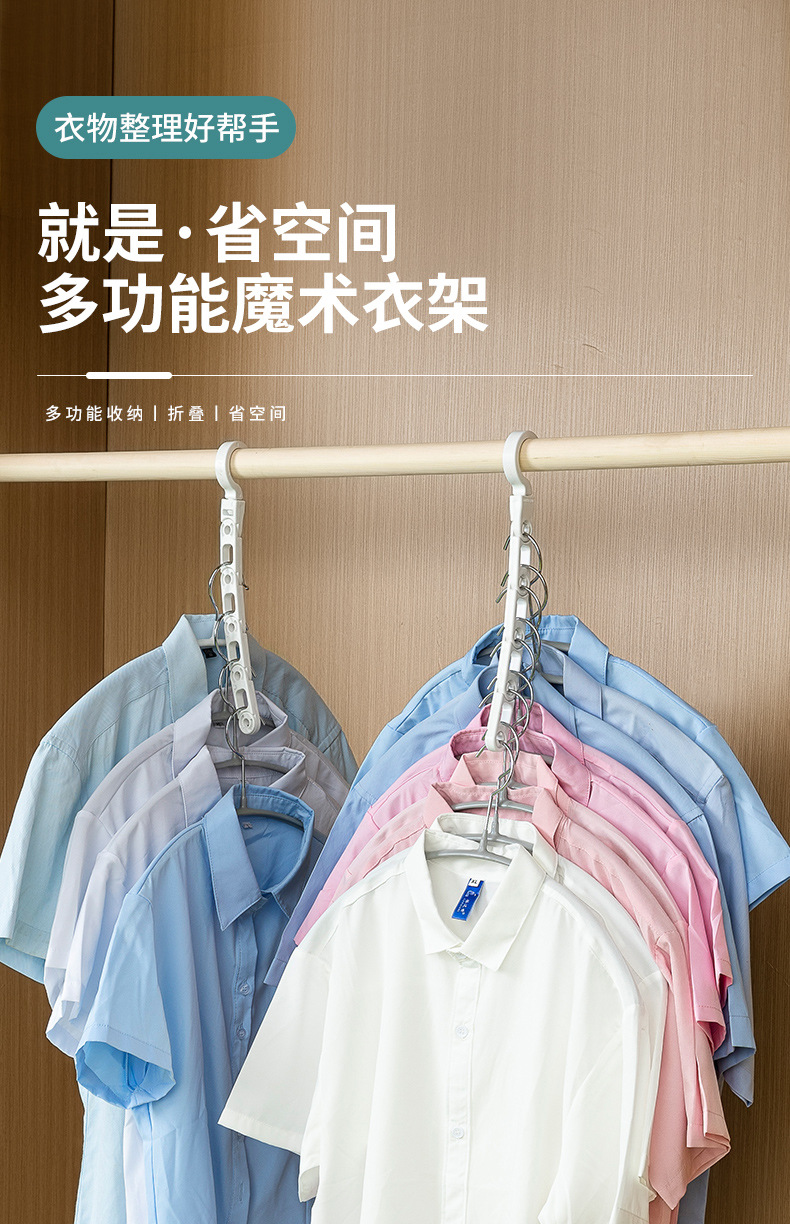 批发蛇形折叠魔术九孔衣架家居宿舍收纳好物省空间可叠挂塑料衣架