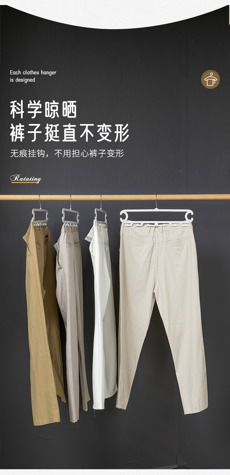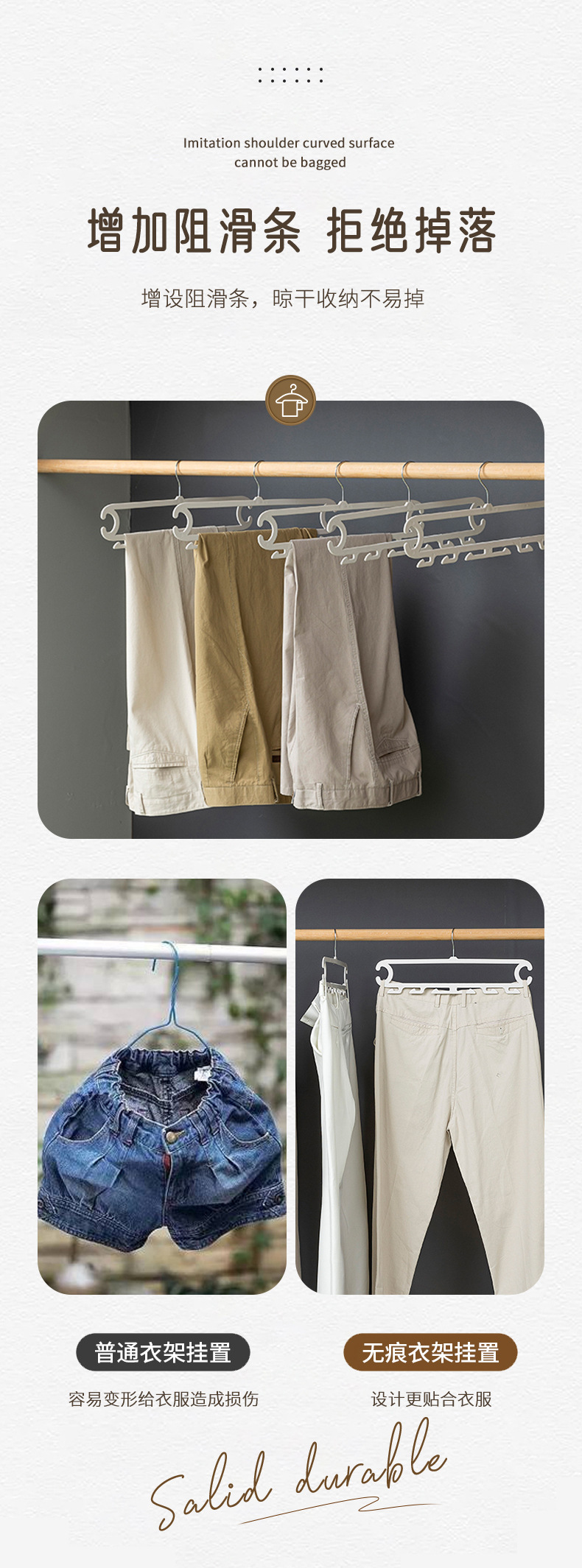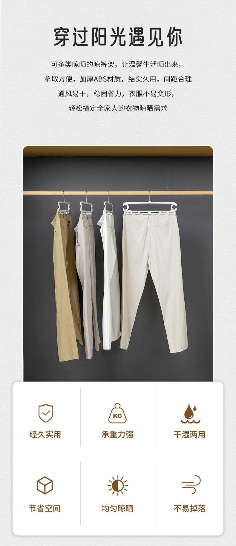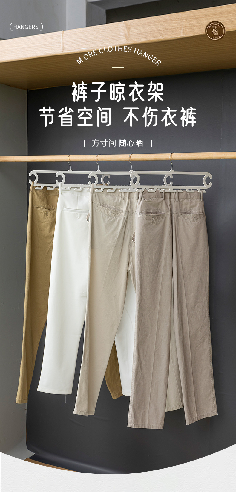 裤子收纳神器宿舍 白色晾晒架裤架 裤子8钩家用衣柜无痕防滑裤夹