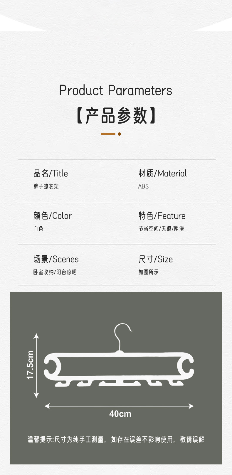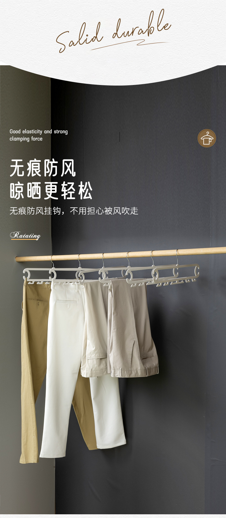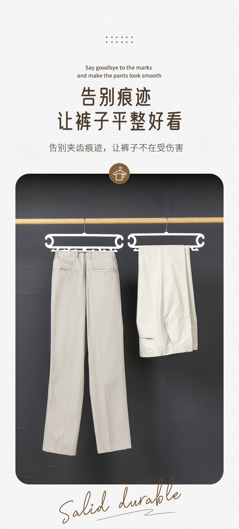 裤子收纳神器宿舍 白色晾晒架裤架 裤子8钩家用衣柜无痕防滑裤夹