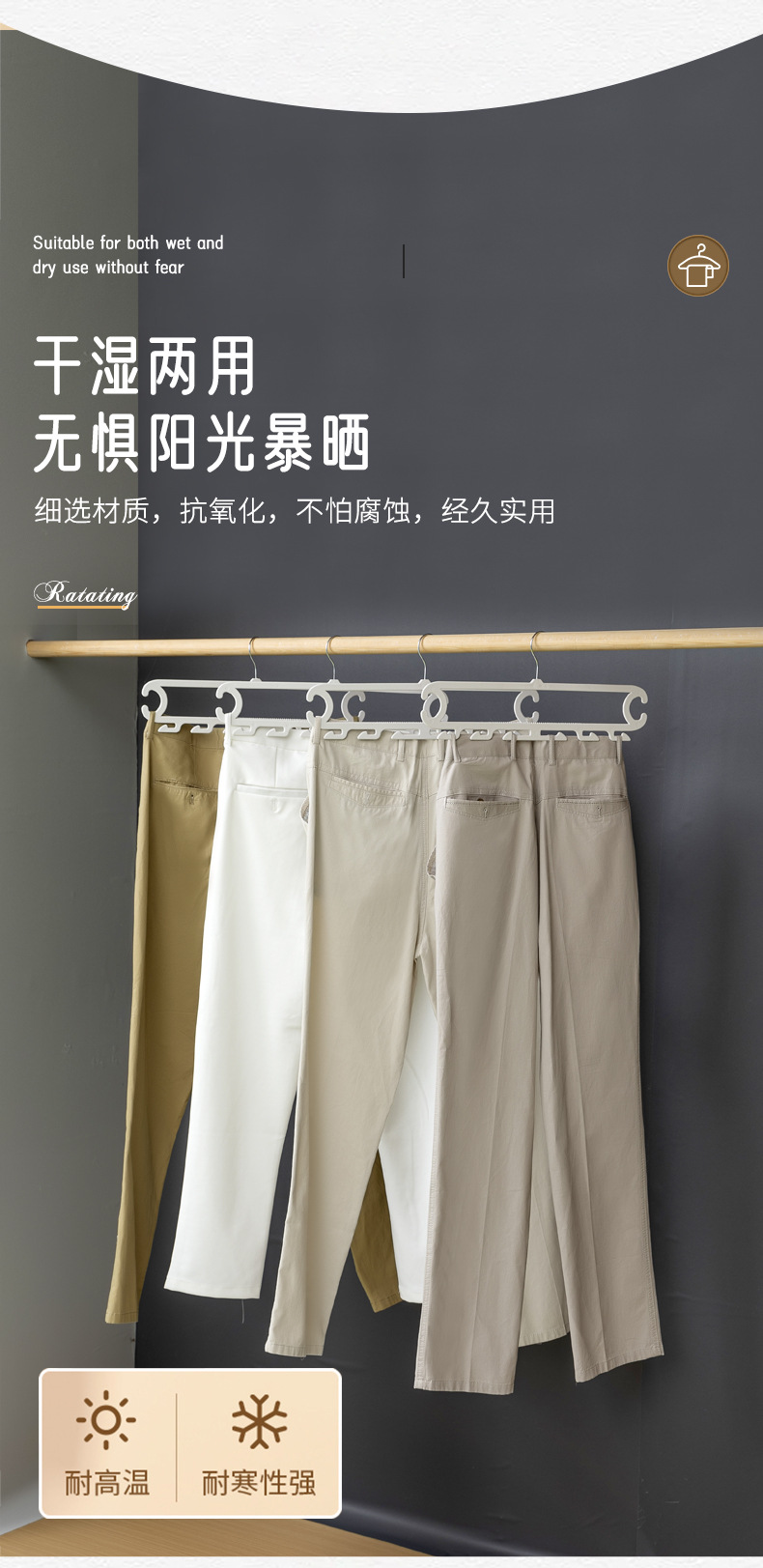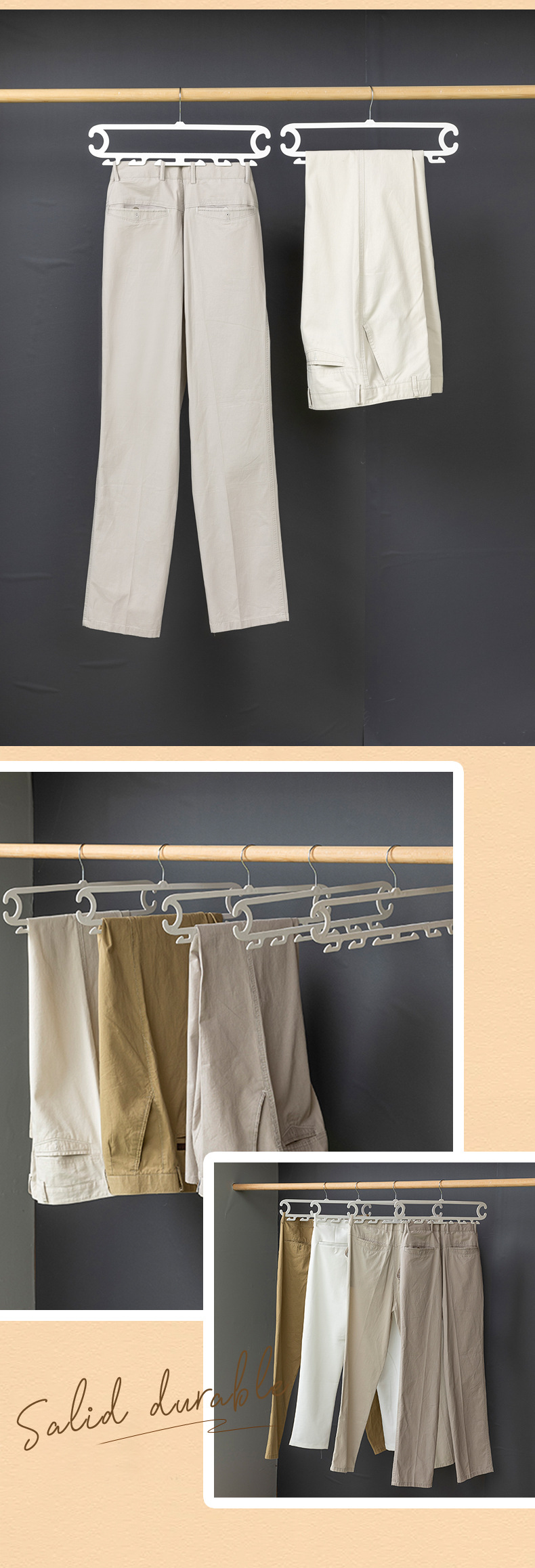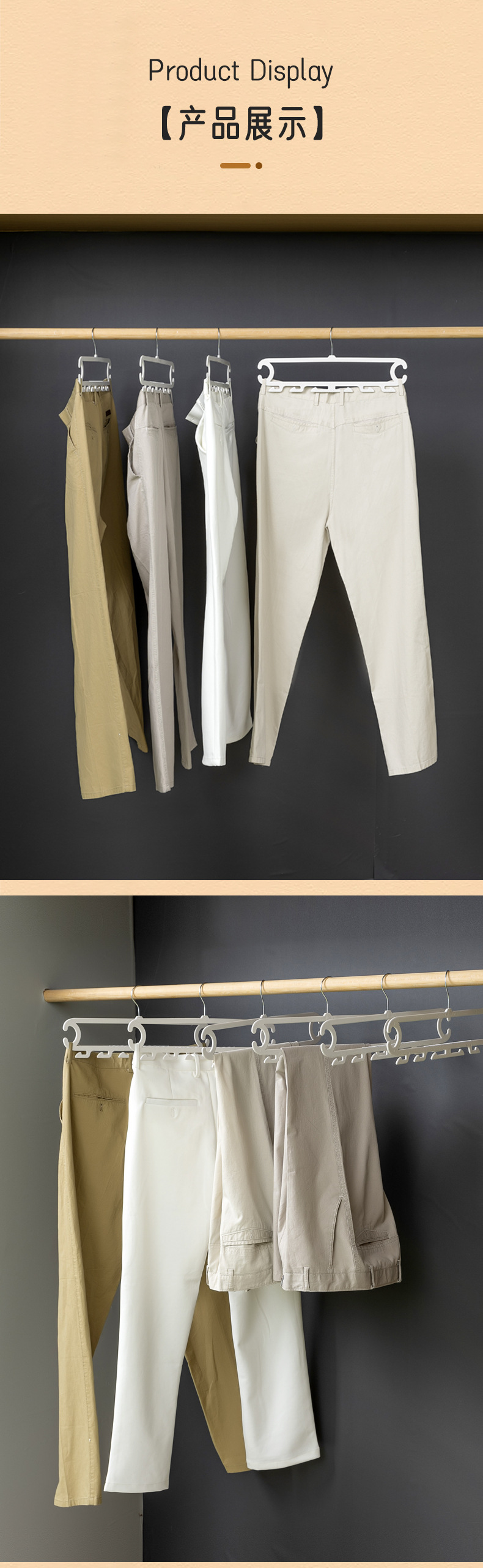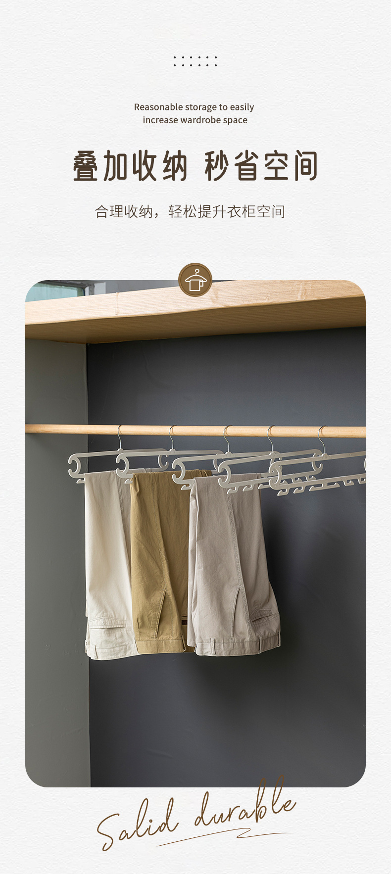 裤子收纳神器宿舍 白色晾晒架裤架 裤子8钩家用衣柜无痕防滑裤夹