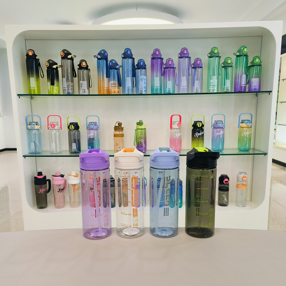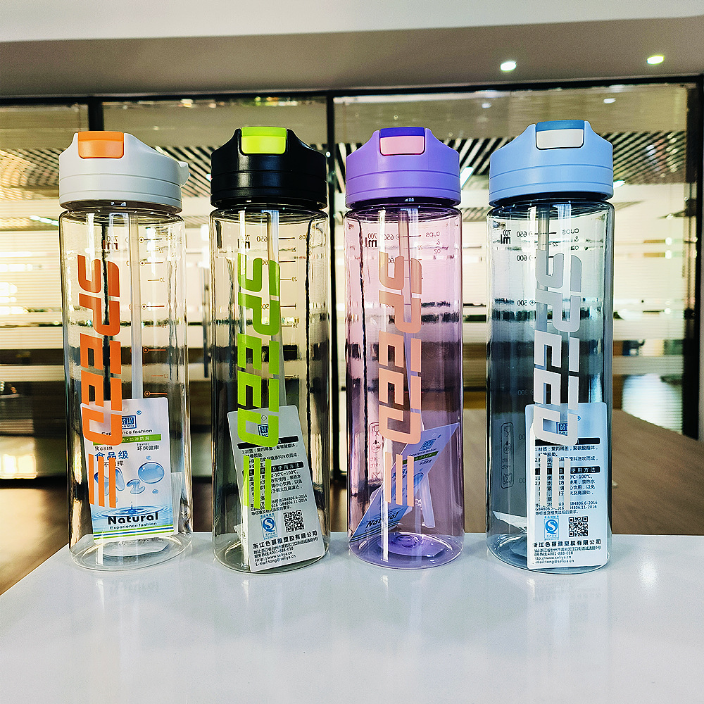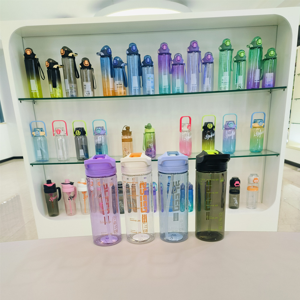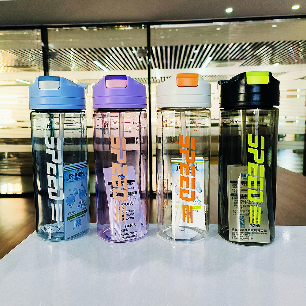 批发创意弹盖PS吸嘴防尘片环保直身塑料男女学生情侣520ML吸管杯