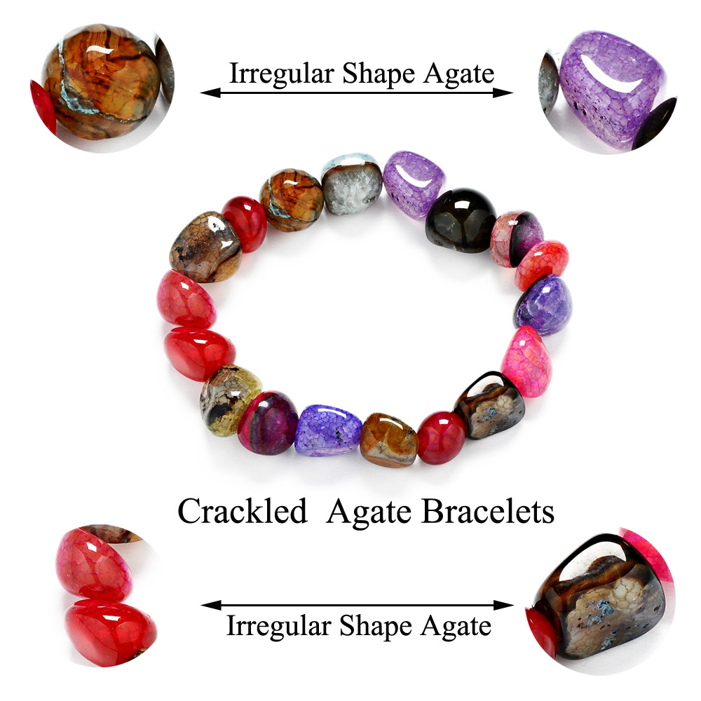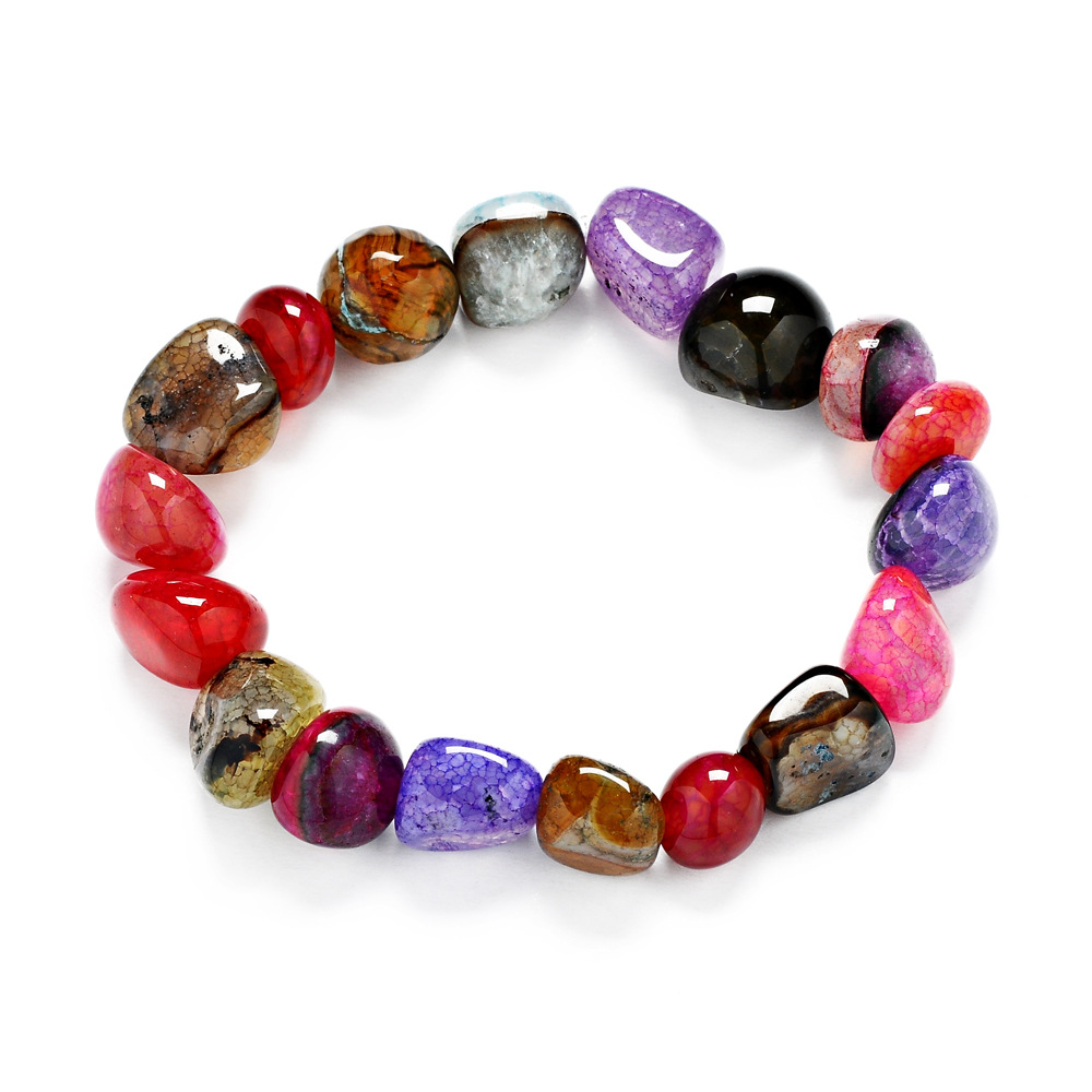 随机七彩冰裂纹不规则天然宝石手串10*11mm随形混彩玛瑙手链