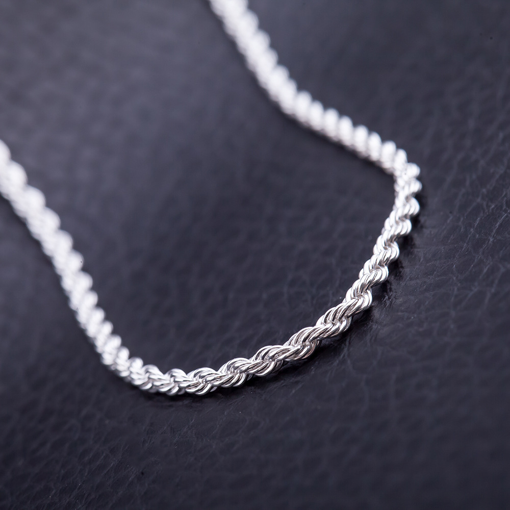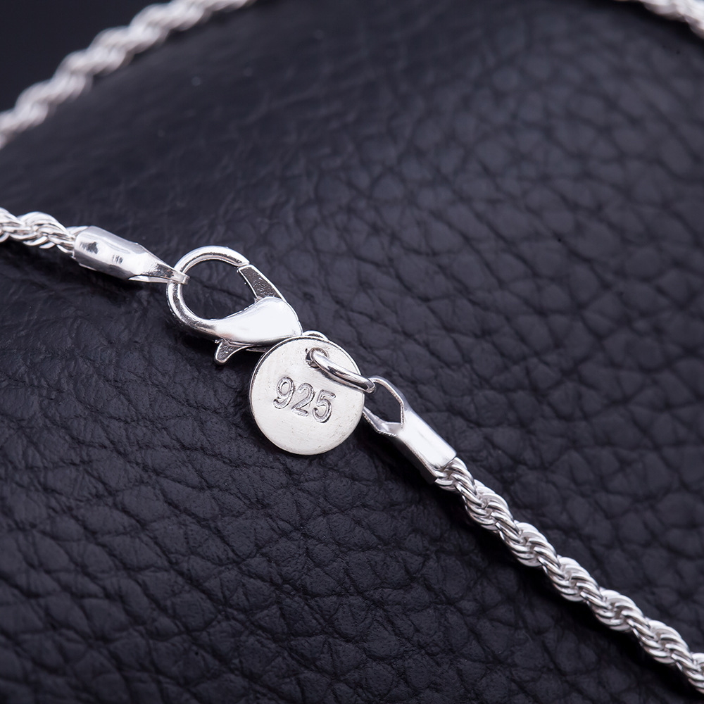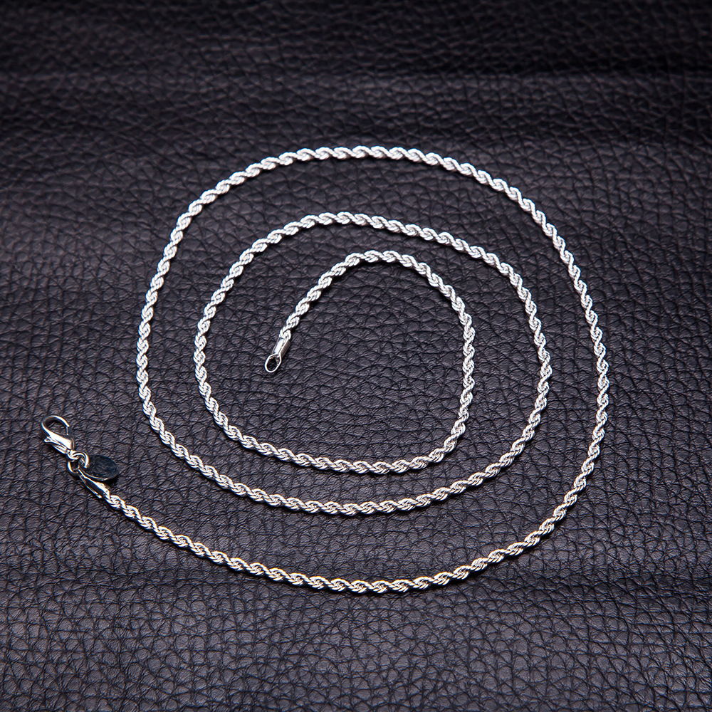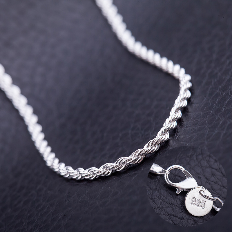 跨境潮流首饰镀银3mm麻花银925吊牌项链麻花链