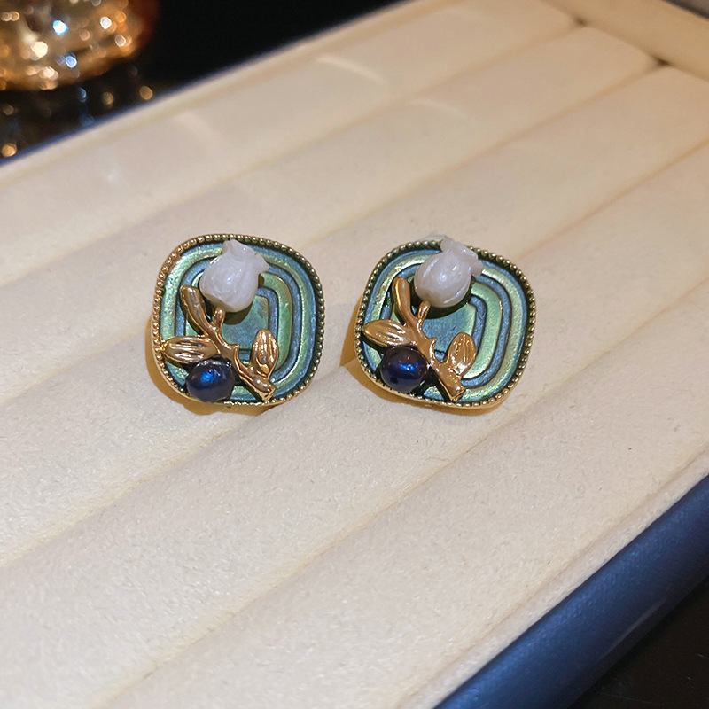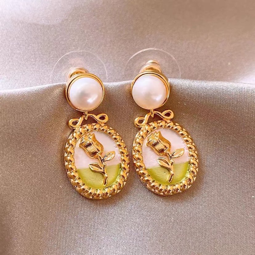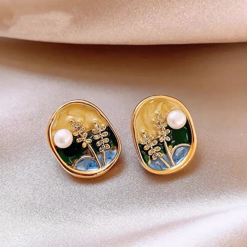 莫奈花园珍珠花朵耳钉法式森系高级感气质耳环轻奢中古耳饰女批发
