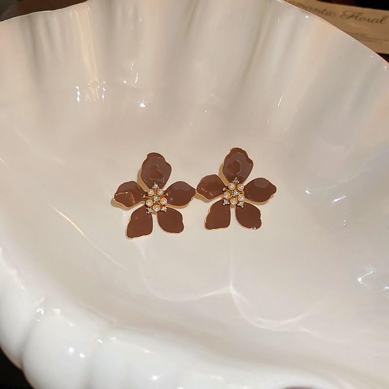 银针滴油花朵几何耳环女2024夏季新款百搭耳钉轻奢高级感耳饰批发