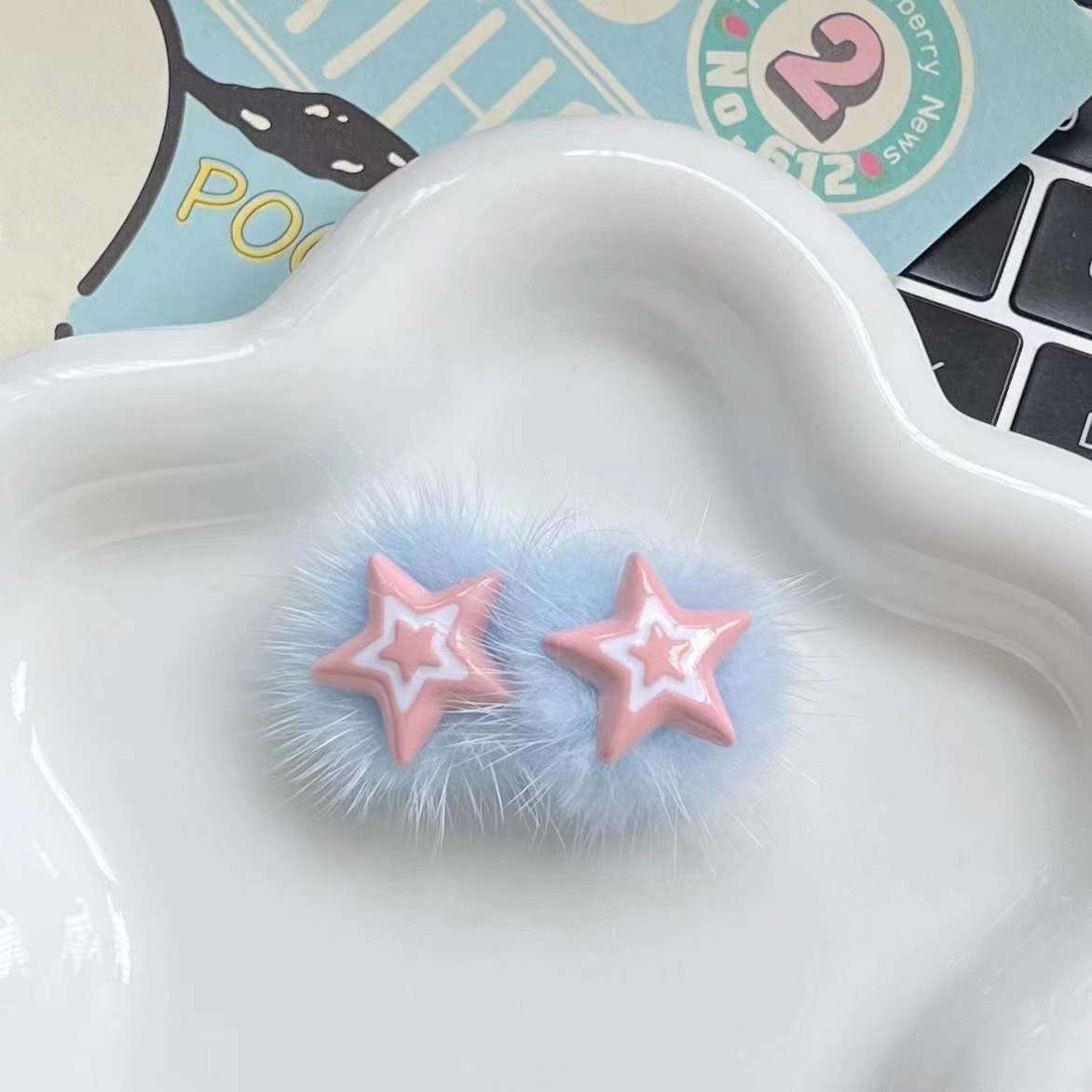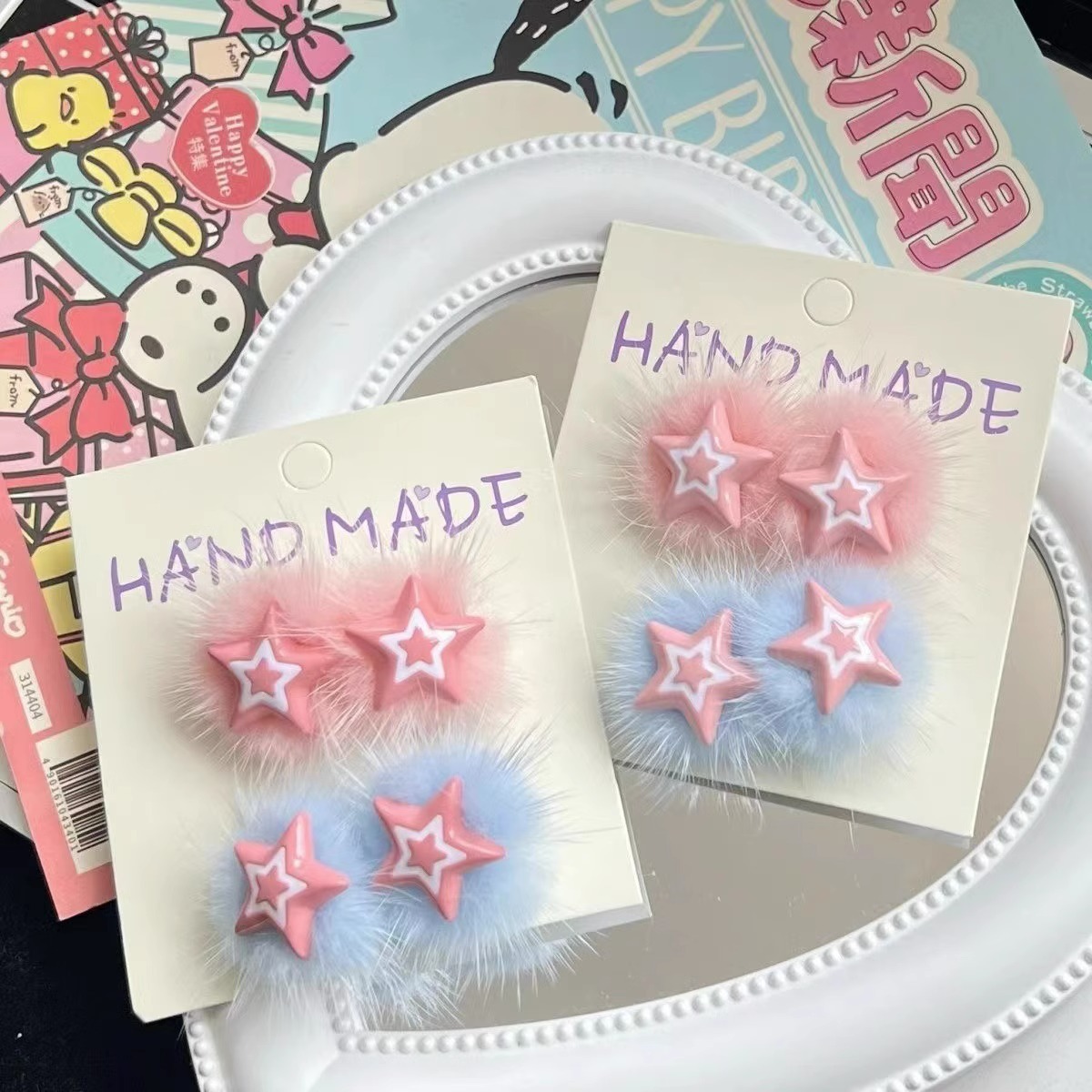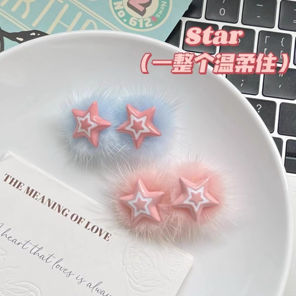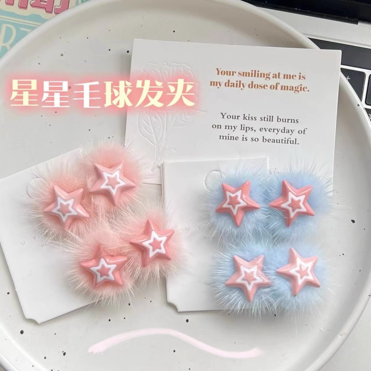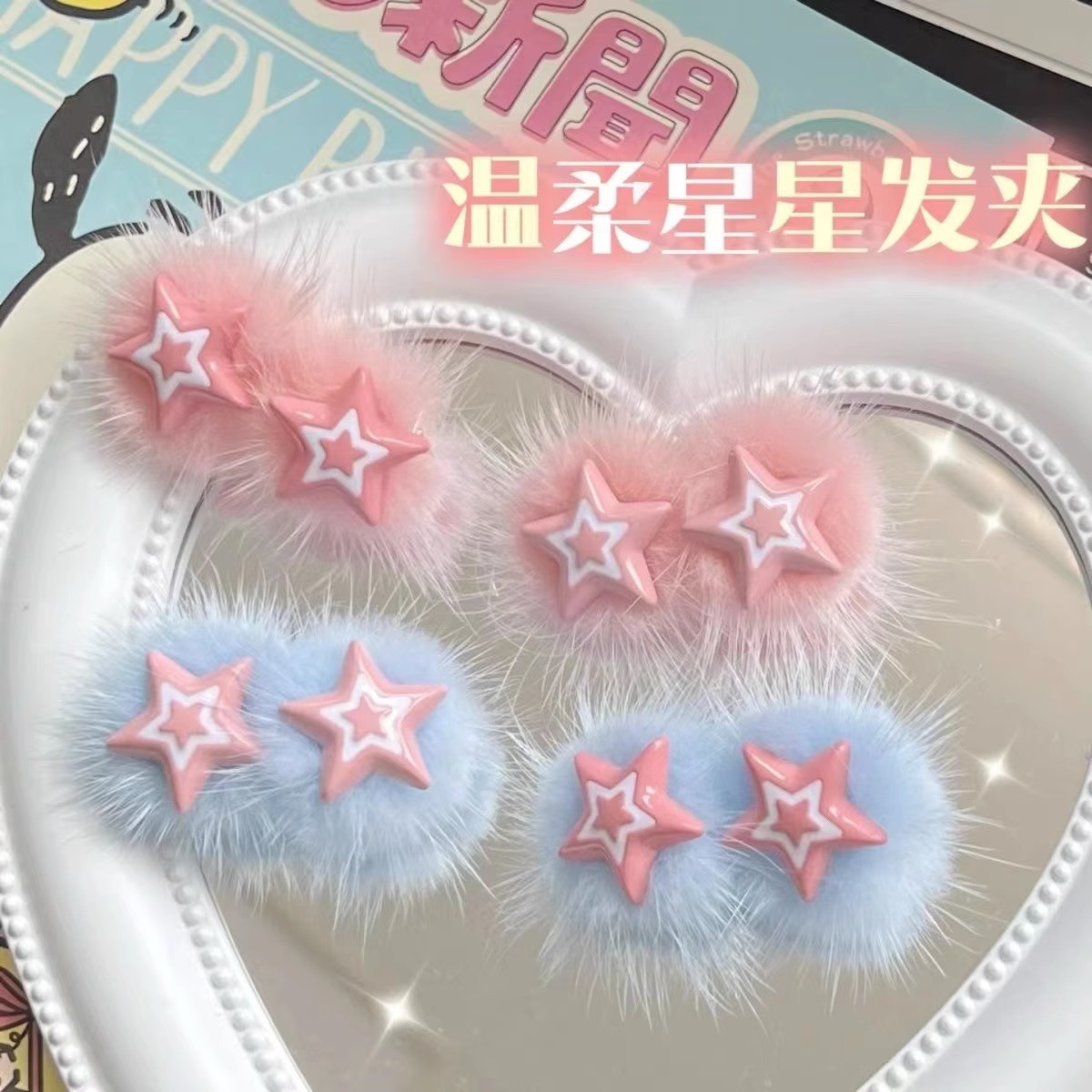 秋冬新款芭比风毛绒星星发卡刘海侧边夹儿童可爱甜美发饰百搭头饰
