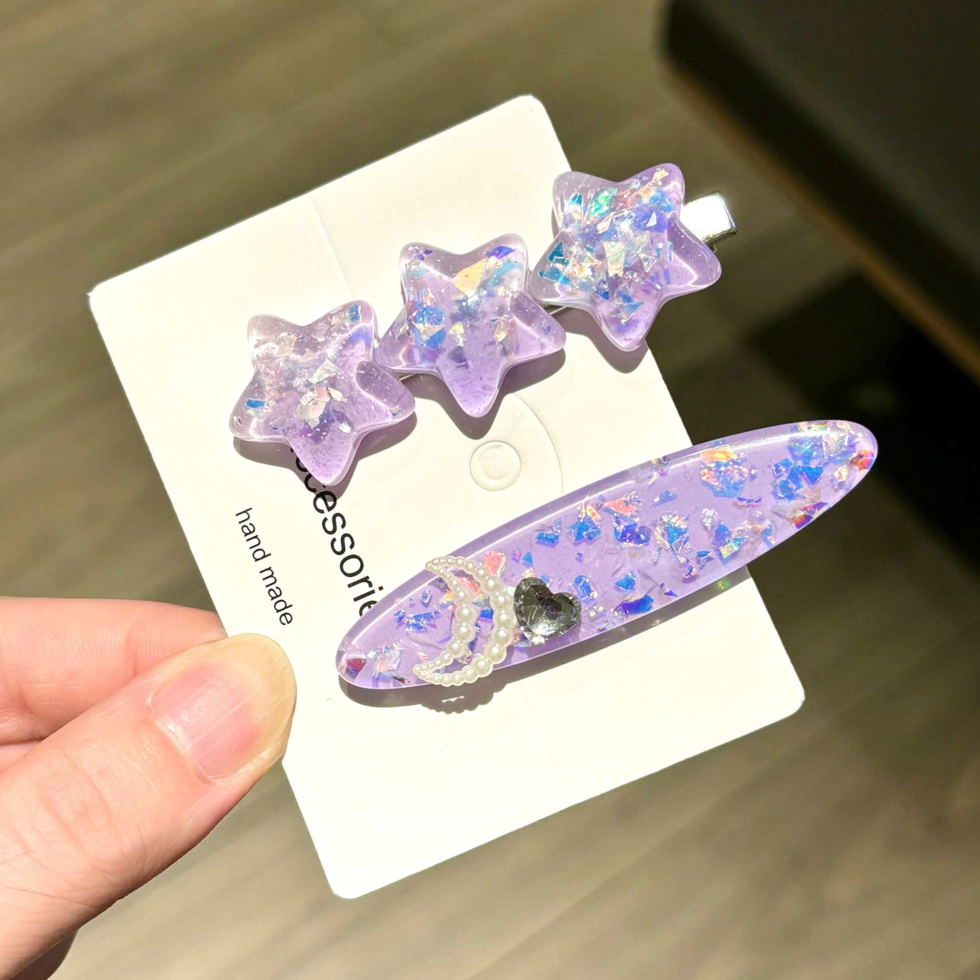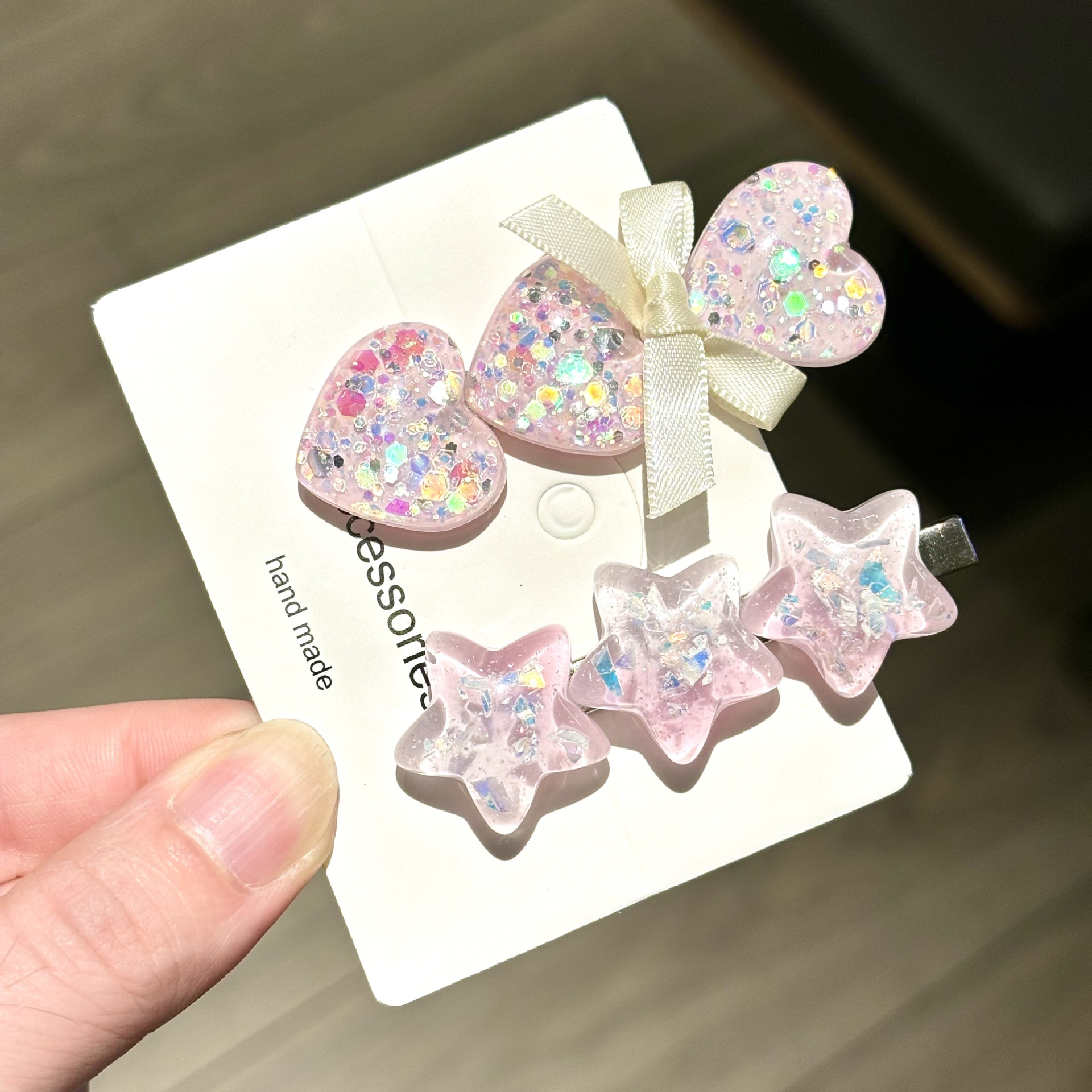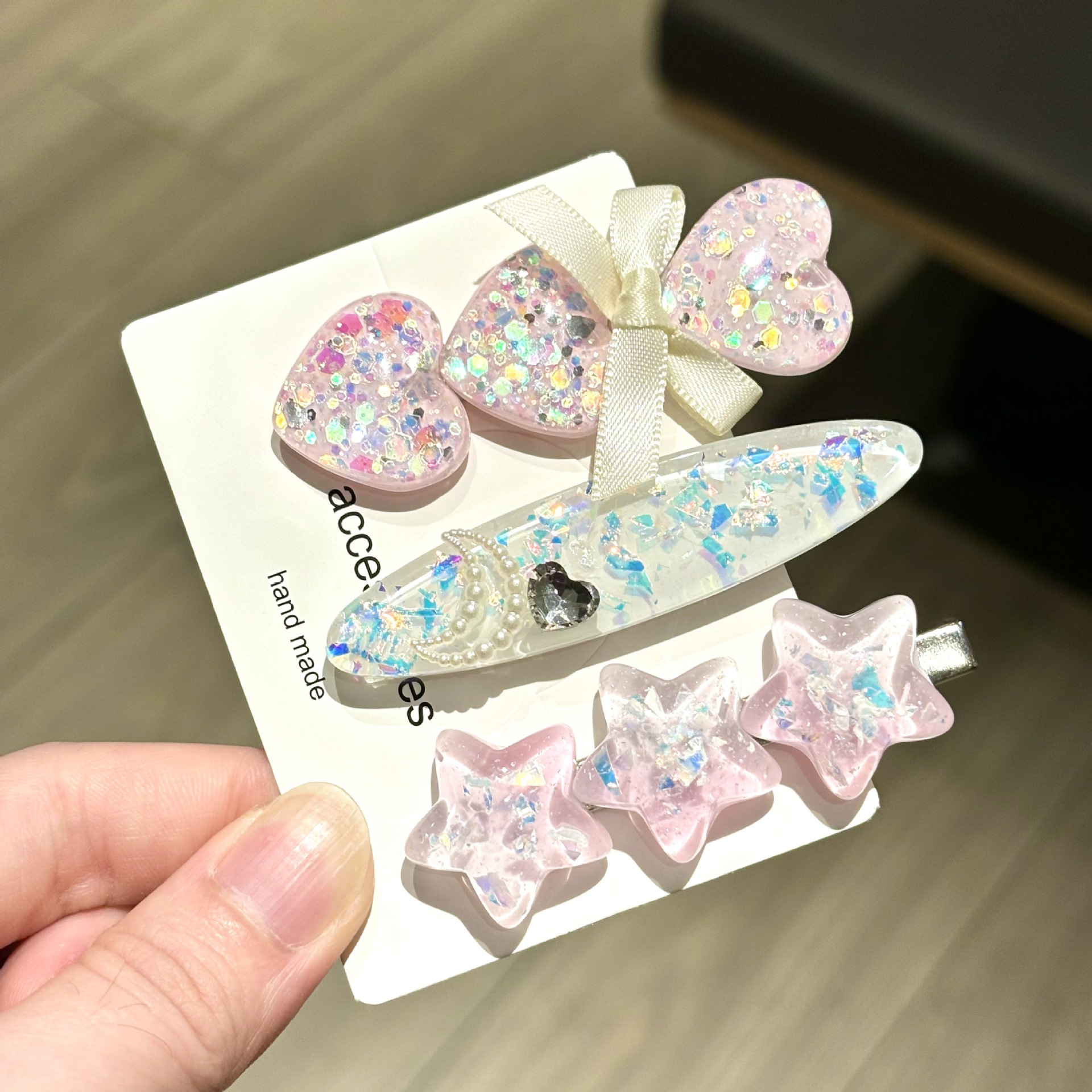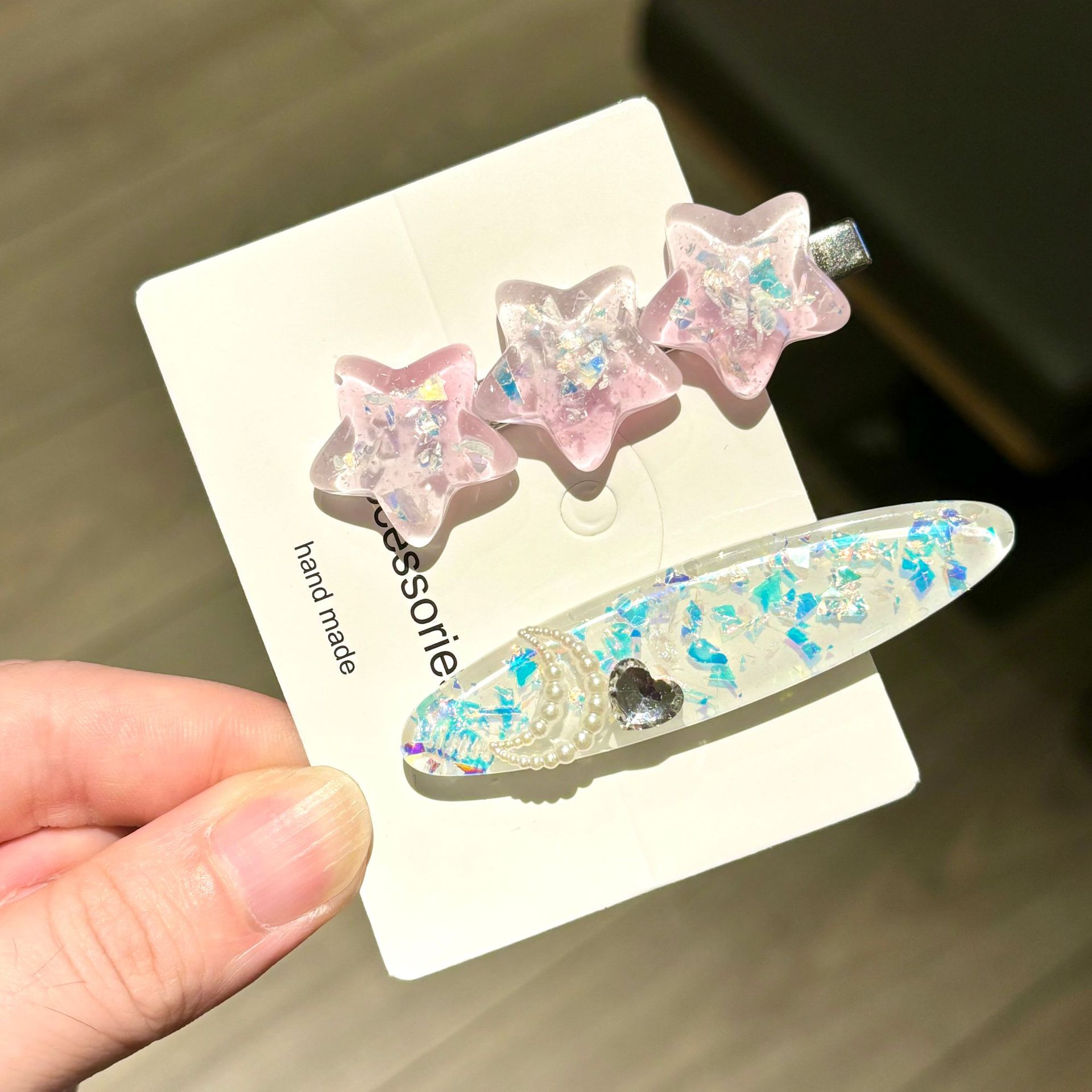 清透亮片树脂爱心发卡可爱五角星发夹马卡龙侧边鸭嘴夹头饰发饰女