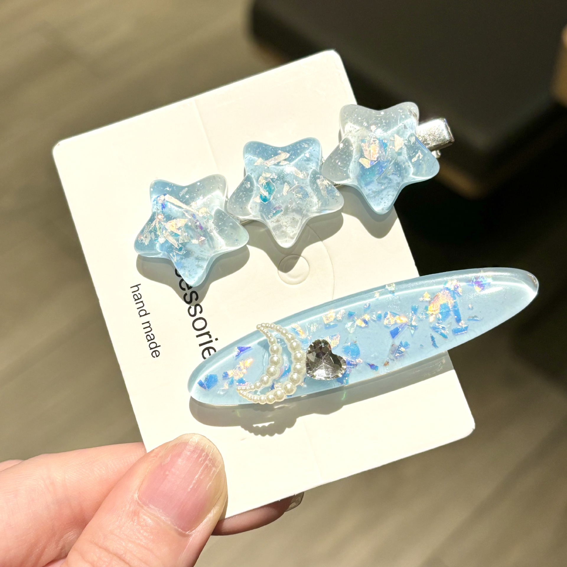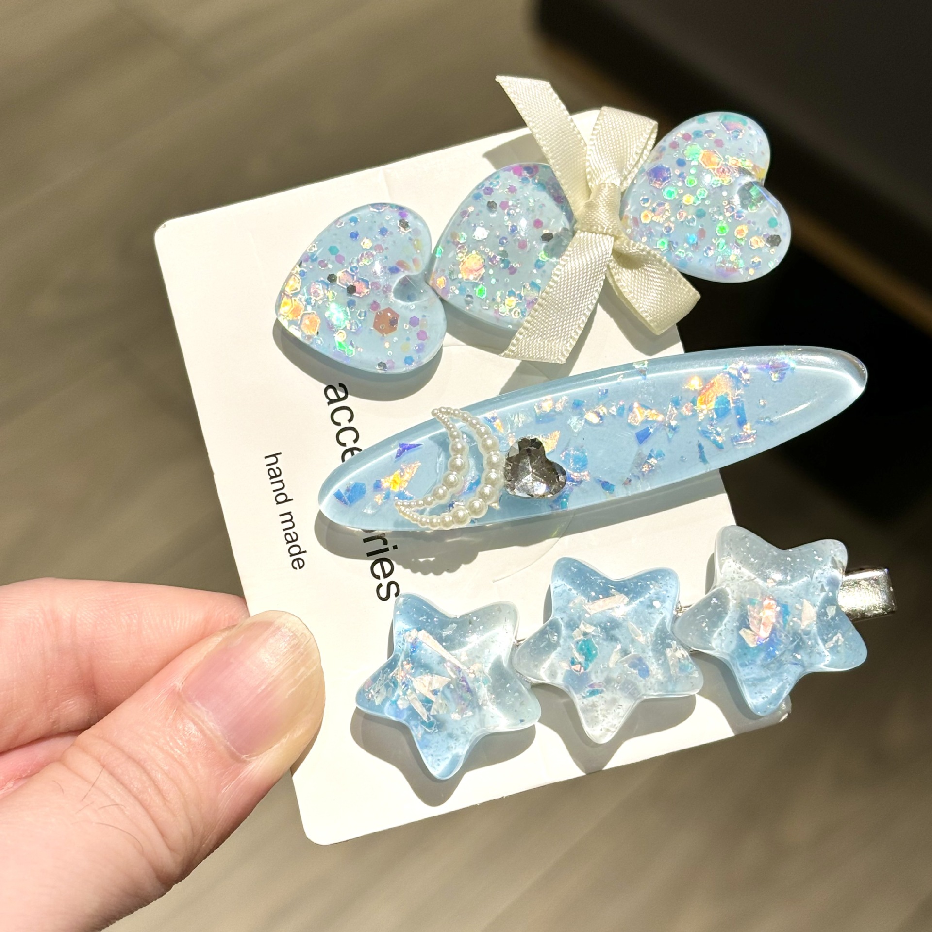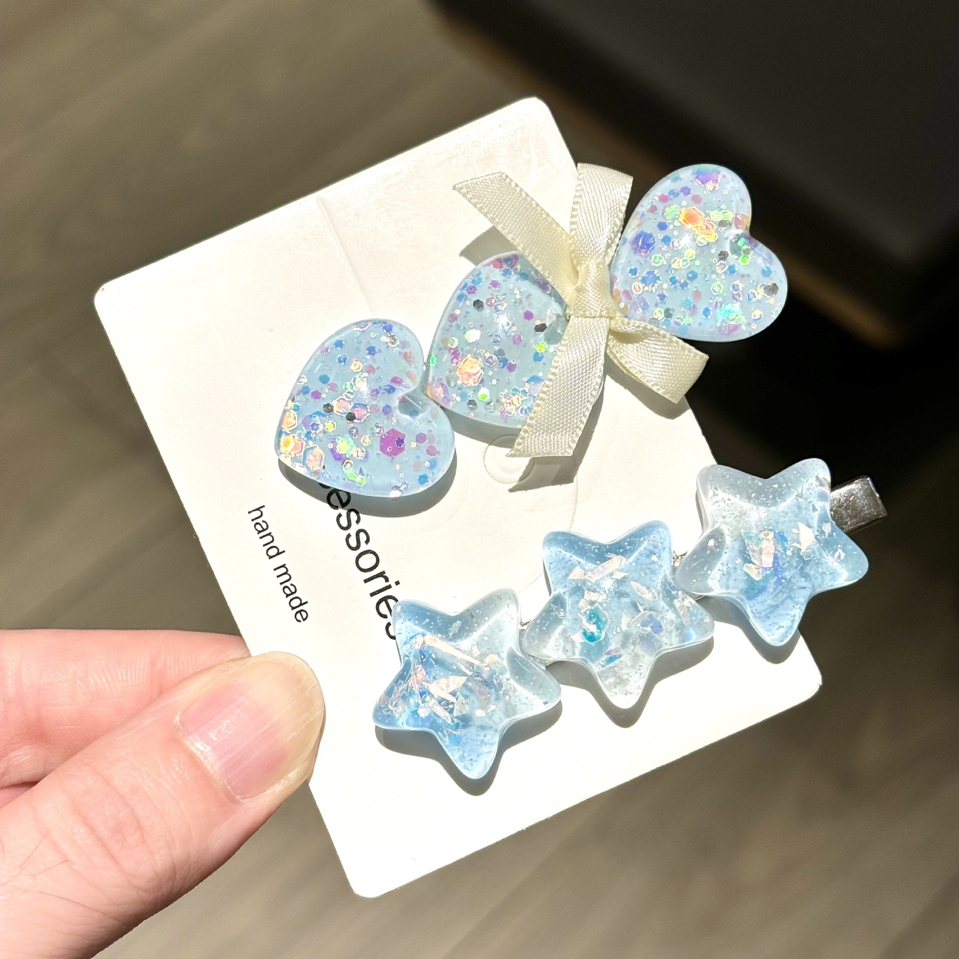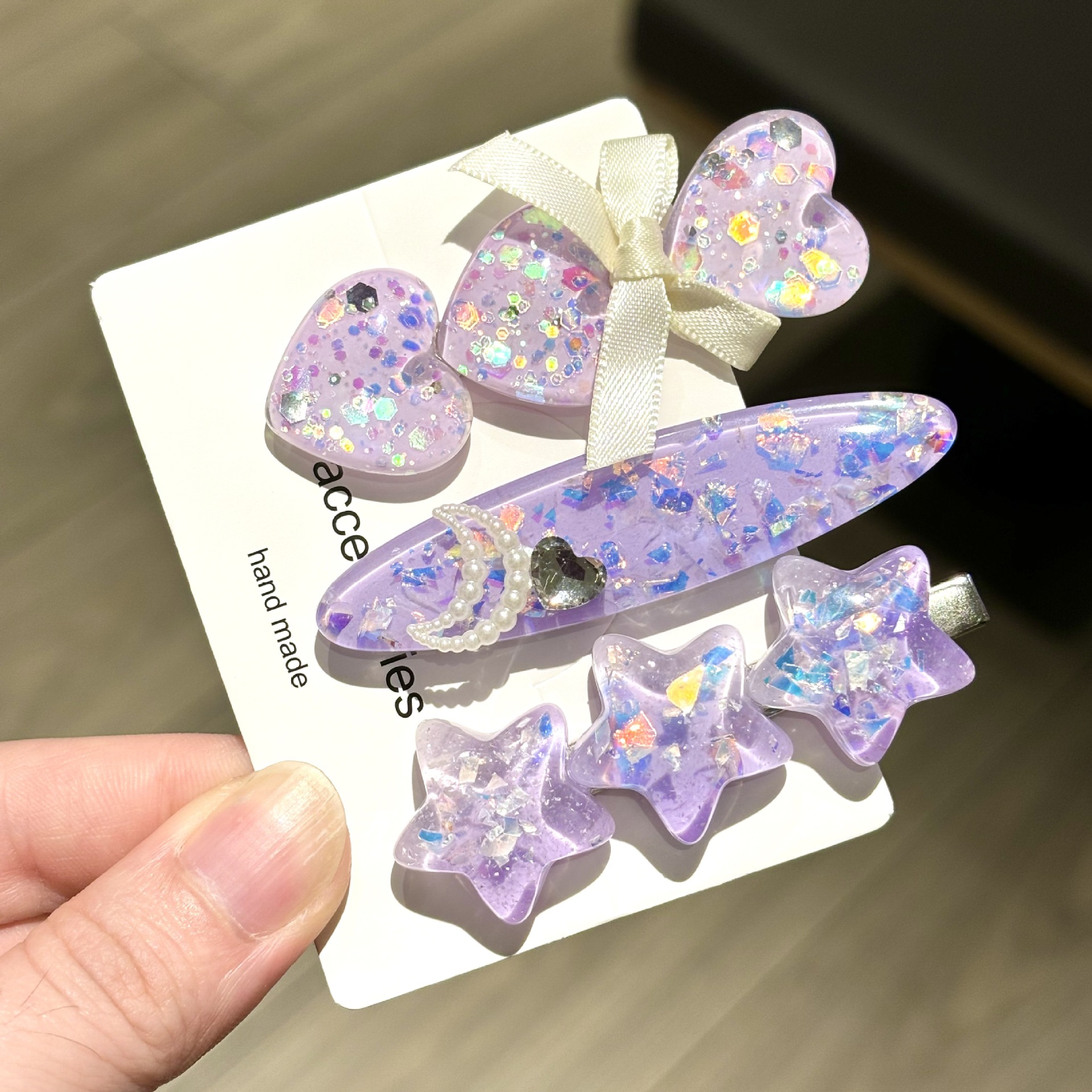 清透亮片树脂爱心发卡可爱五角星发夹马卡龙侧边鸭嘴夹头饰发饰女