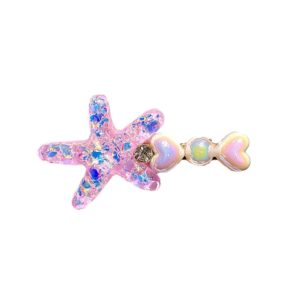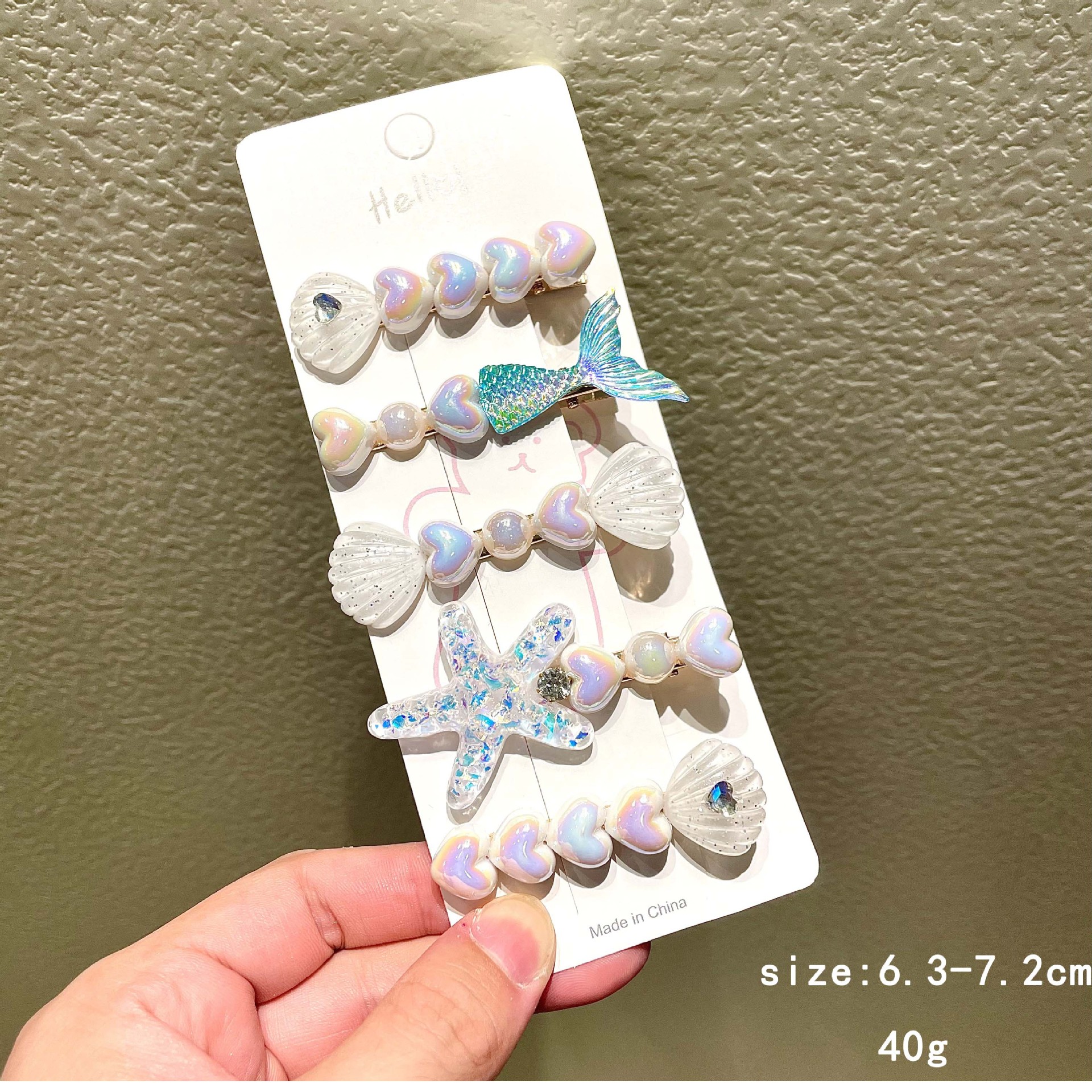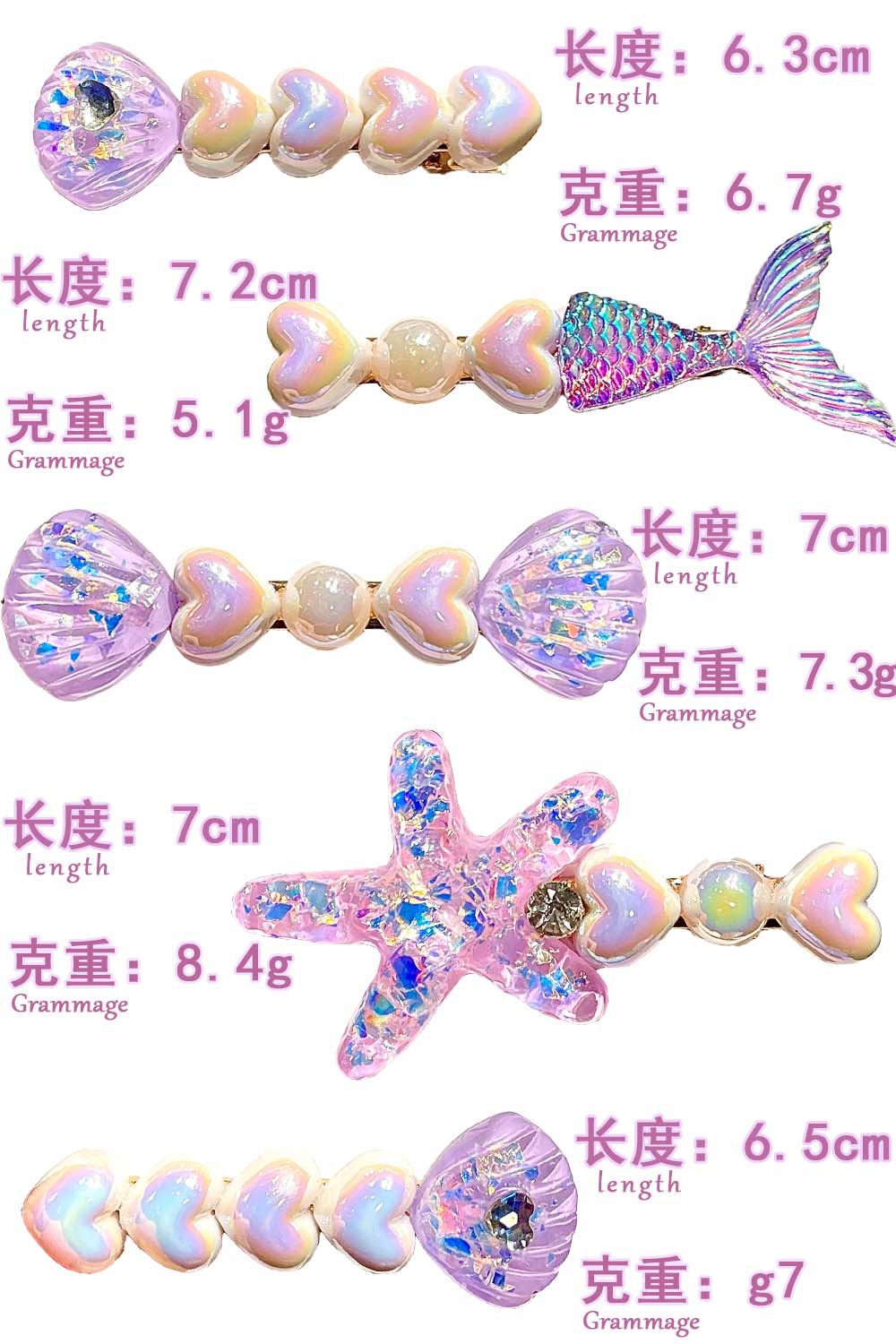 新款人鱼姬爱心发夹海星美人鱼发卡可爱少女侧边夹鸭嘴夹发饰头饰