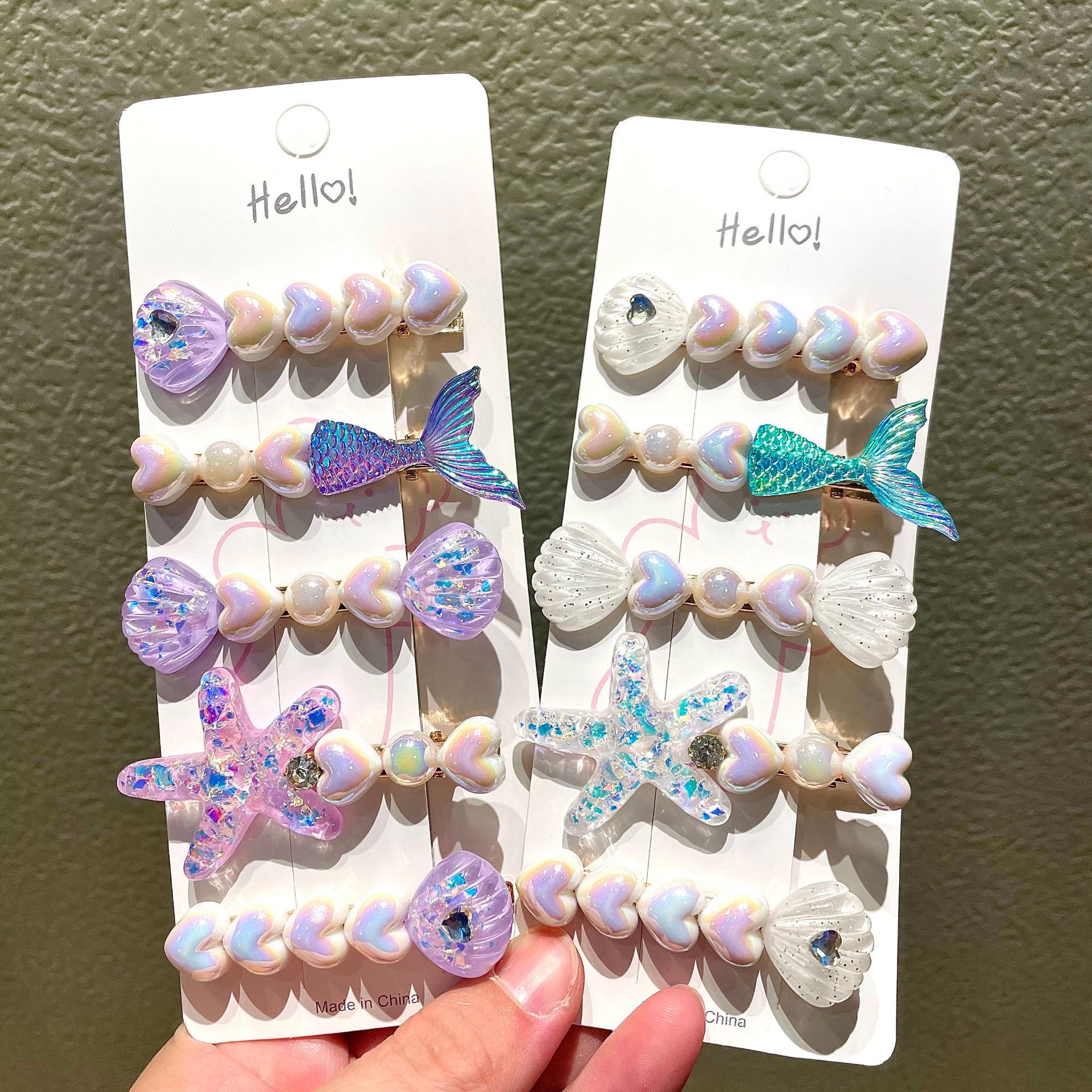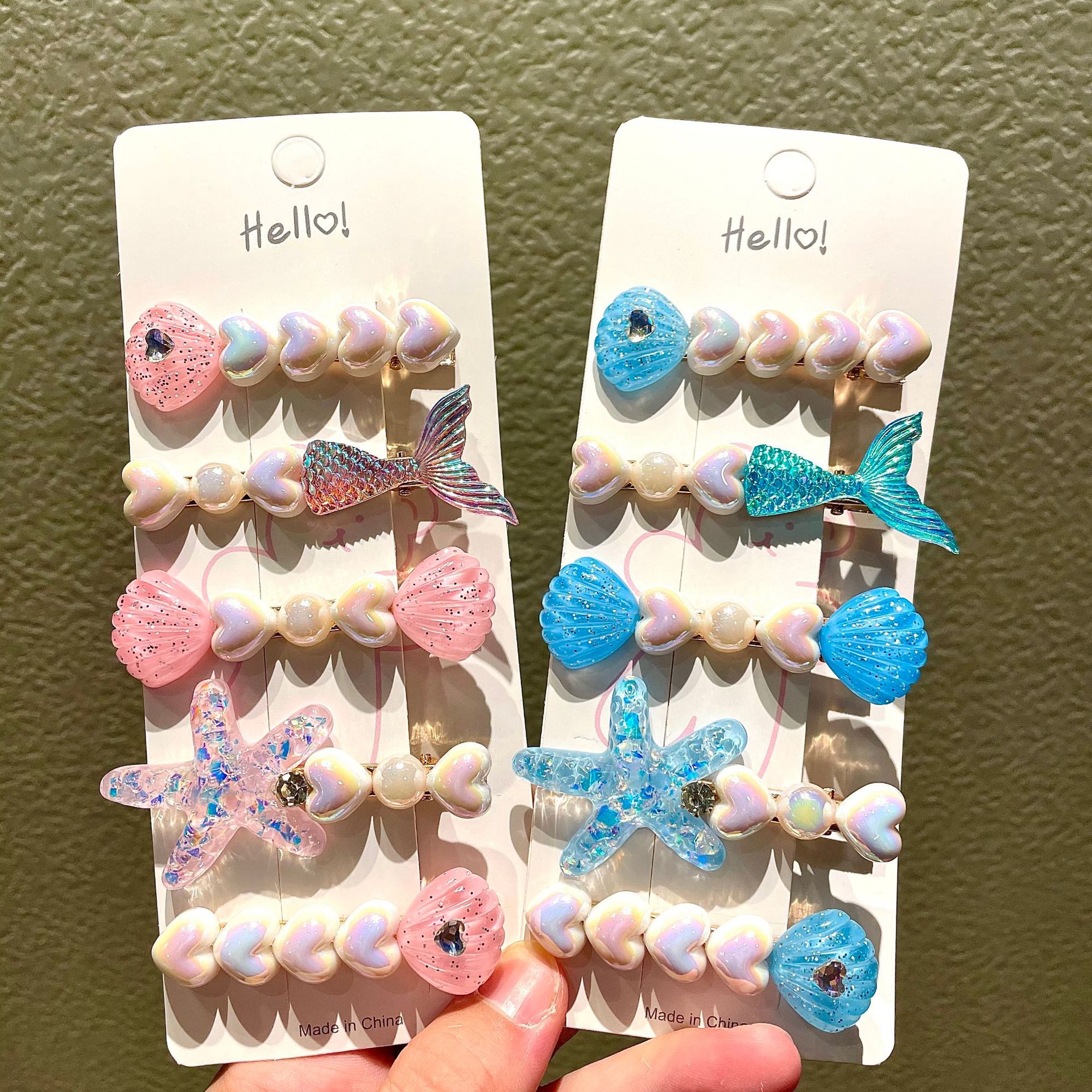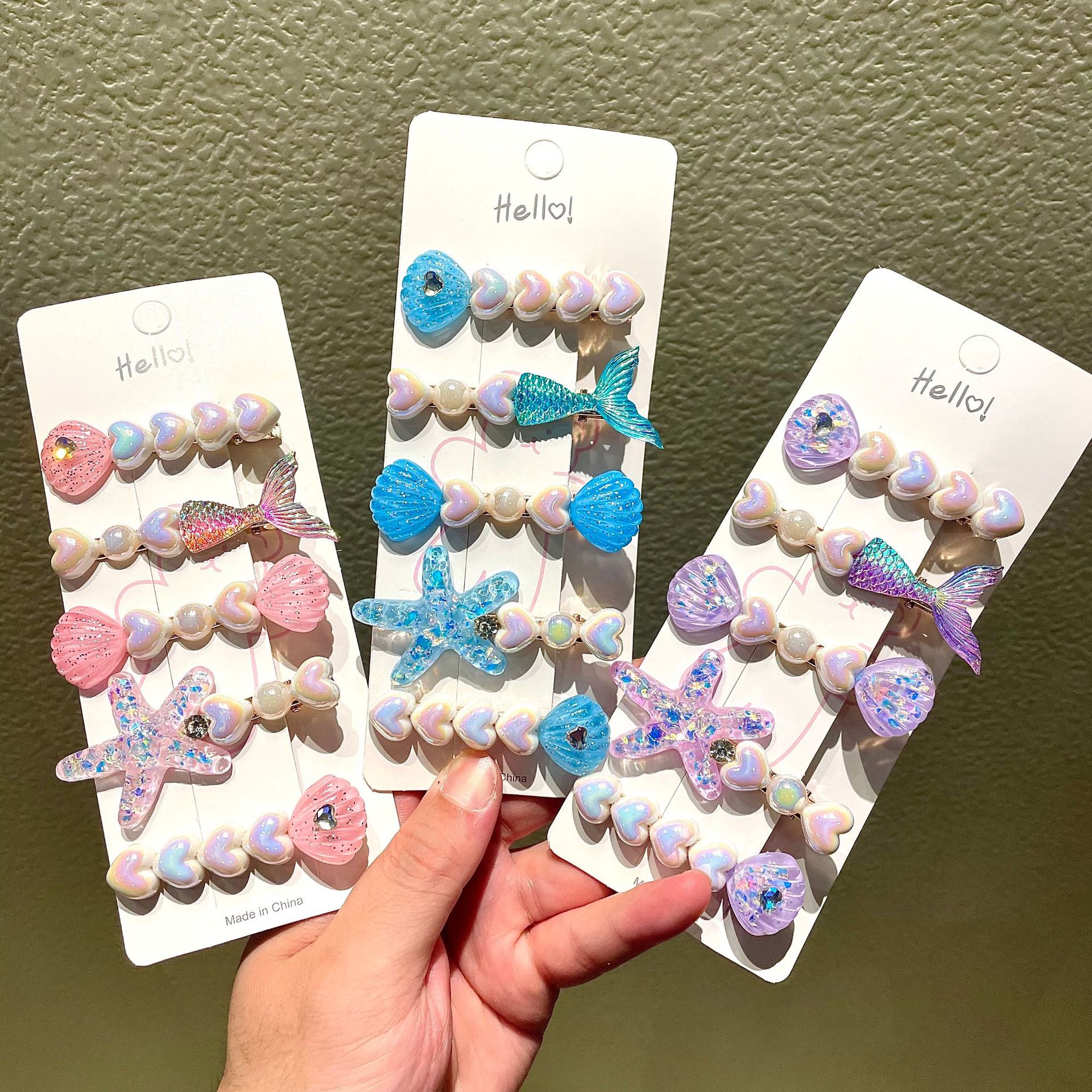 新款人鱼姬爱心发夹海星美人鱼发卡可爱少女侧边夹鸭嘴夹发饰头饰