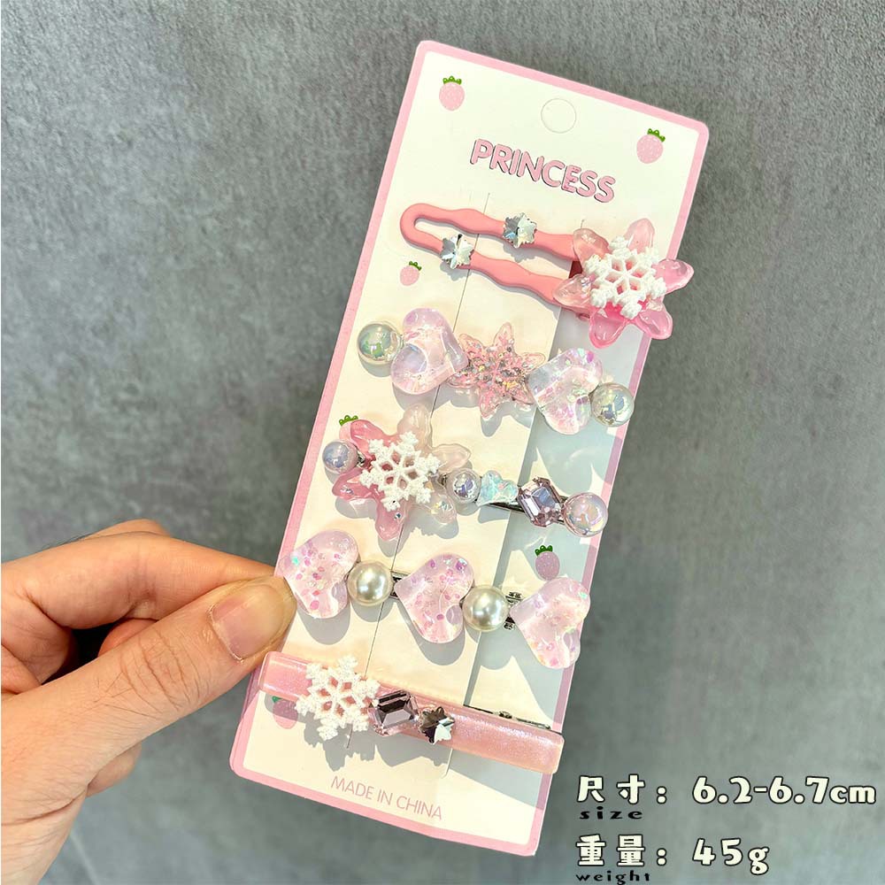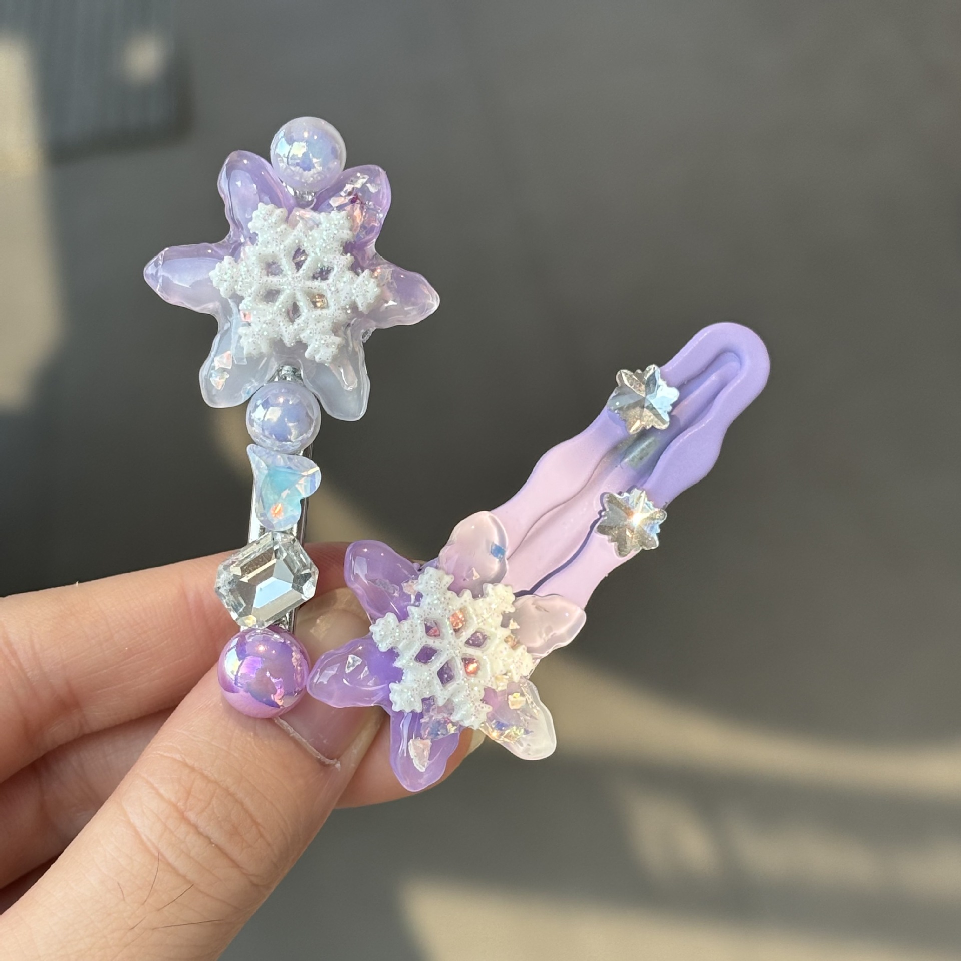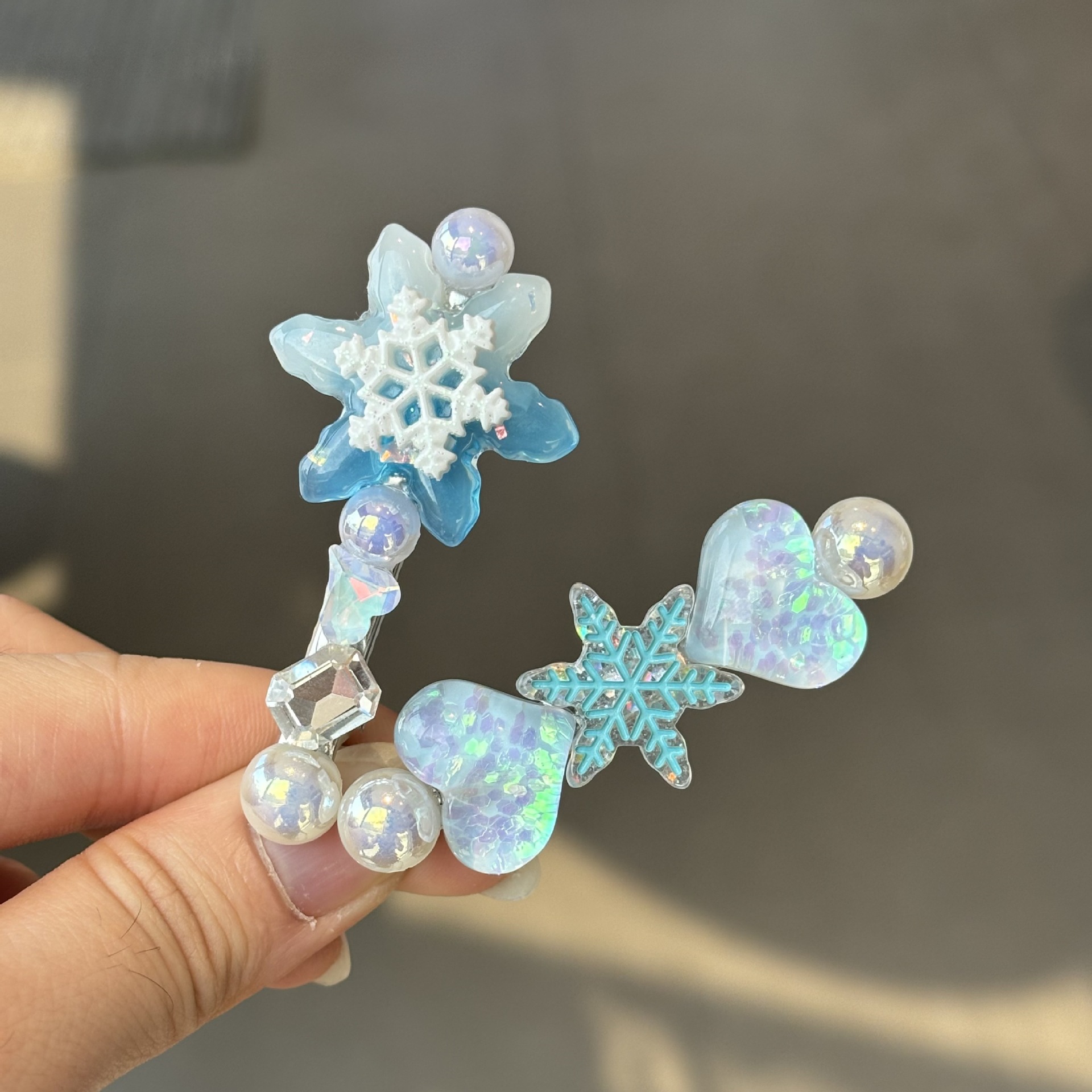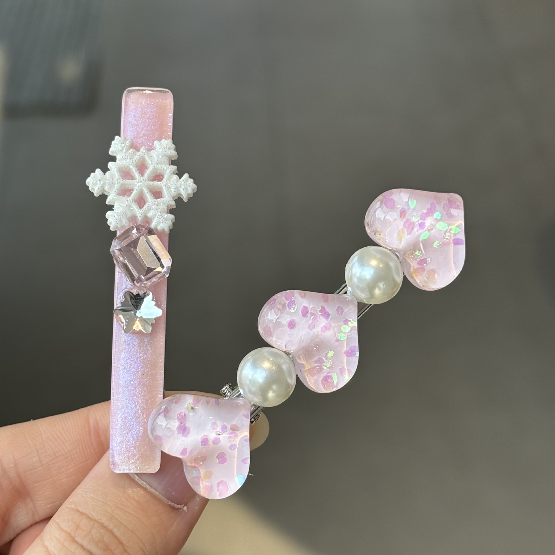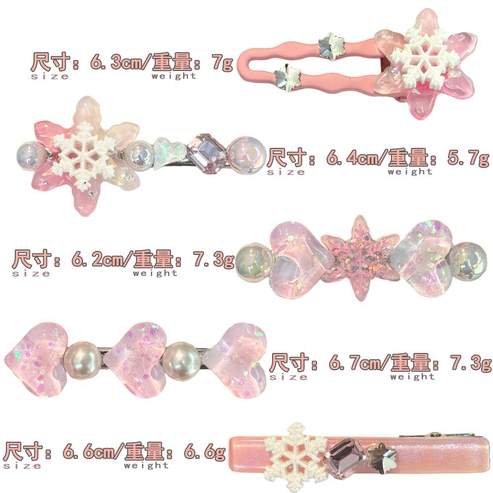 新款发夹雪花发卡甜美侧边夹爱心鸭嘴夹水钻夹子高级感边夹发饰女