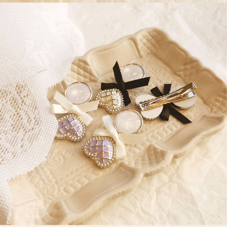 法式复古小香风菱格爱心刘海夹宫廷风蝴蝶结鸭嘴夹