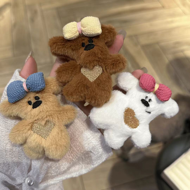 可爱毛绒公仔蝴蝶结小熊发夹鸭嘴夹百搭少女心刘海侧边夹卡通发卡