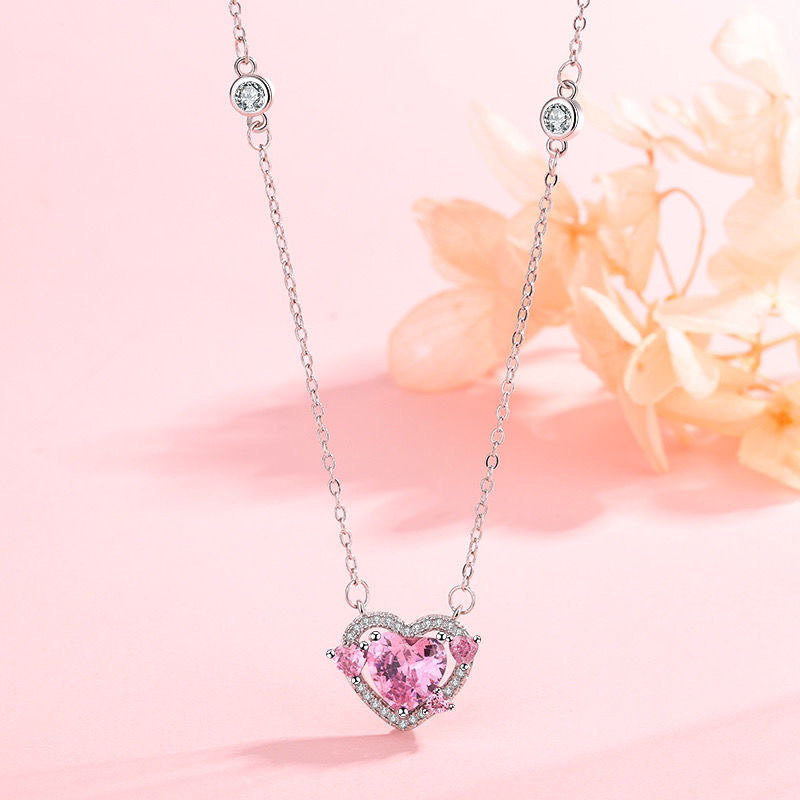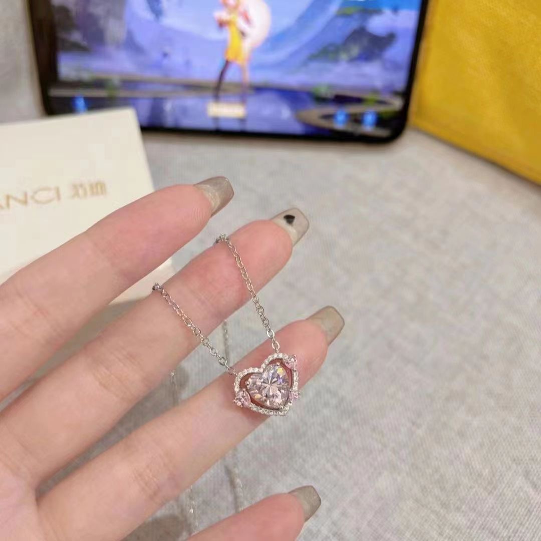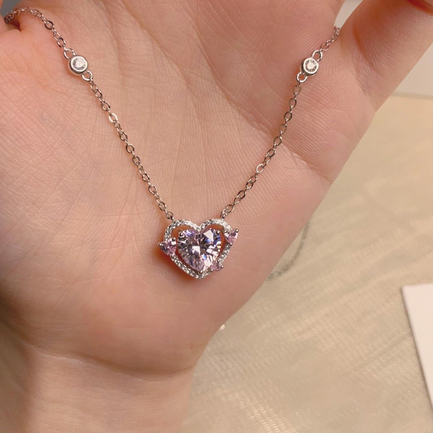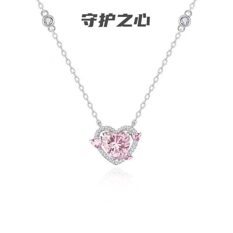 守护之心轻奢时尚通勤感潮流小众爱心吊坠项链气质百搭粉色锁骨链