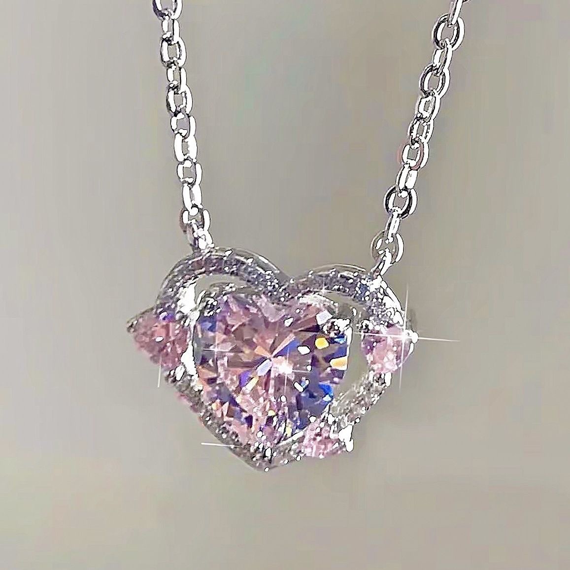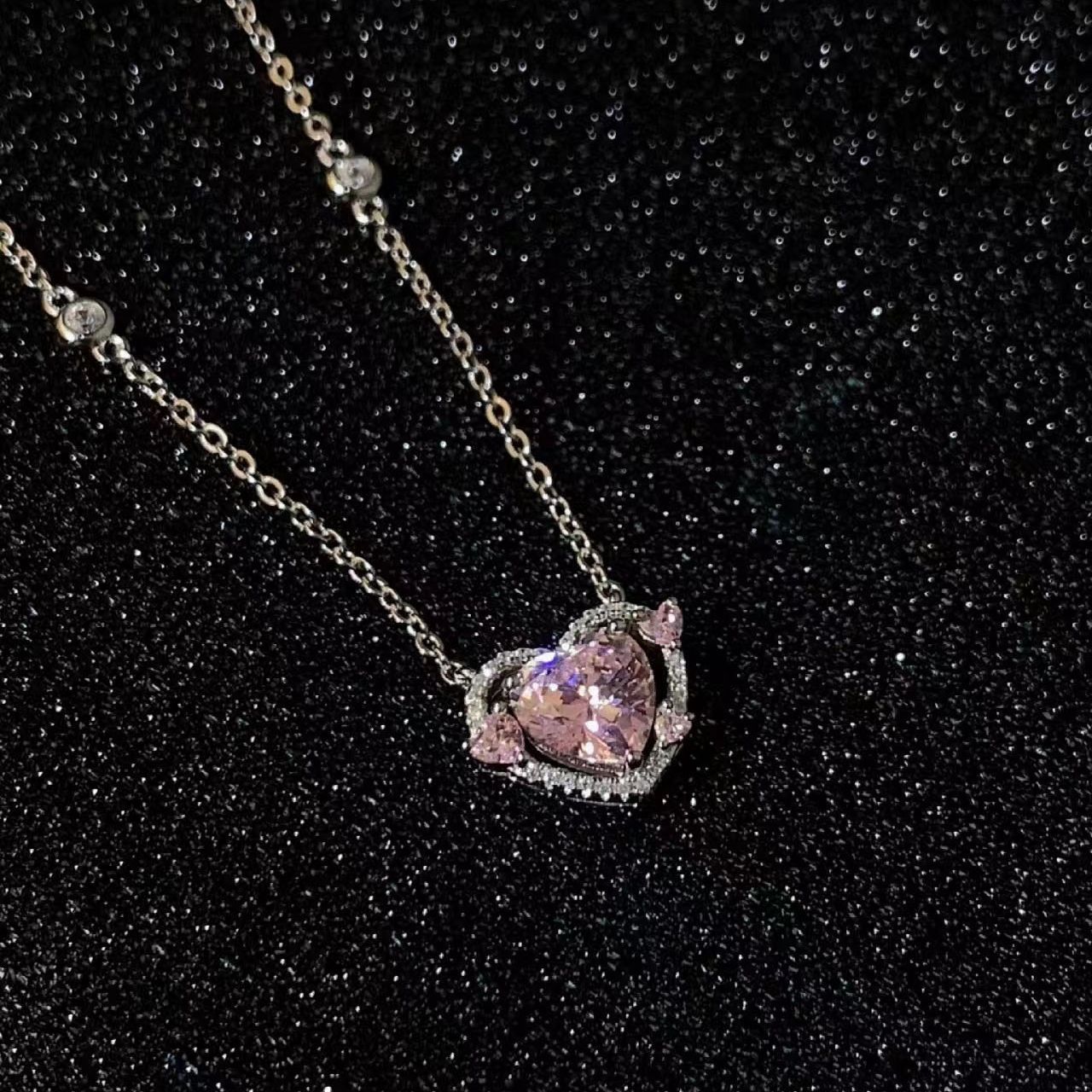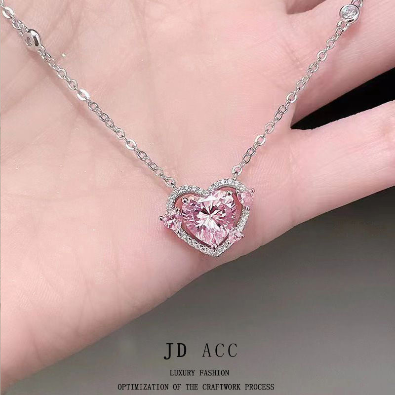 守护之心轻奢时尚通勤感潮流小众爱心吊坠项链气质百搭粉色锁骨链
