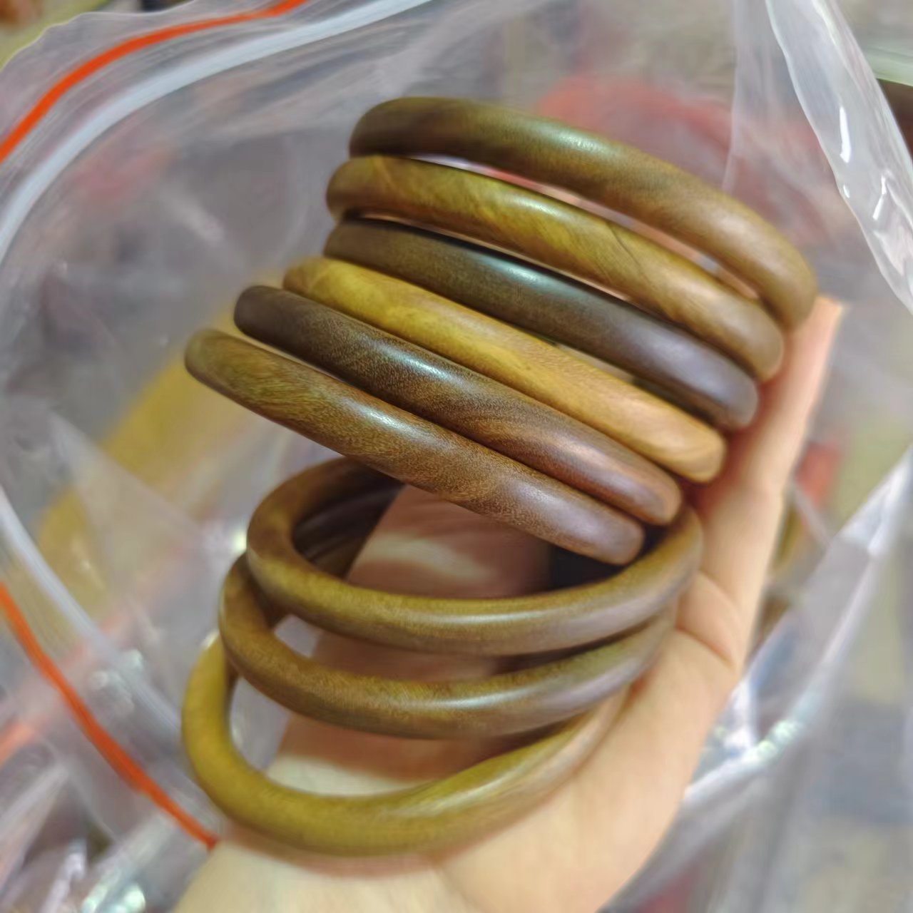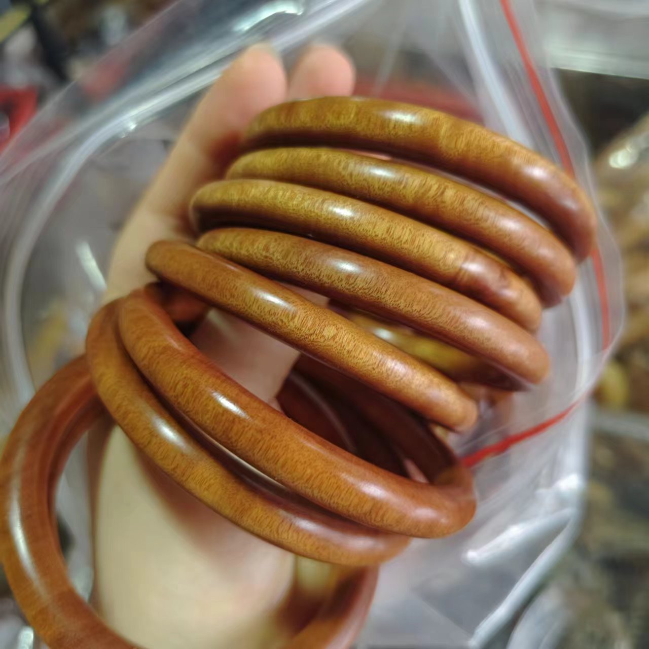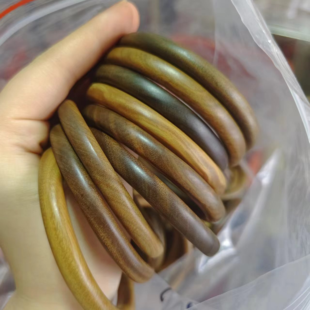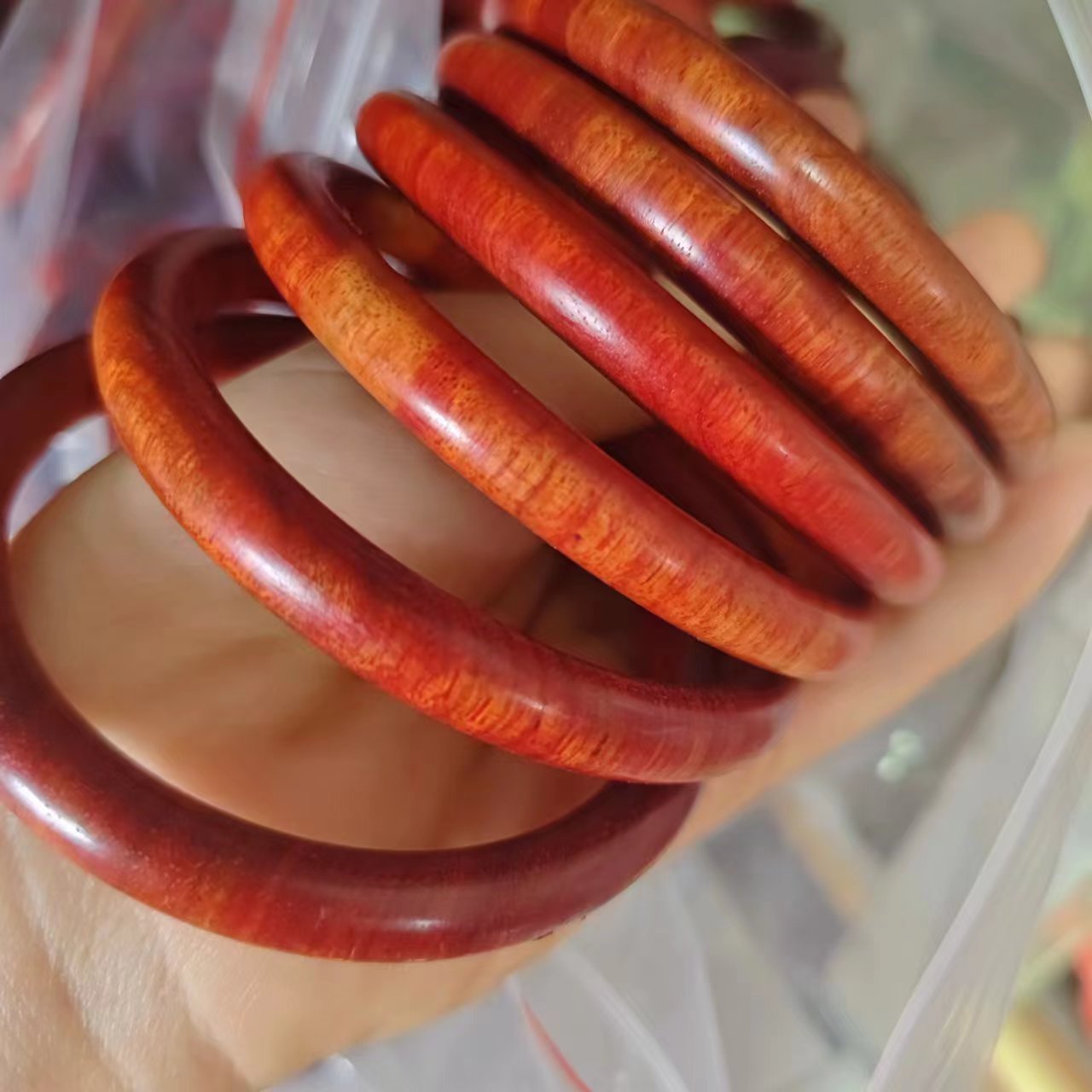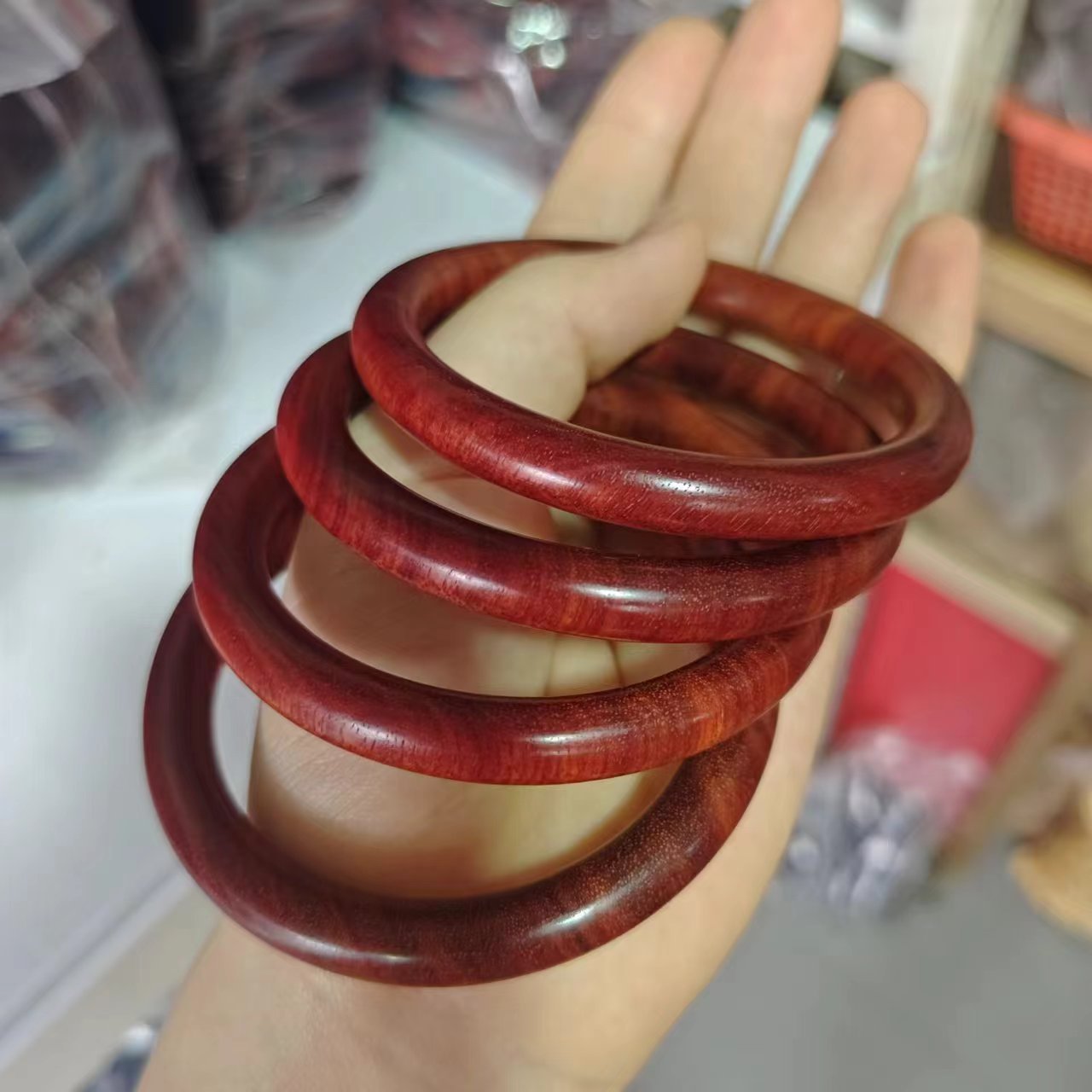 小叶紫檀绿檀黑檀花梨手镯圆条细镯子血檀素圈中国风复古厂家直销