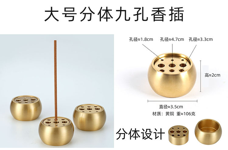 香插线香座铜葫芦九孔香托迷你水滴家用香炉配件莲花线香插托禅