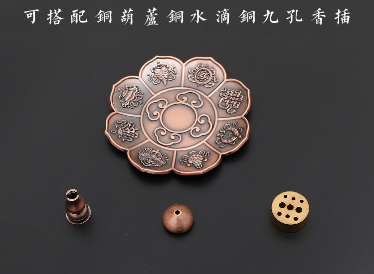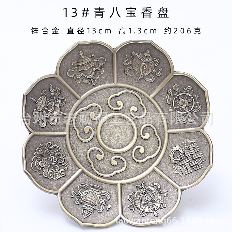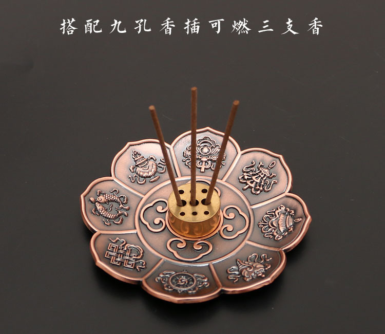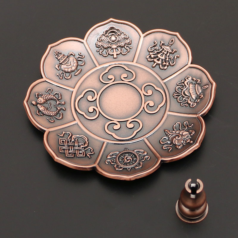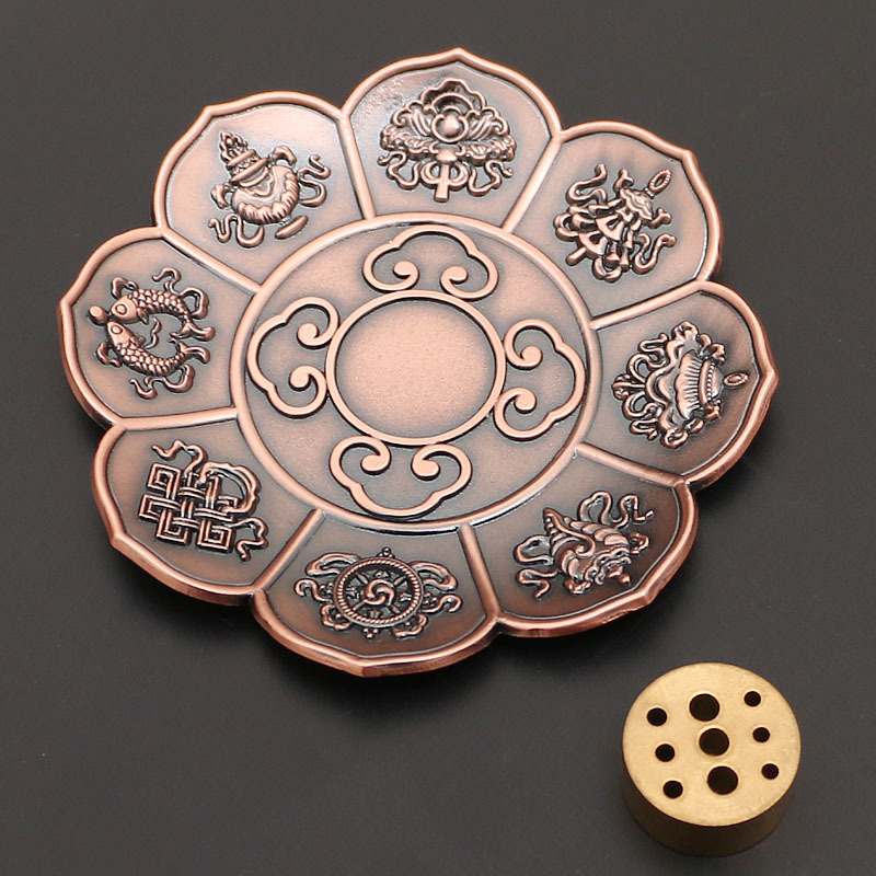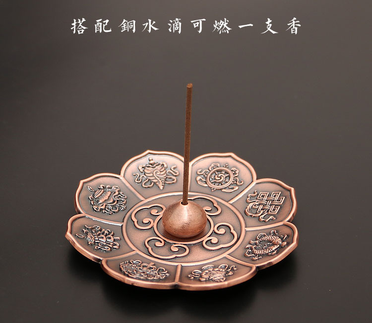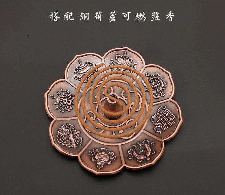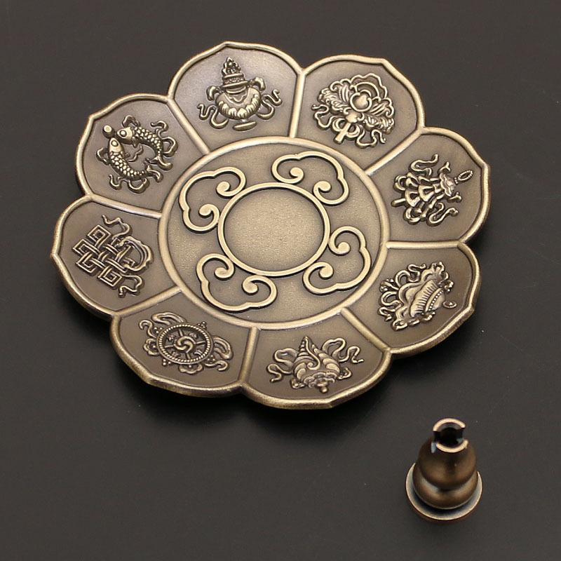 藏式莲花香盘香插香座八宝八吉祥立式线香炉家用仿古烟供熏香炉