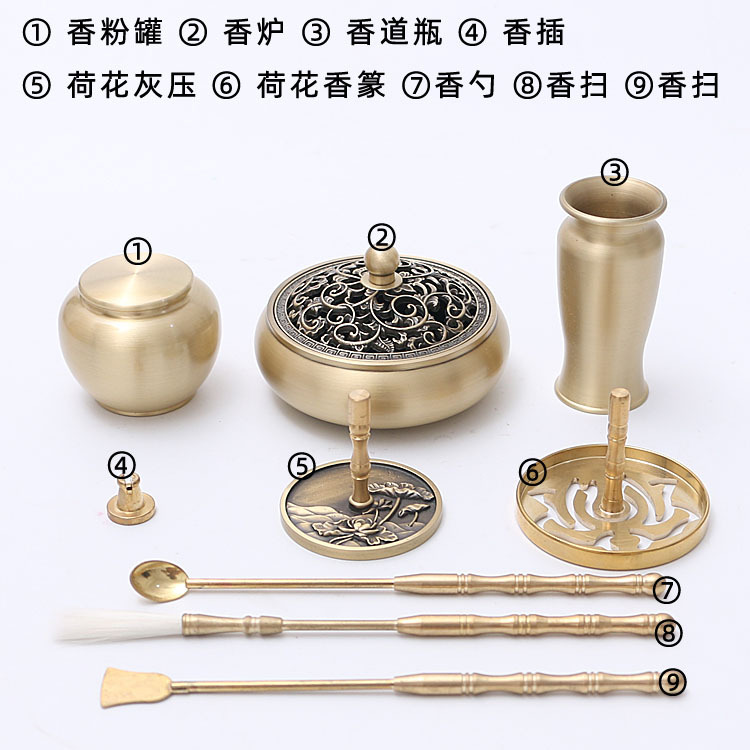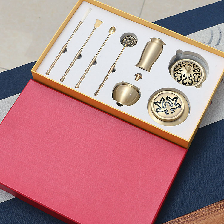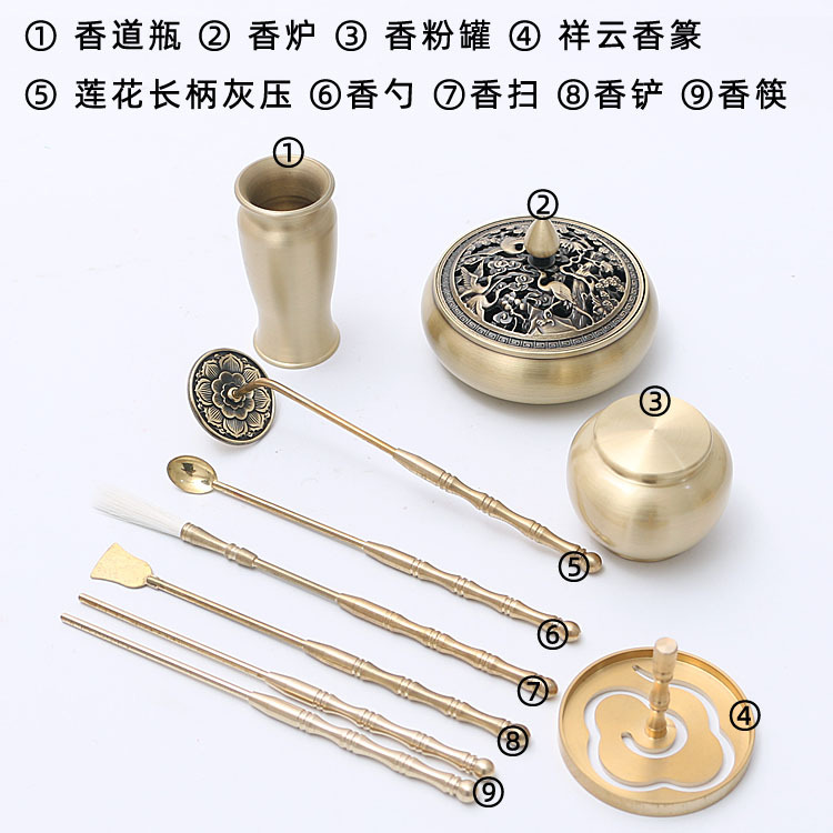铜香篆工具一整套中式熏香炉家用香炉打香篆铜炉礼盒香道工具全套