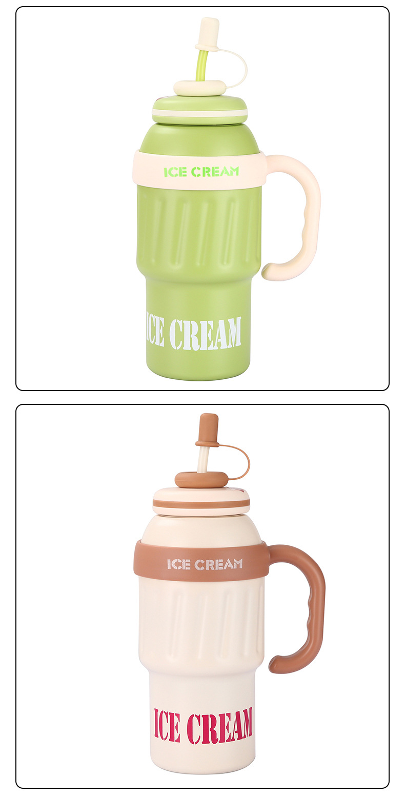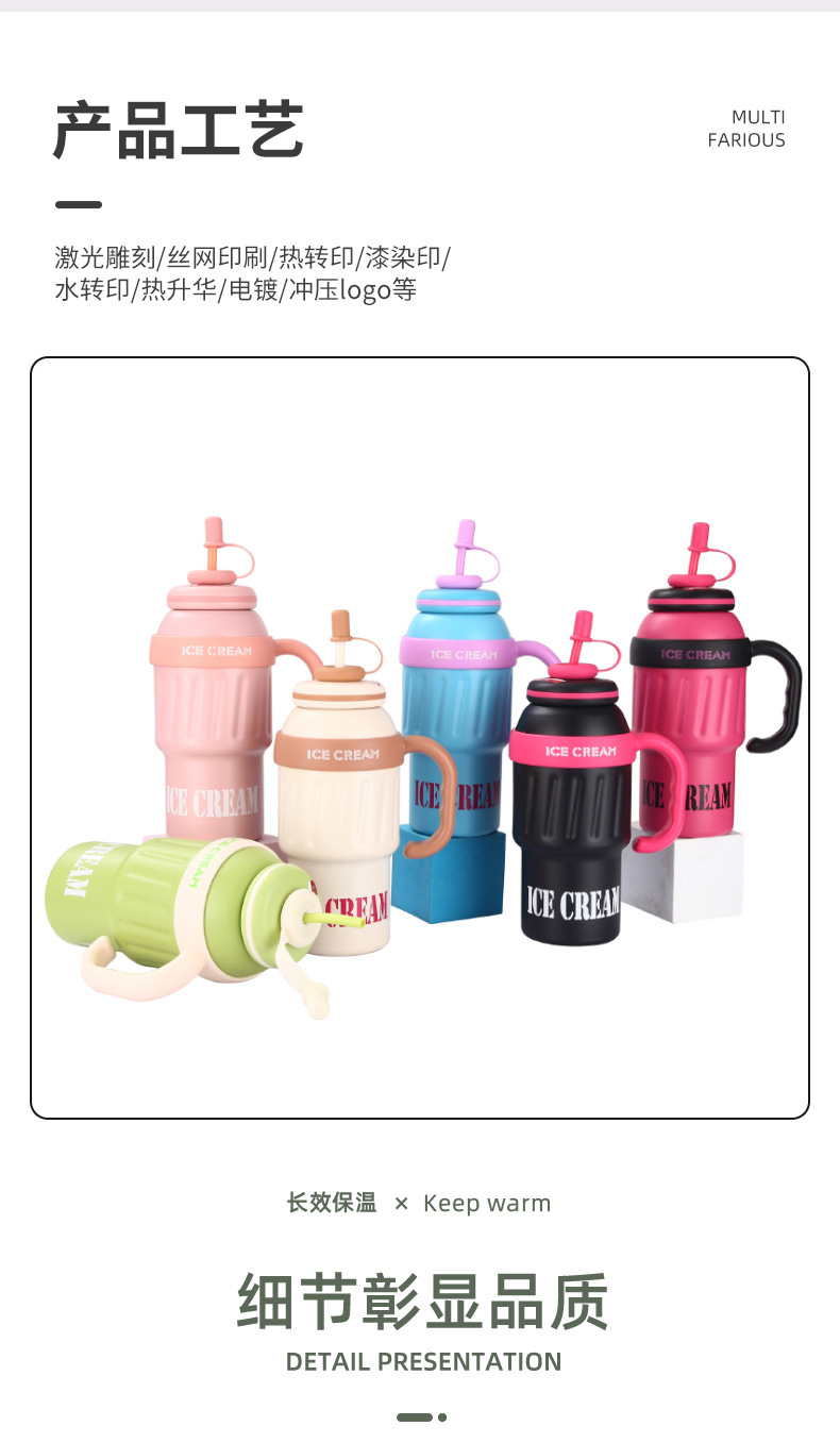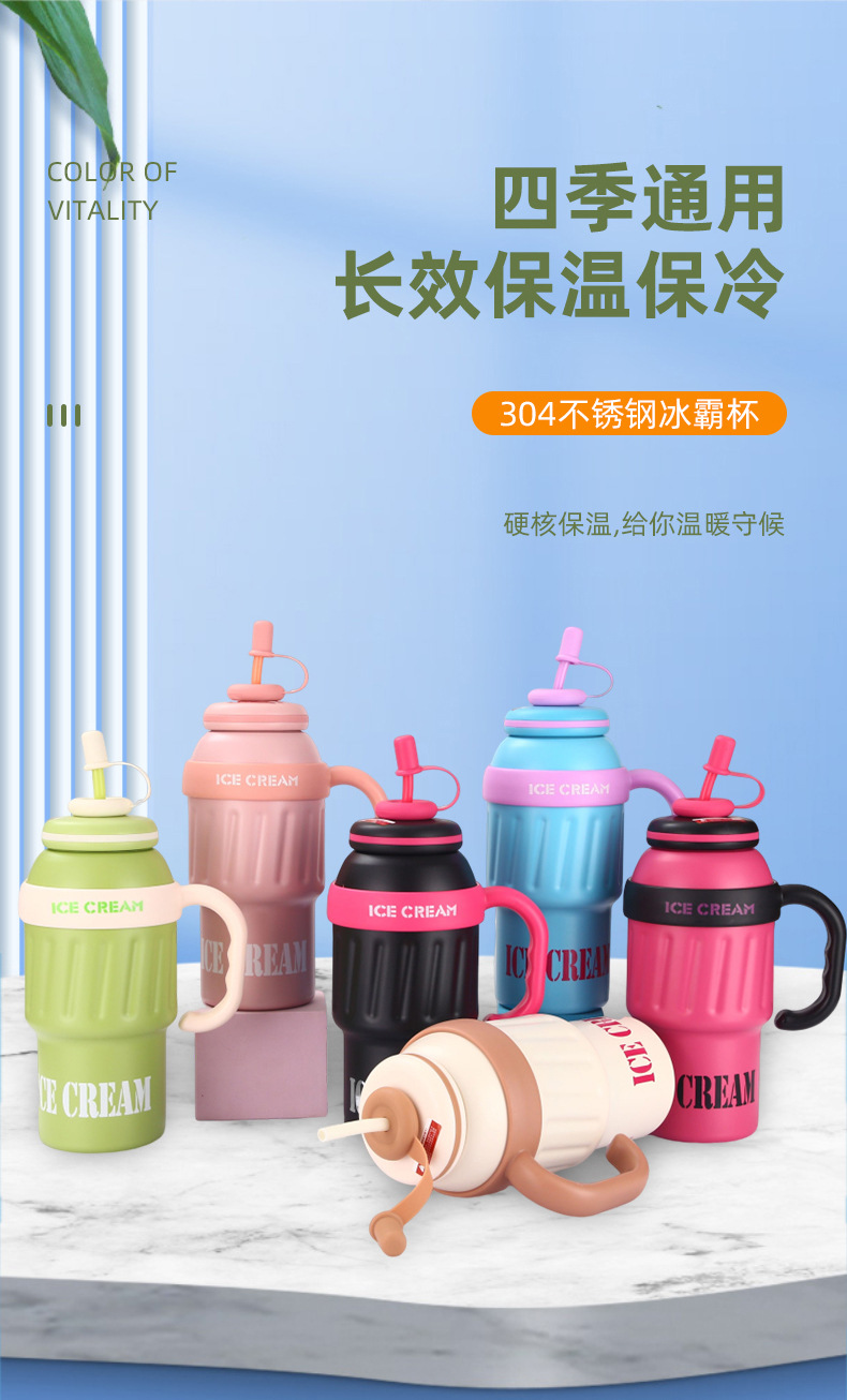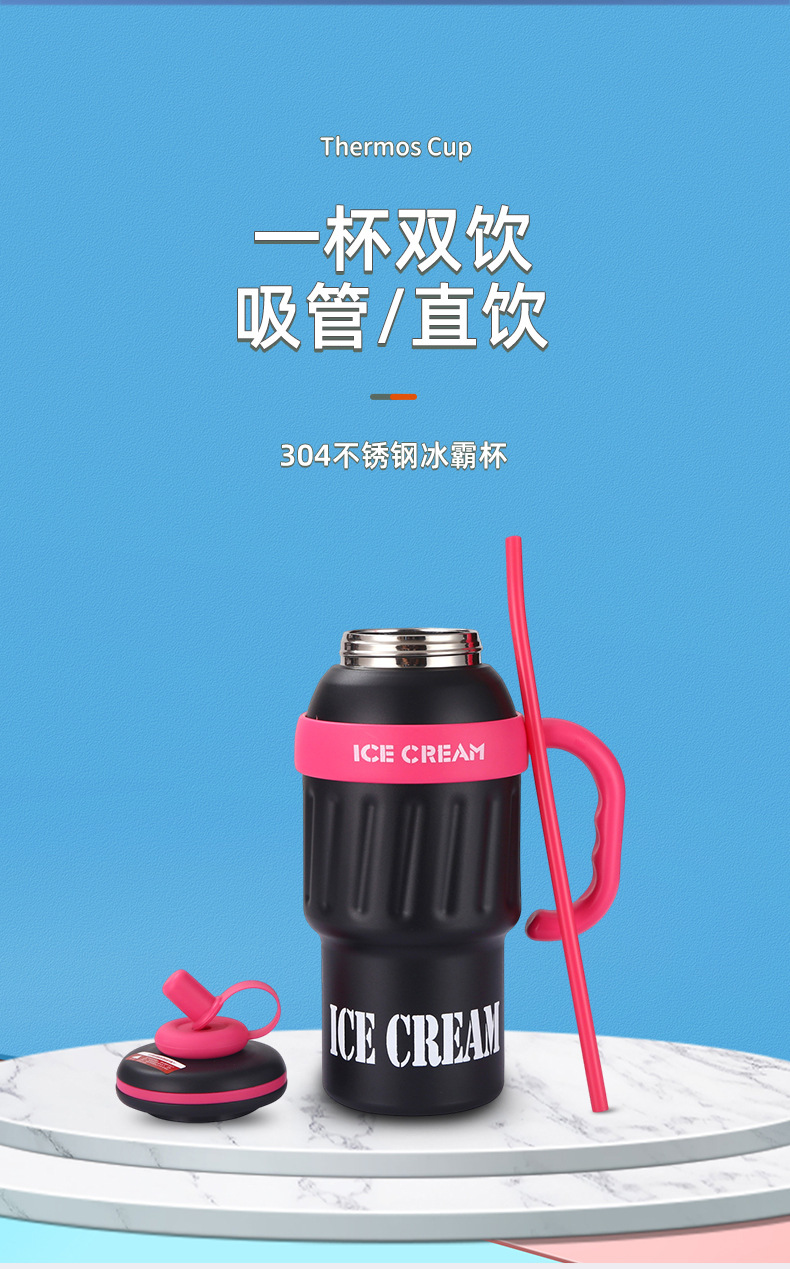 新款大容量304不锈钢保温杯高颜值可爱带吸管冰霸杯户外便携水杯