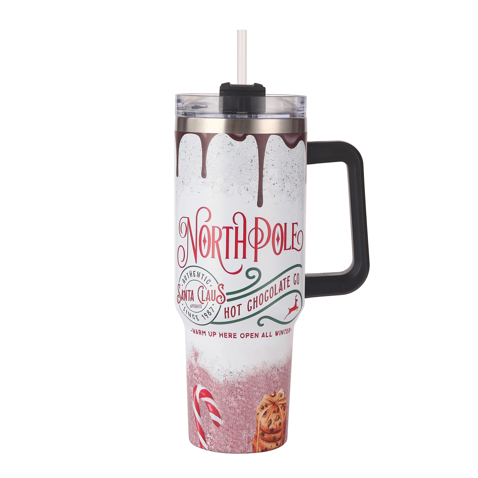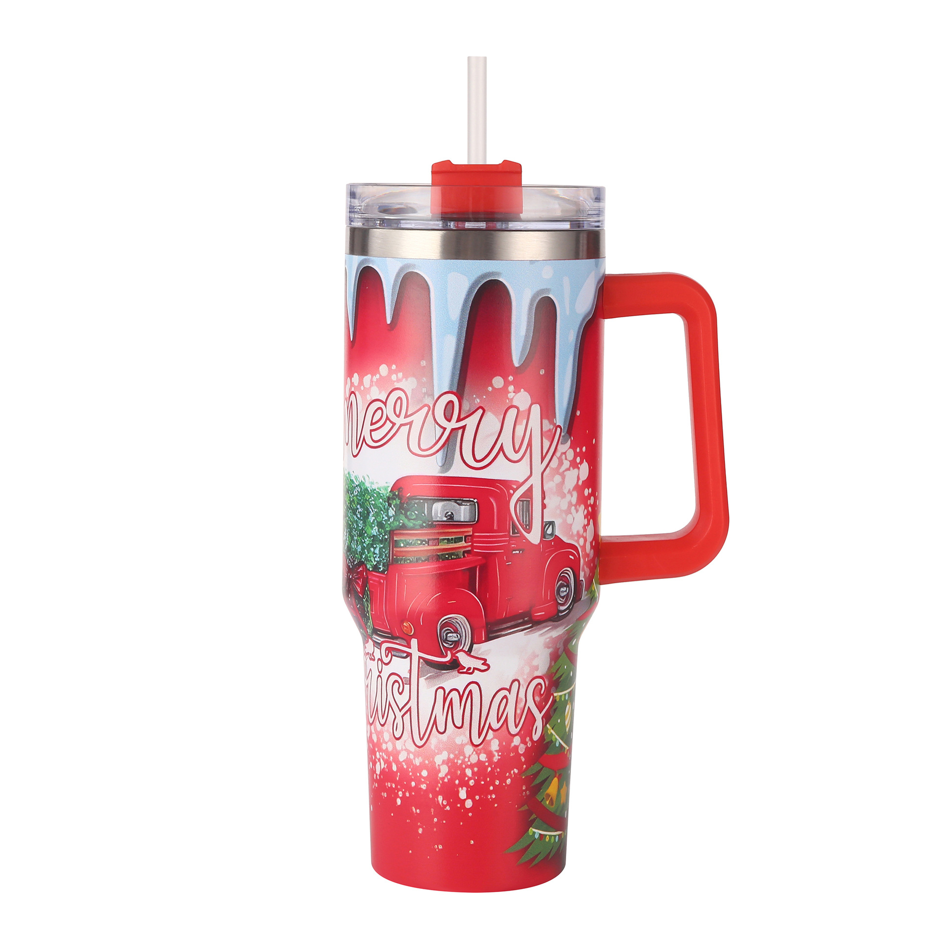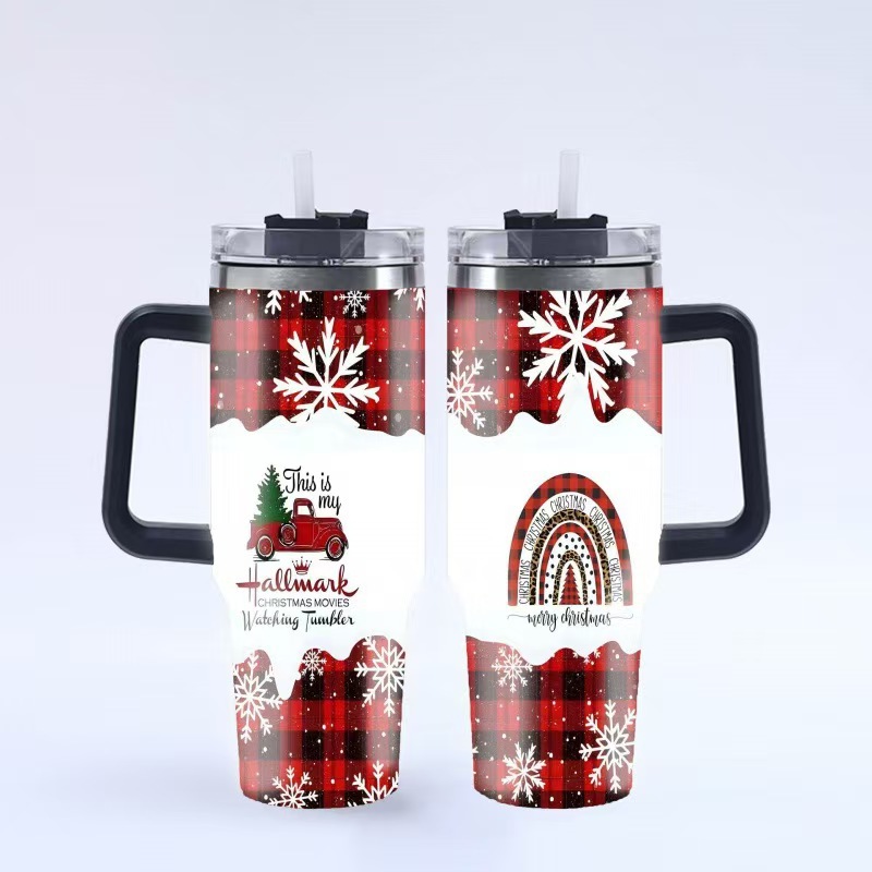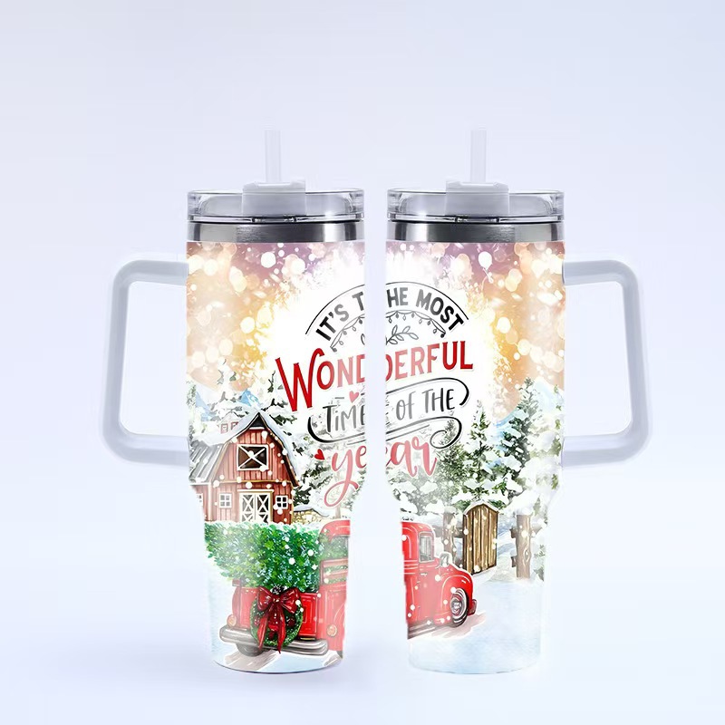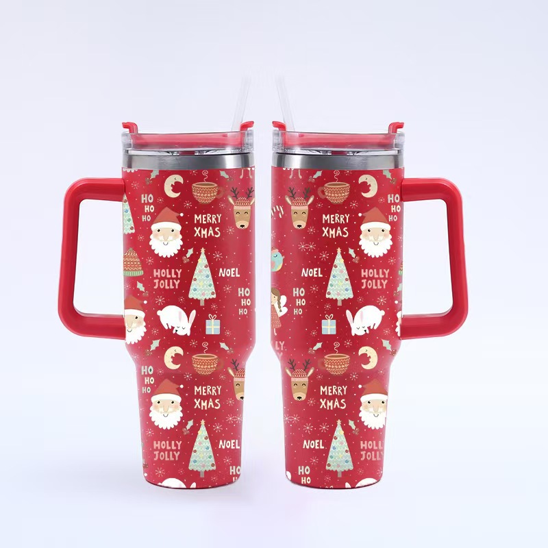 新款跨境圣诞节40oz汽车杯304不锈钢大容量冰霸杯车载吸管杯批发