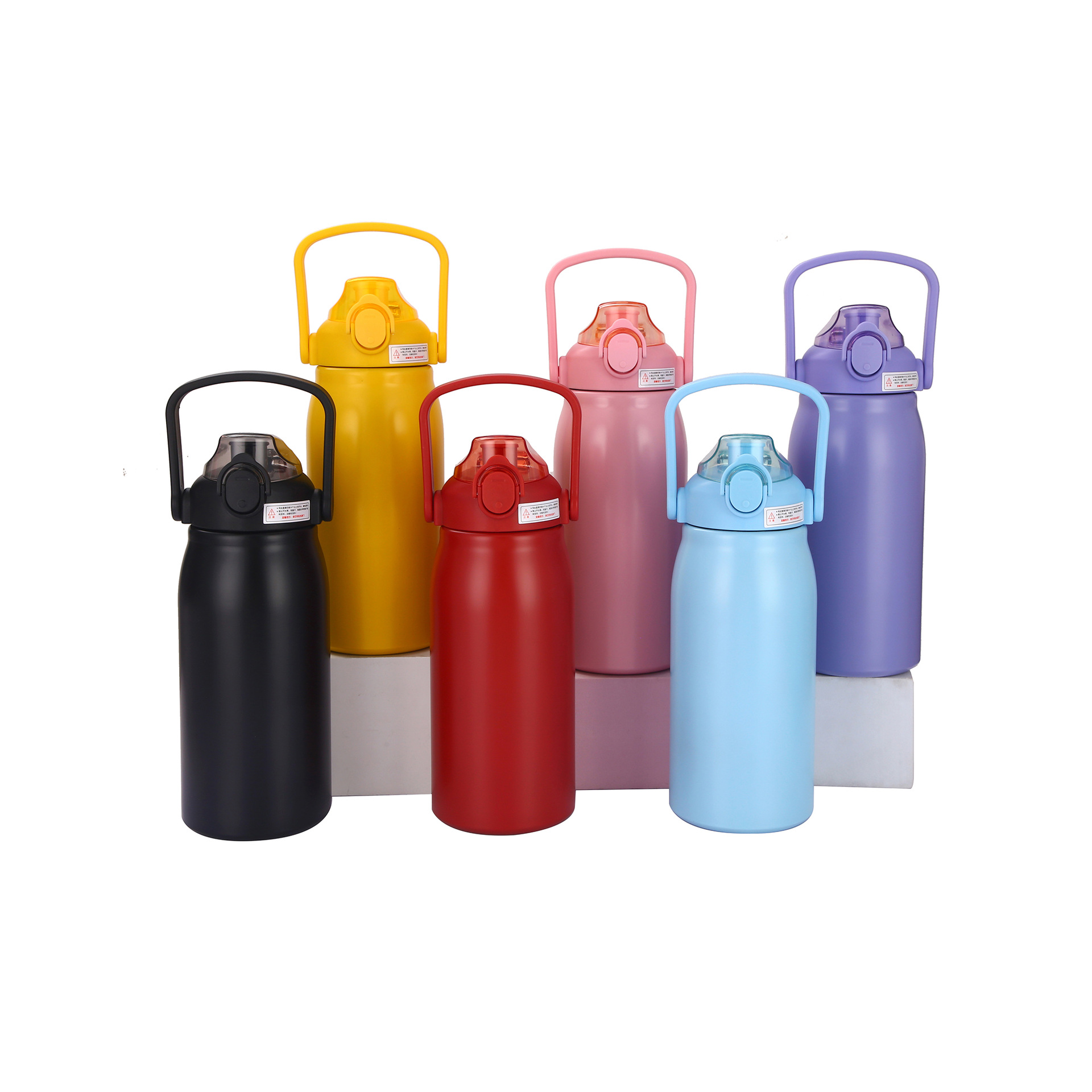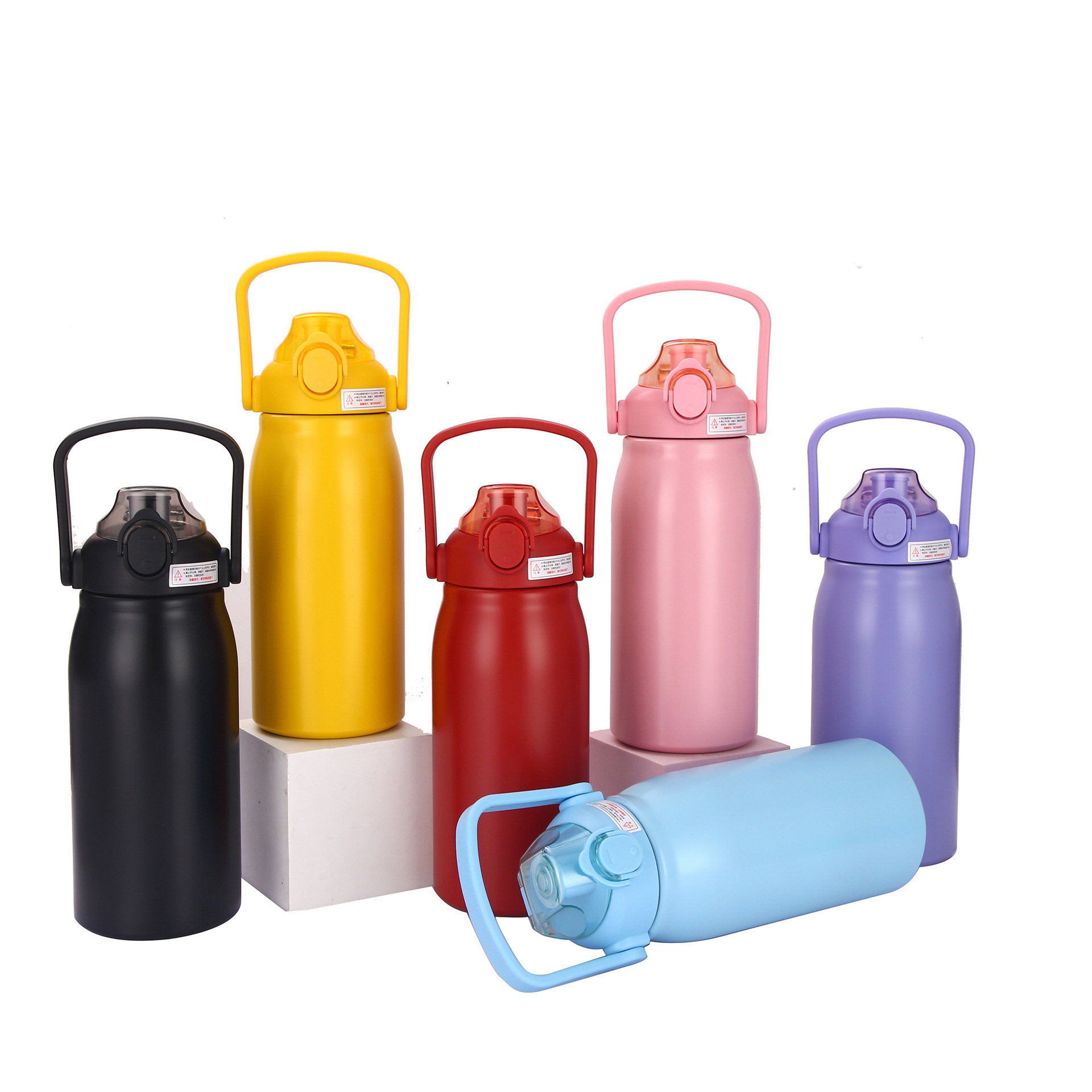 新款316不锈钢双层保温杯大容量带提手运动水壶户外便携吸管水杯