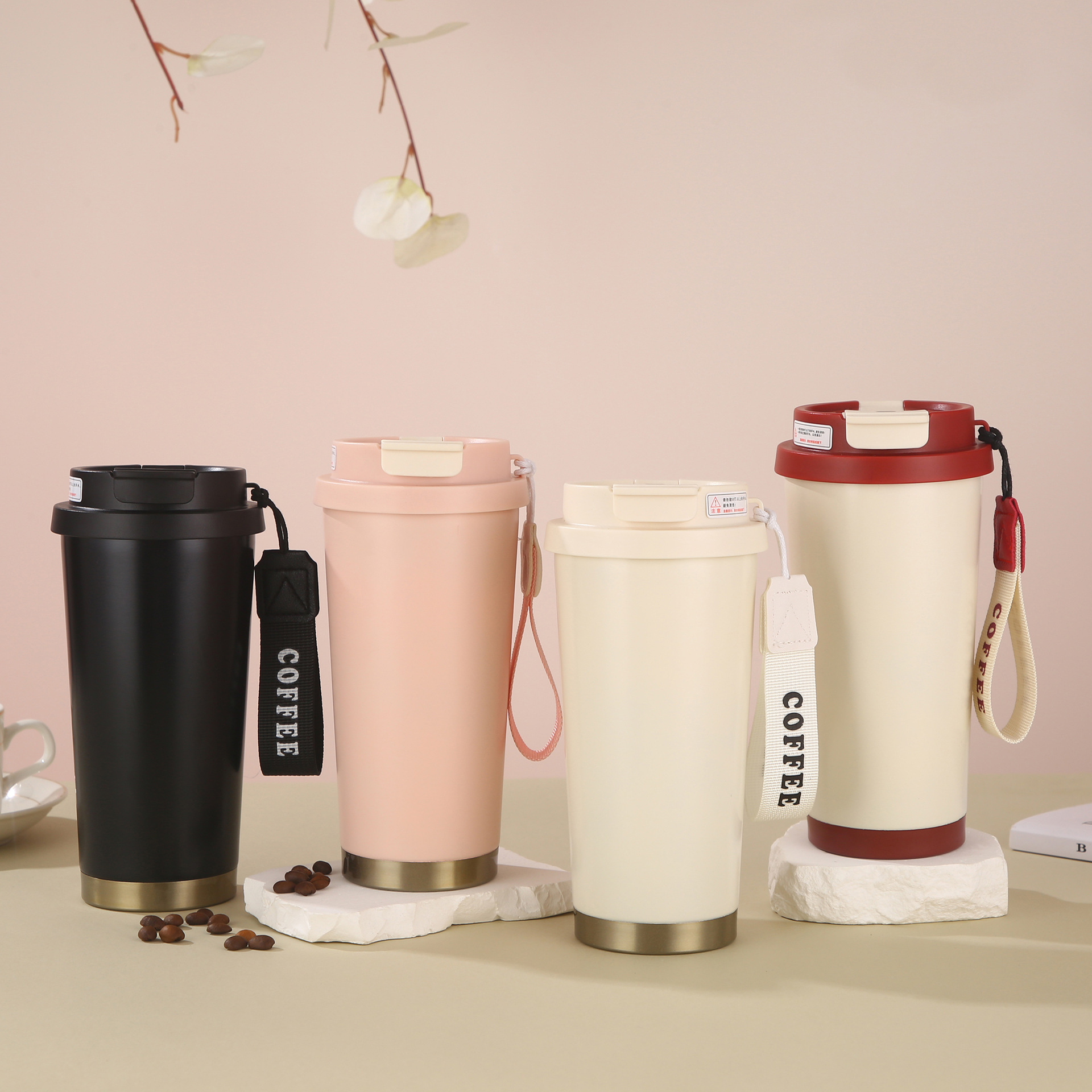 高颜值双饮咖啡杯铃兰杯316不锈钢双层加厚保温杯高颜值礼品水杯