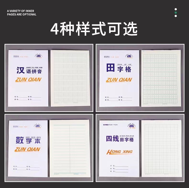 32K双面小学作业本16K本子四线田字格数学拼音本生子本批发