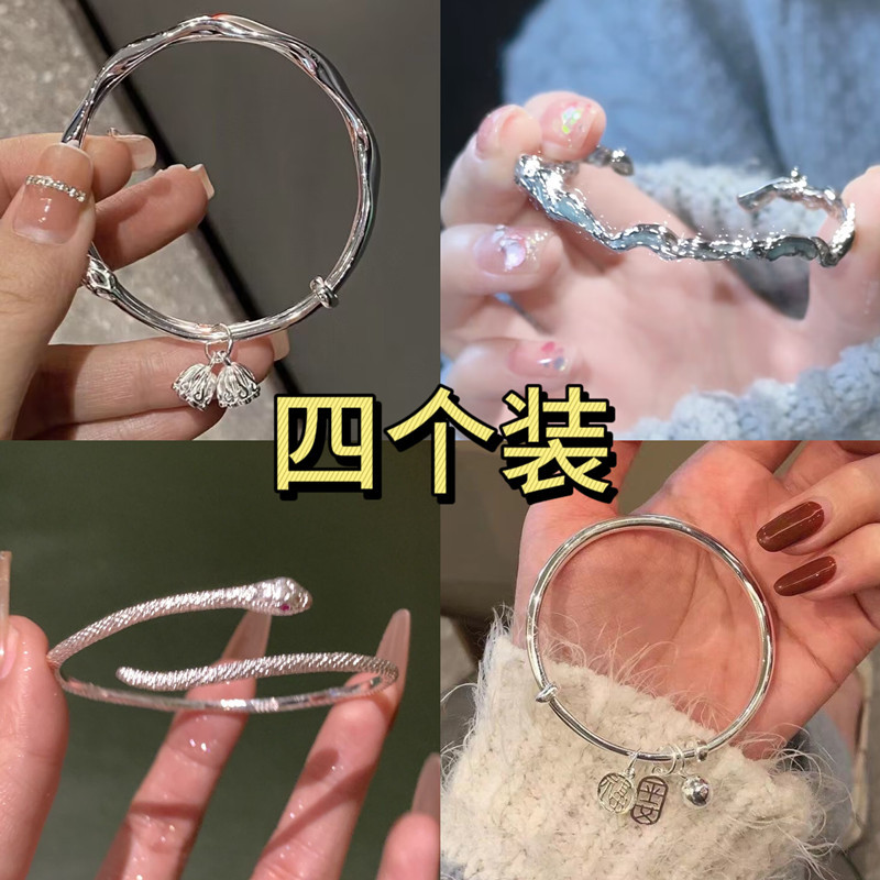 四件套】小众银色灵蛇手镯百搭简约设计版赤眼灵蛇可调节手镯