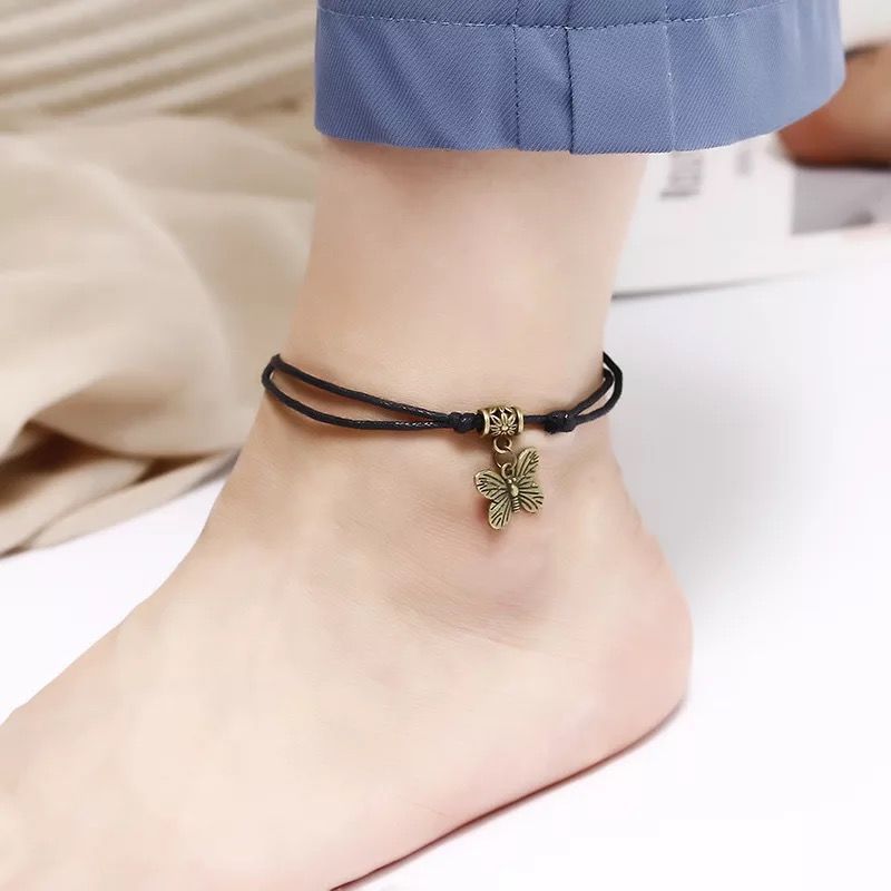 复古森系个性男女情侣网红脚链创意黑色蜡绳编织学生闺蜜爆款脚链