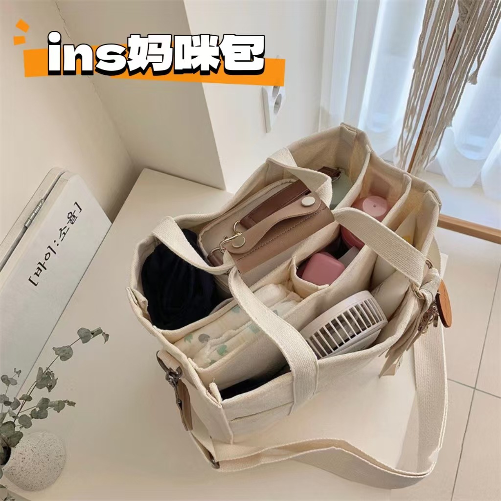 大容量多口袋挂婴儿车手提双肩背包大容量斜挎女单肩托特包妈妈包