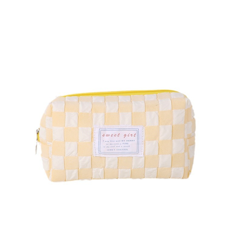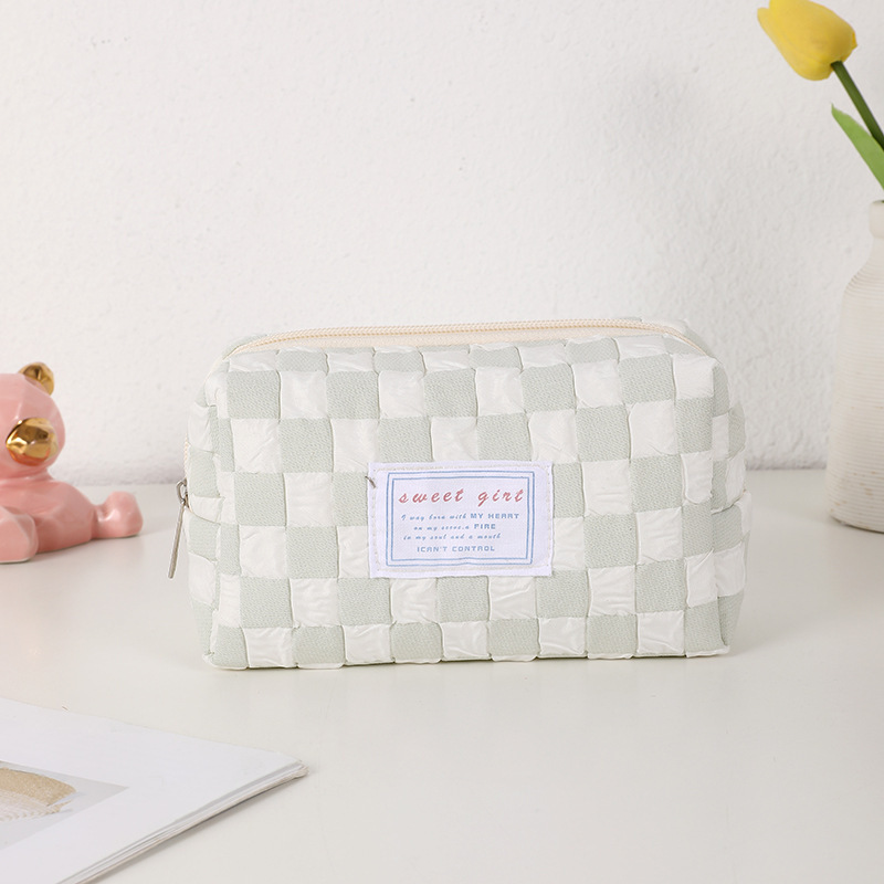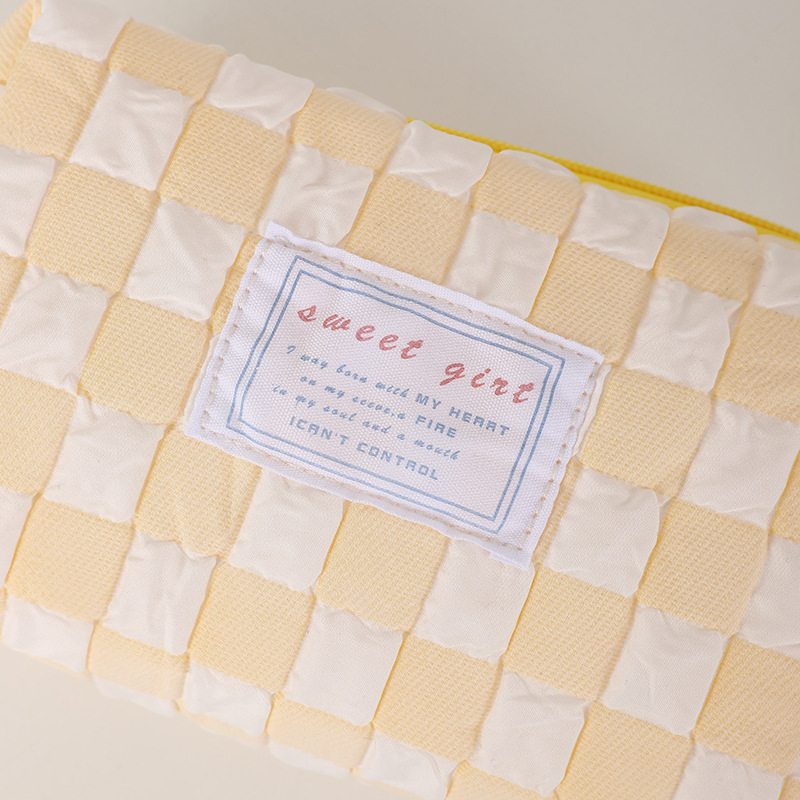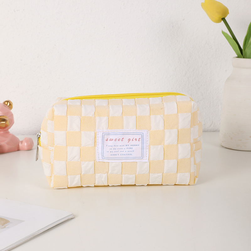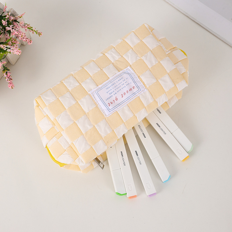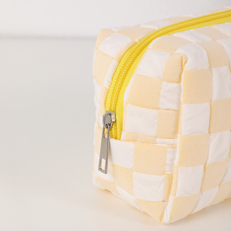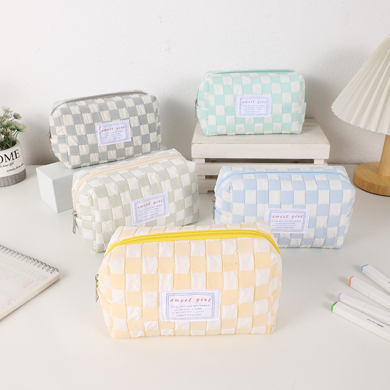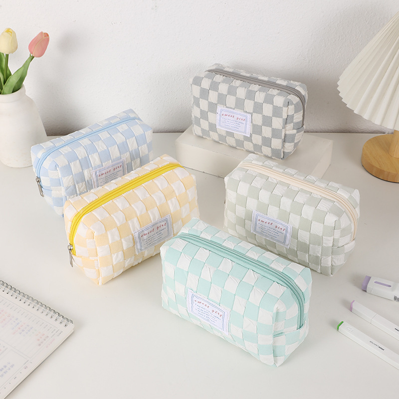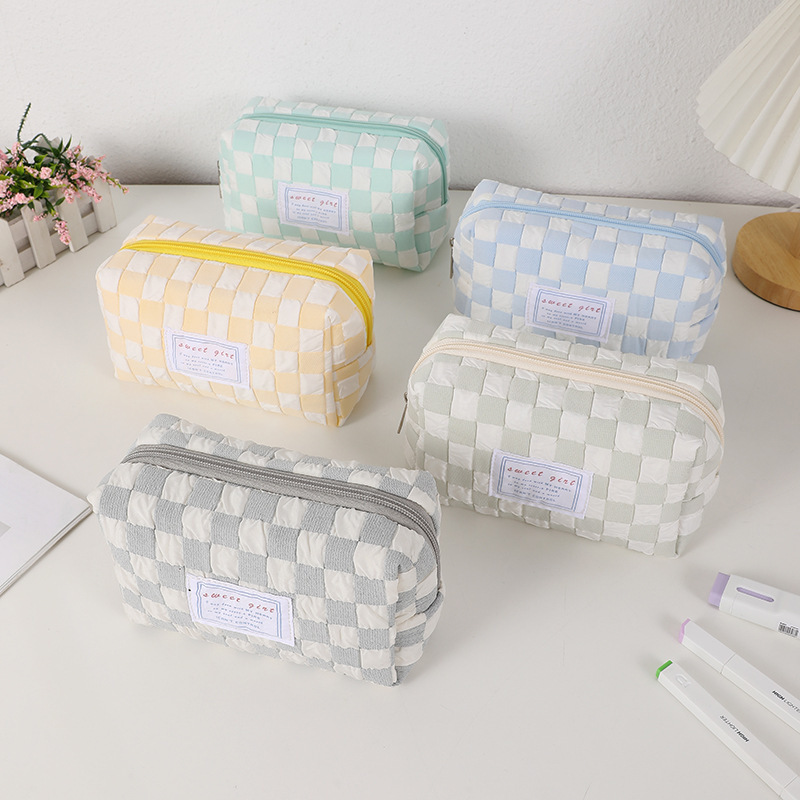糖果色小清新笔袋小众格子少女心化妆包便携洗漱包初中学生文具袋