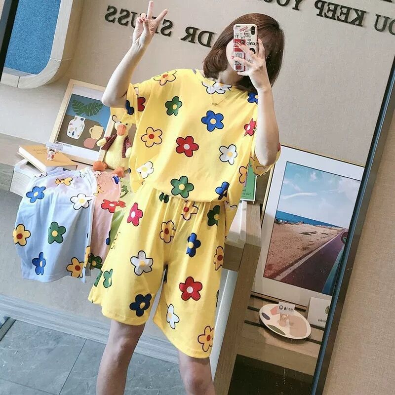 睡衣女夏季宽松加大码甜美可爱学生短袖短裤可外穿韩版家居服套装