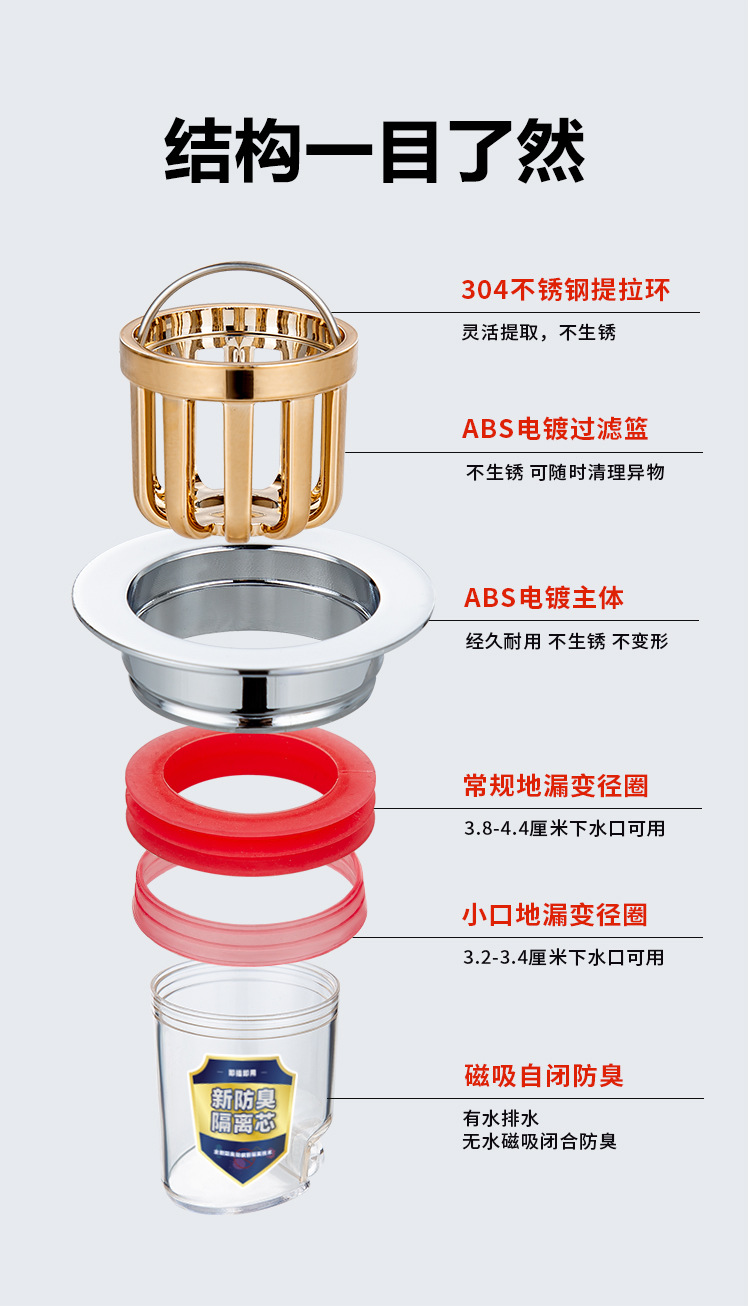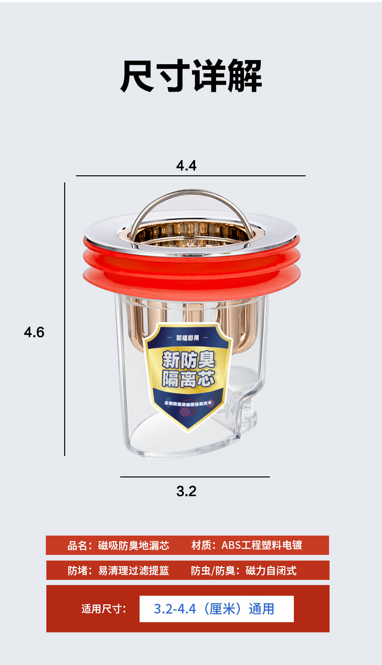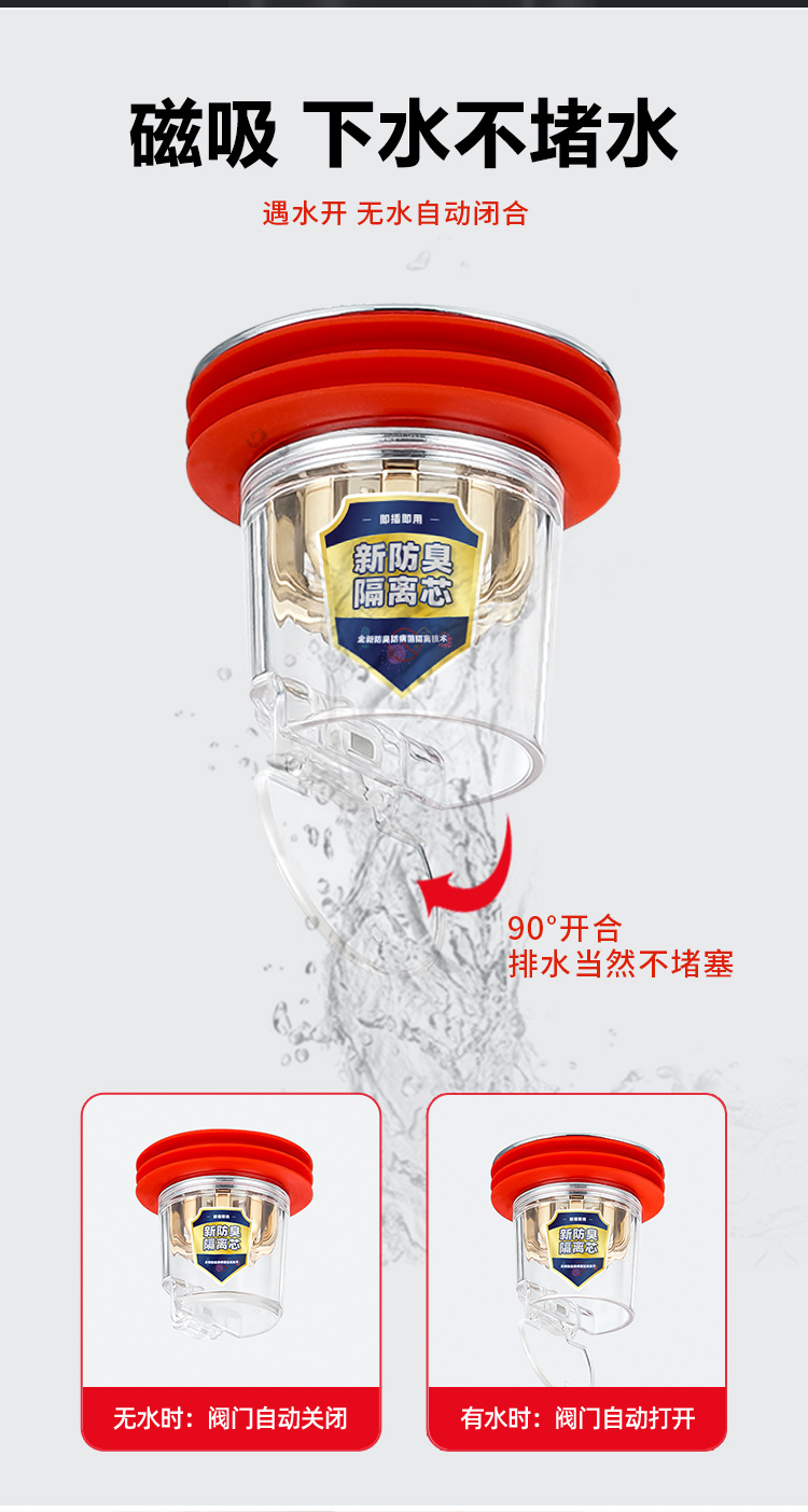 地漏防臭芯防臭卫生间下水道防反臭飞虫神器过滤头发地漏内芯通用