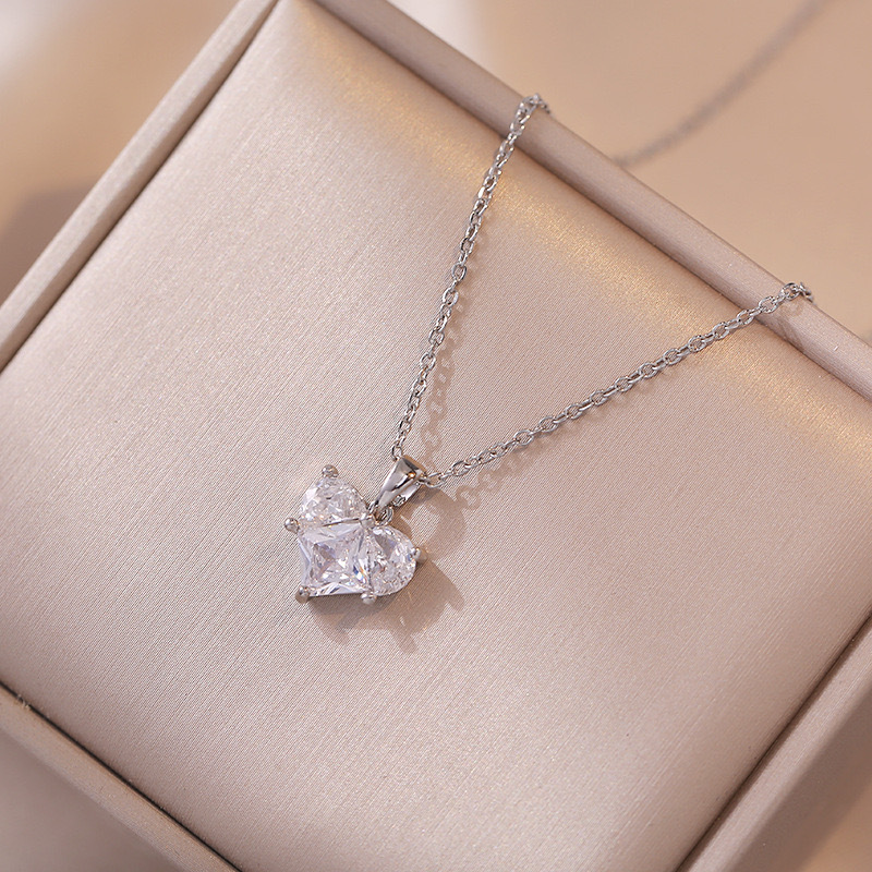 2024新款粉色爱心锆石项链少女简约时尚高级感气质锁骨链甜美桃心